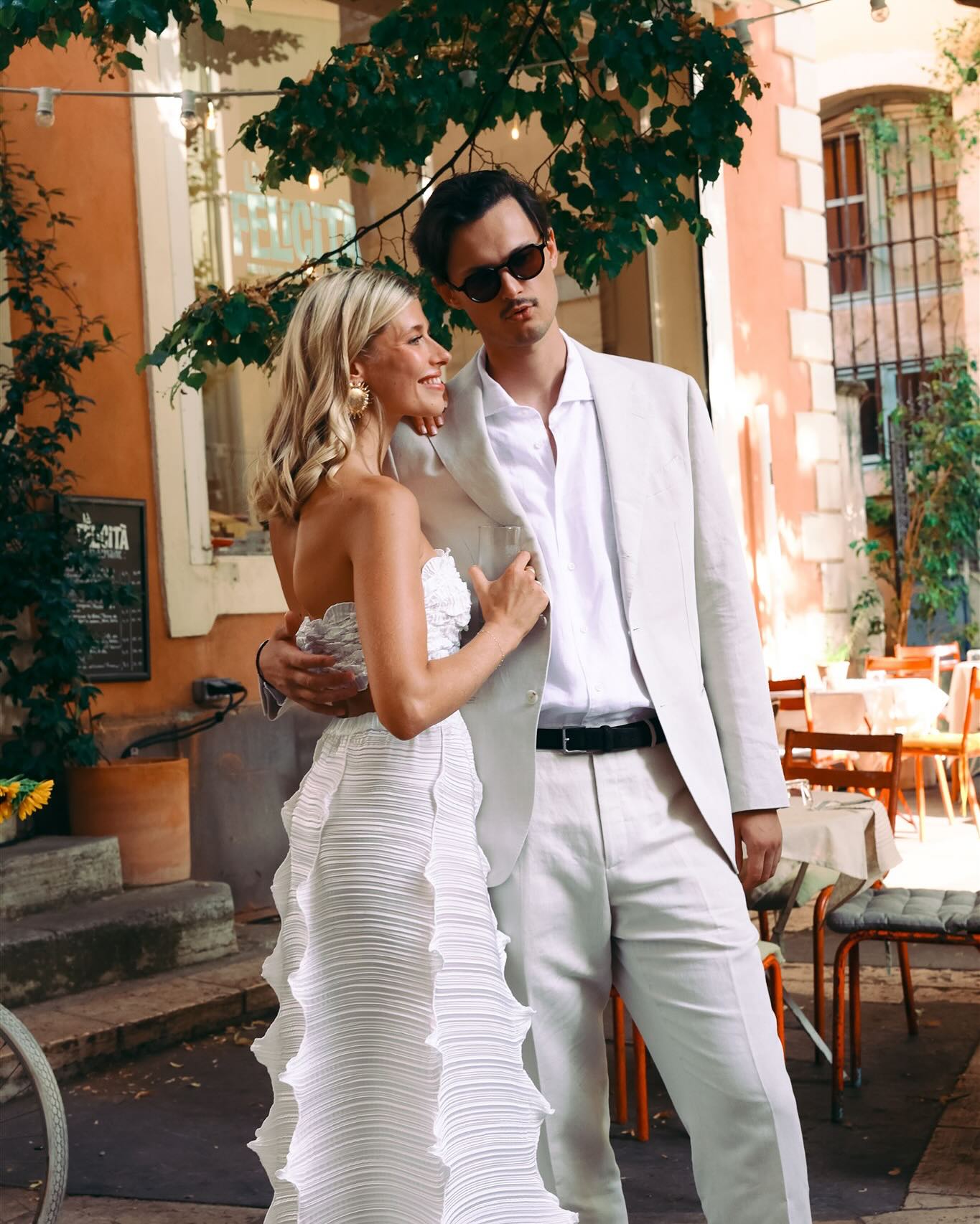 La parfaite définition du luxe, pour moi, c’est un bon Châteauneuf-du-Pape, une assiette colorée de fromages et de jolis légumes, et une mariée en robe Jacquemus, entourée d’amour et de bienveillance. Je crois que je sors un peu des codes habituels du « luxe » (hihi), mais c’est exactement cela que j’aime : un luxe simple, sincère et profondément humain.