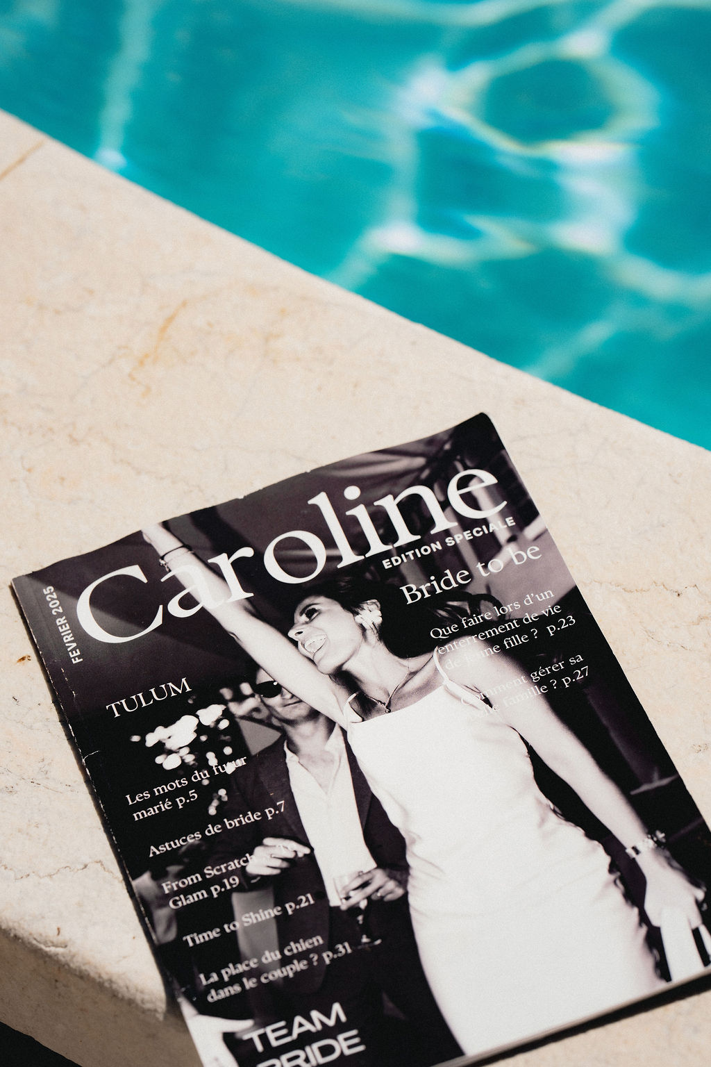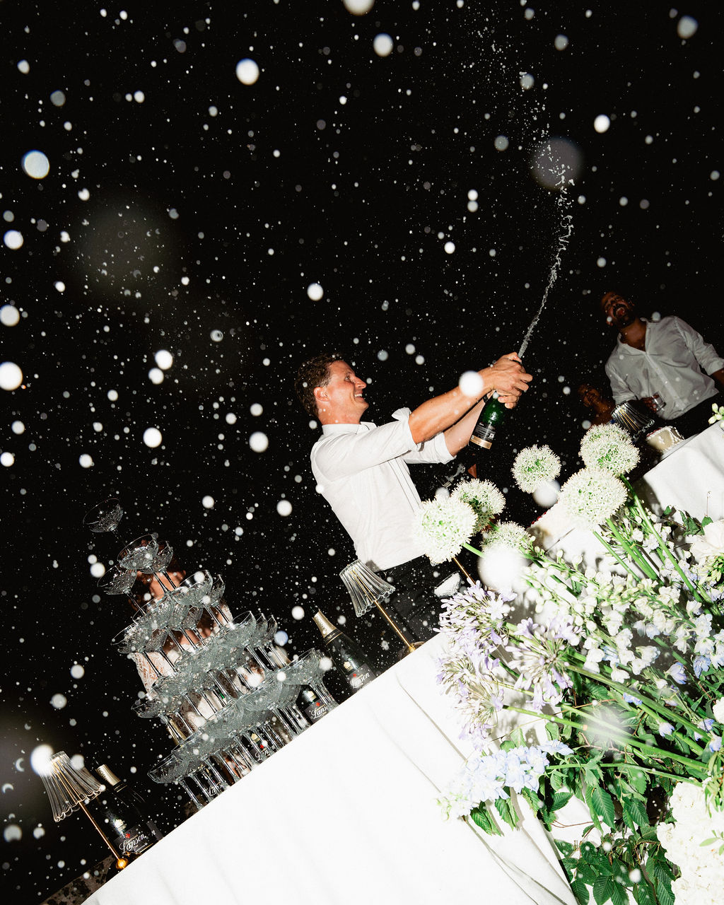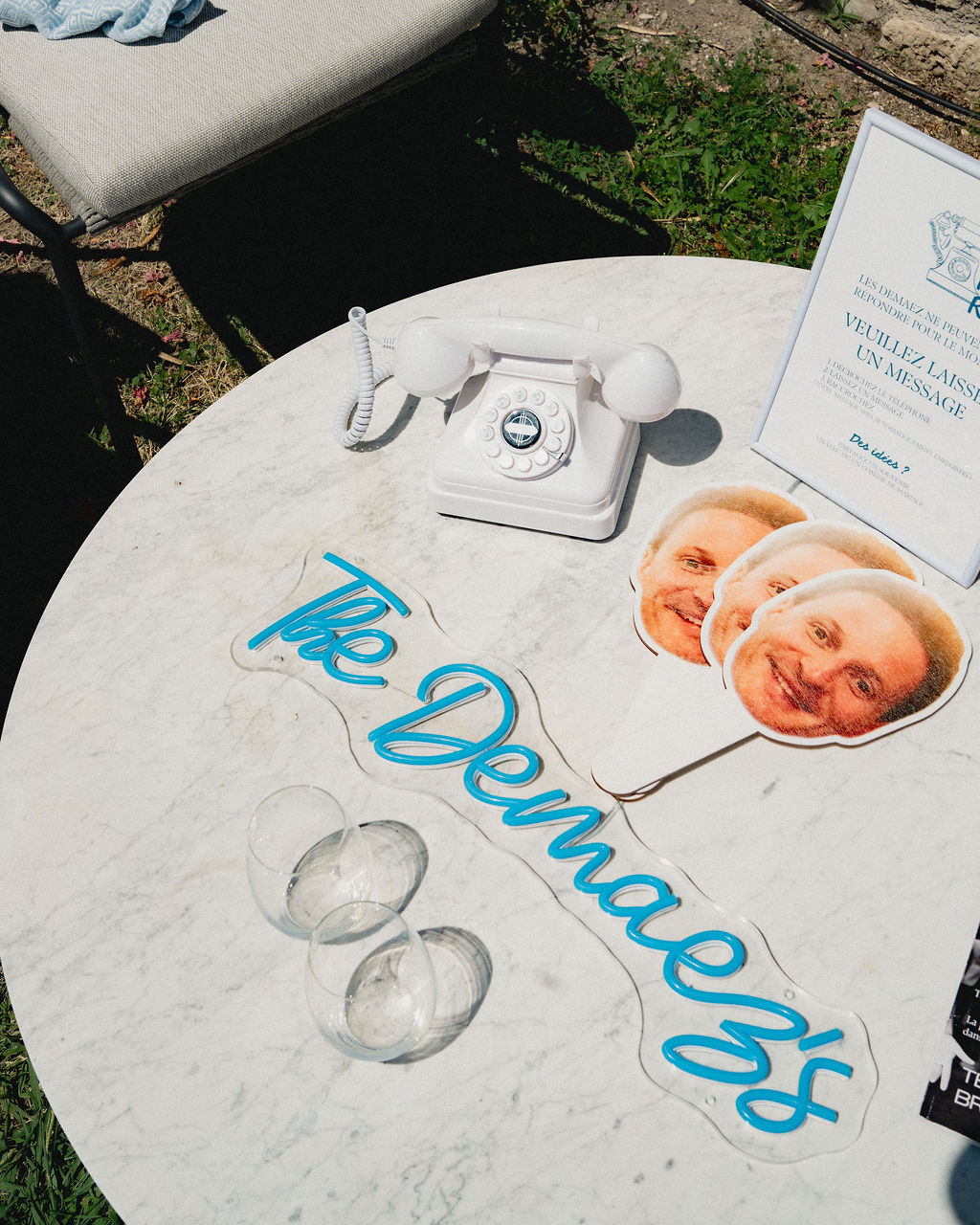 La soirée s’est déroulée devant la villa, en extérieur jusqu’à minuit, puis à l’intérieur dans l’atrium pour l’after party. Le brunch, lui, a eu lieu dans les jardins de la maison que nous avions louée pour la semaine.