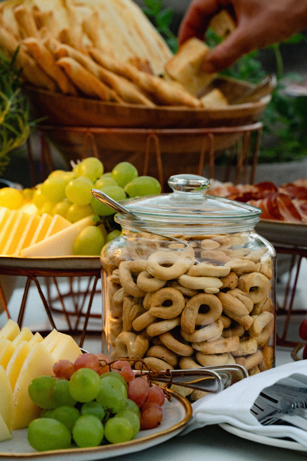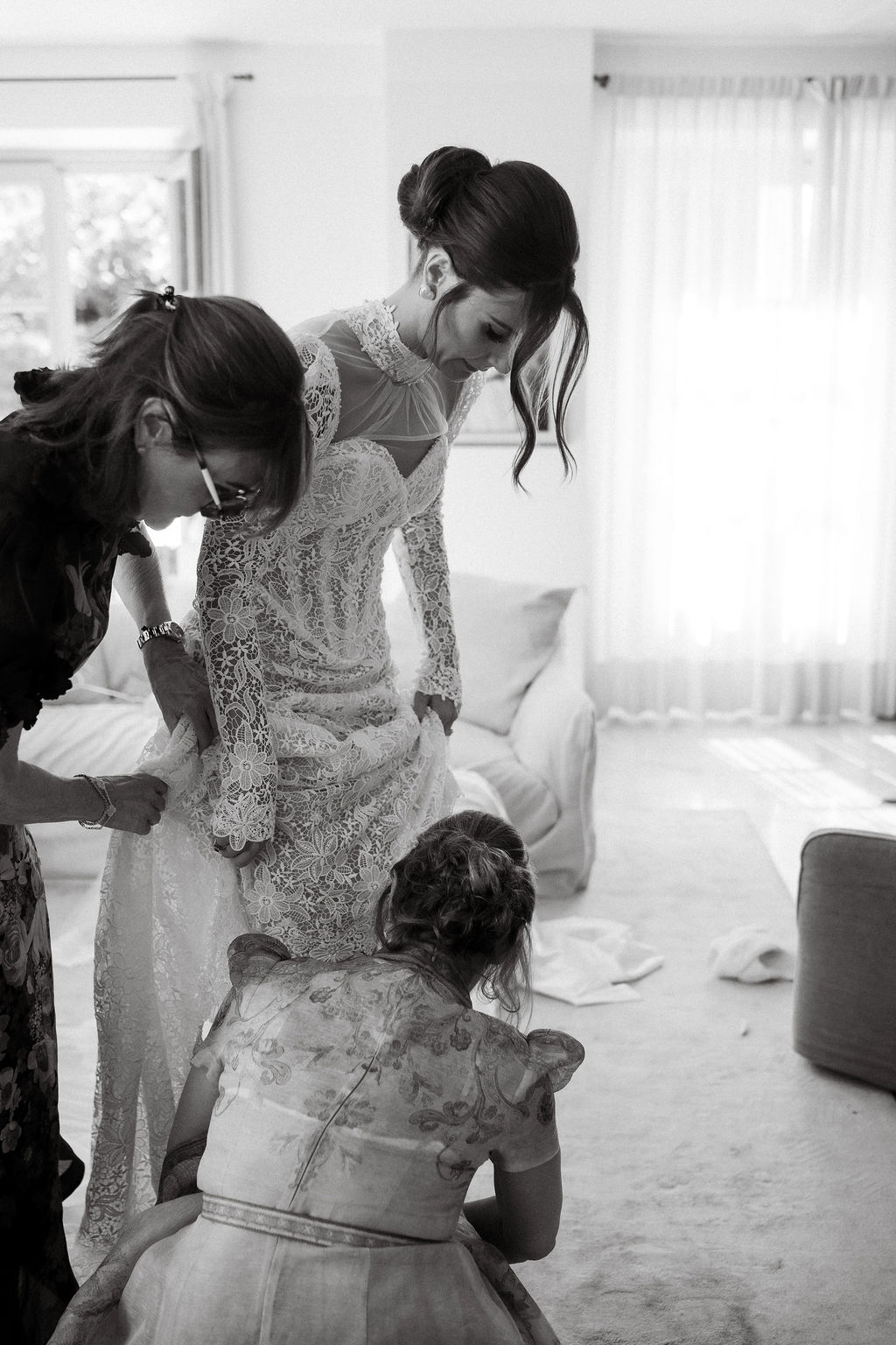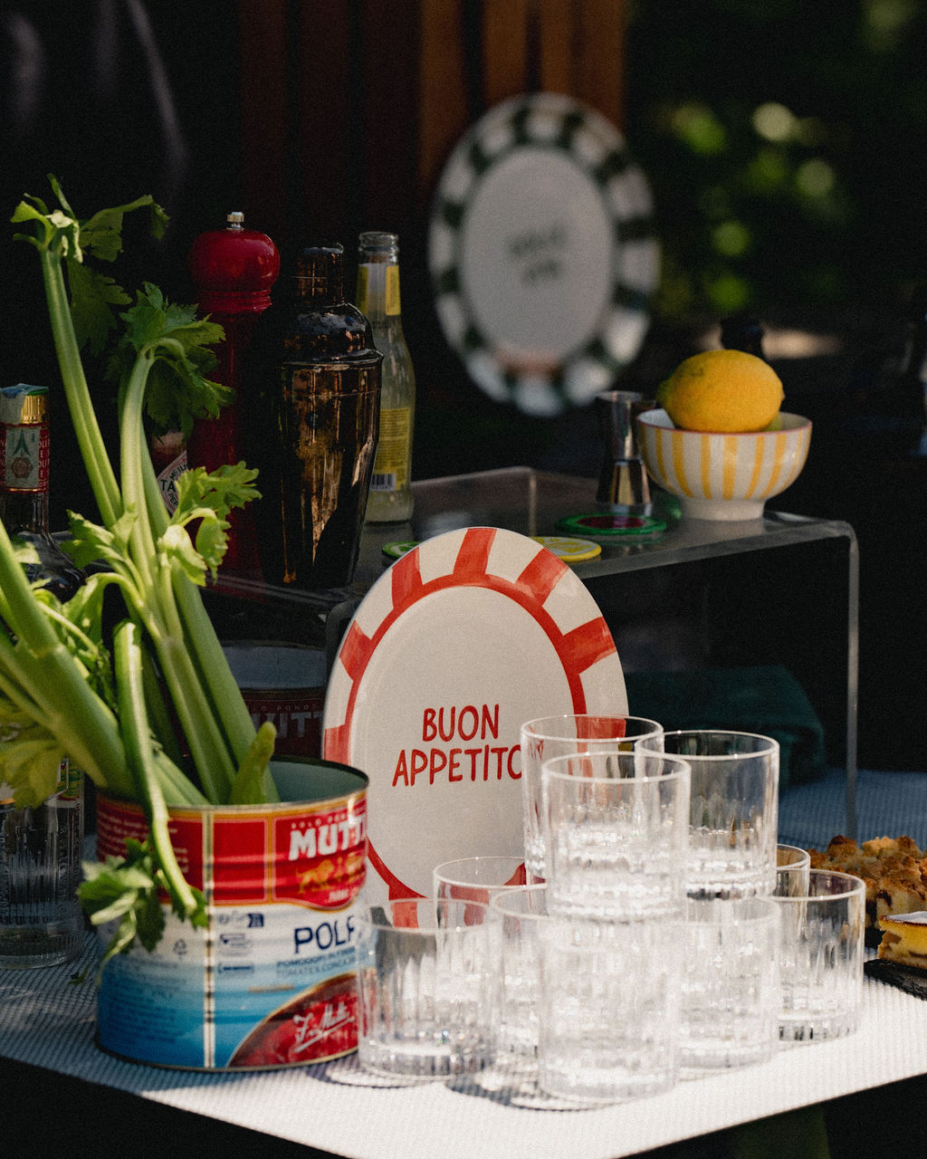 La soirée s’est déroulée devant la villa, en extérieur jusqu’à minuit, puis à l’intérieur dans l’atrium pour l’after party. Le brunch, lui, a eu lieu dans les jardins de la maison que nous avions louée pour la semaine.