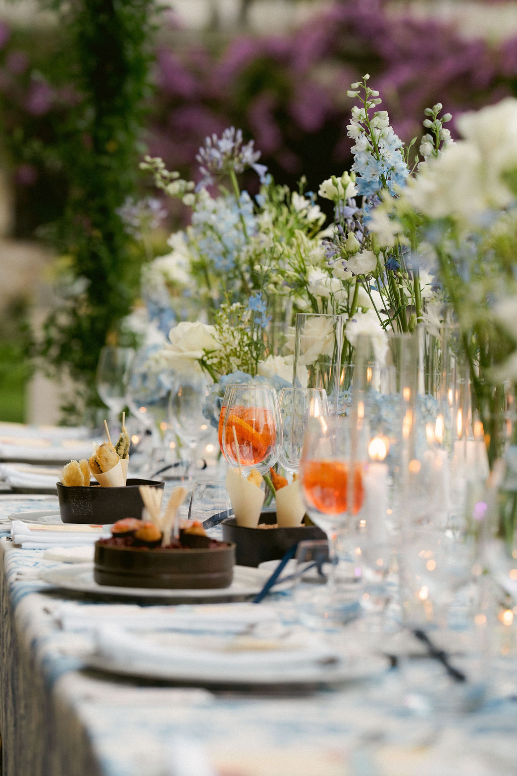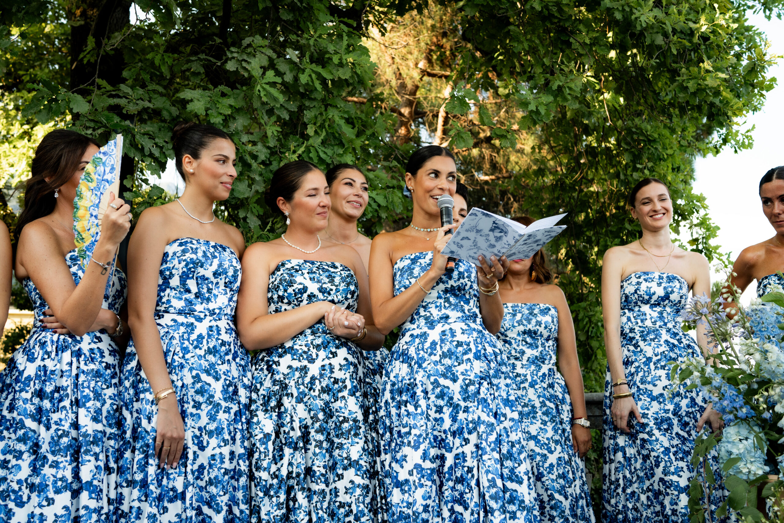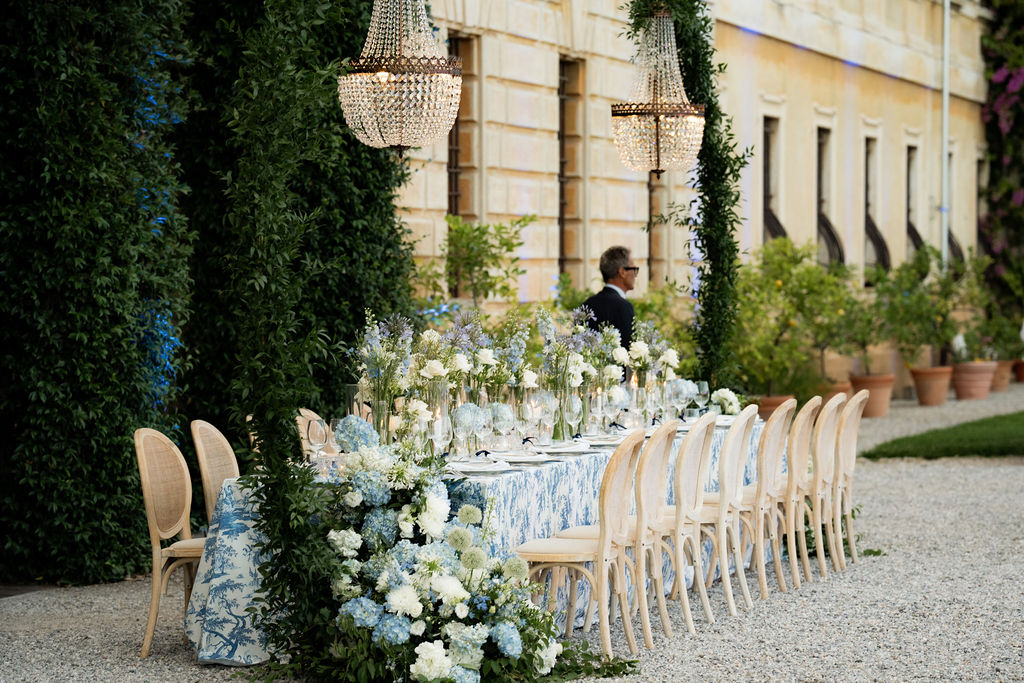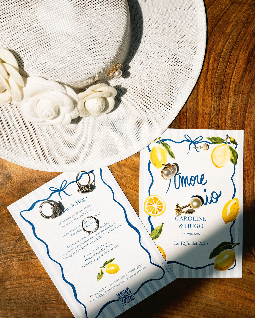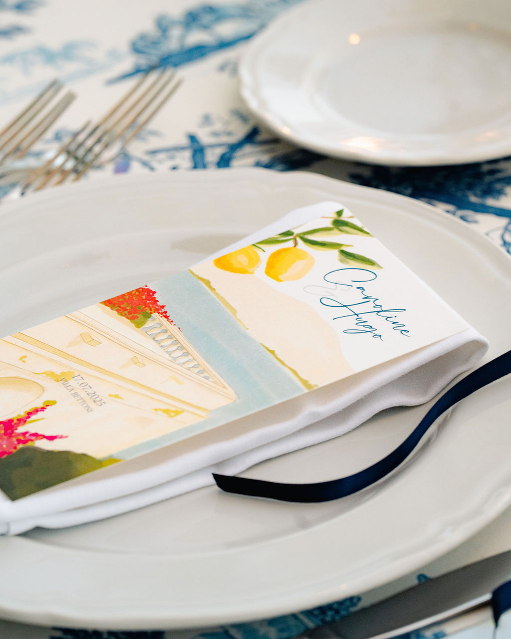 De leur rencontre inattendue à une demande en mariage digne d’un film italien, jusqu’à ce week-end d’exception entouré de leurs proches, tout ici respire la dolce vita. Une scénographie raffinée, des tonalités de bleu en harmonie avec le paysage, une ambiance vibrante portée par l’amour et la fête… Ce mariage est une ode au beau, au vrai, à l’intensité des instants partagés.