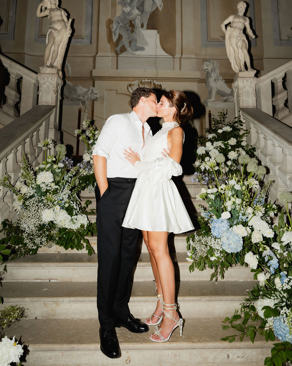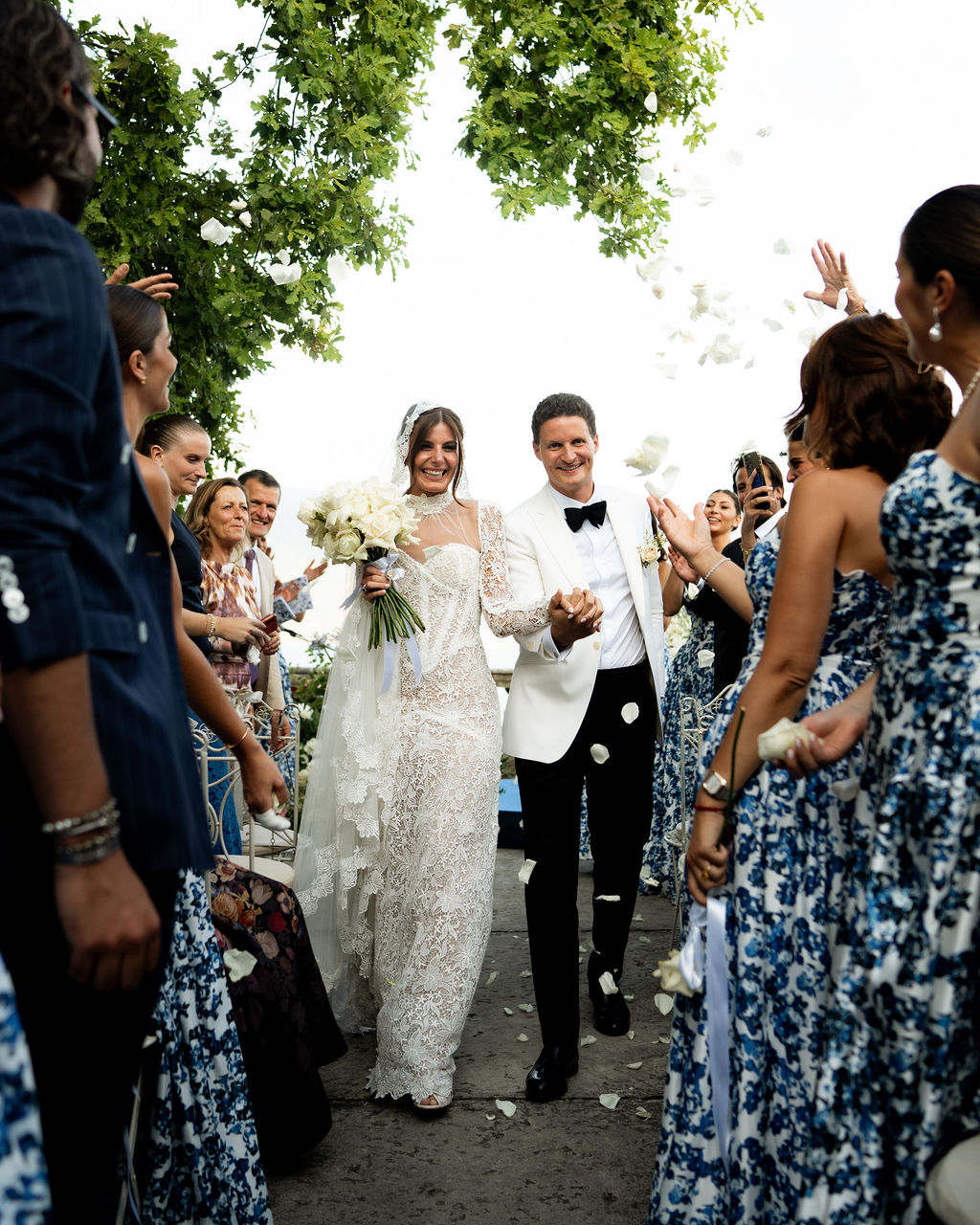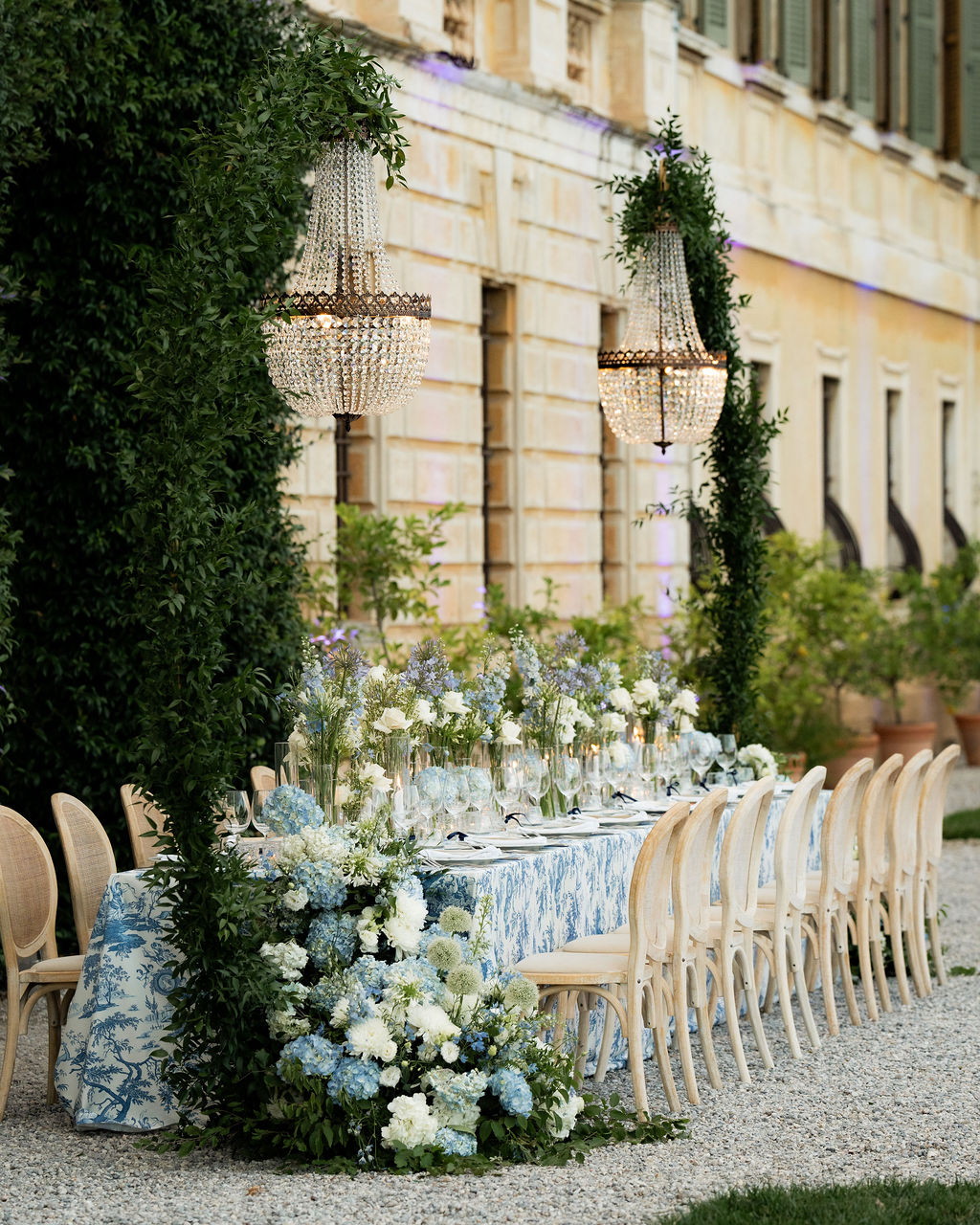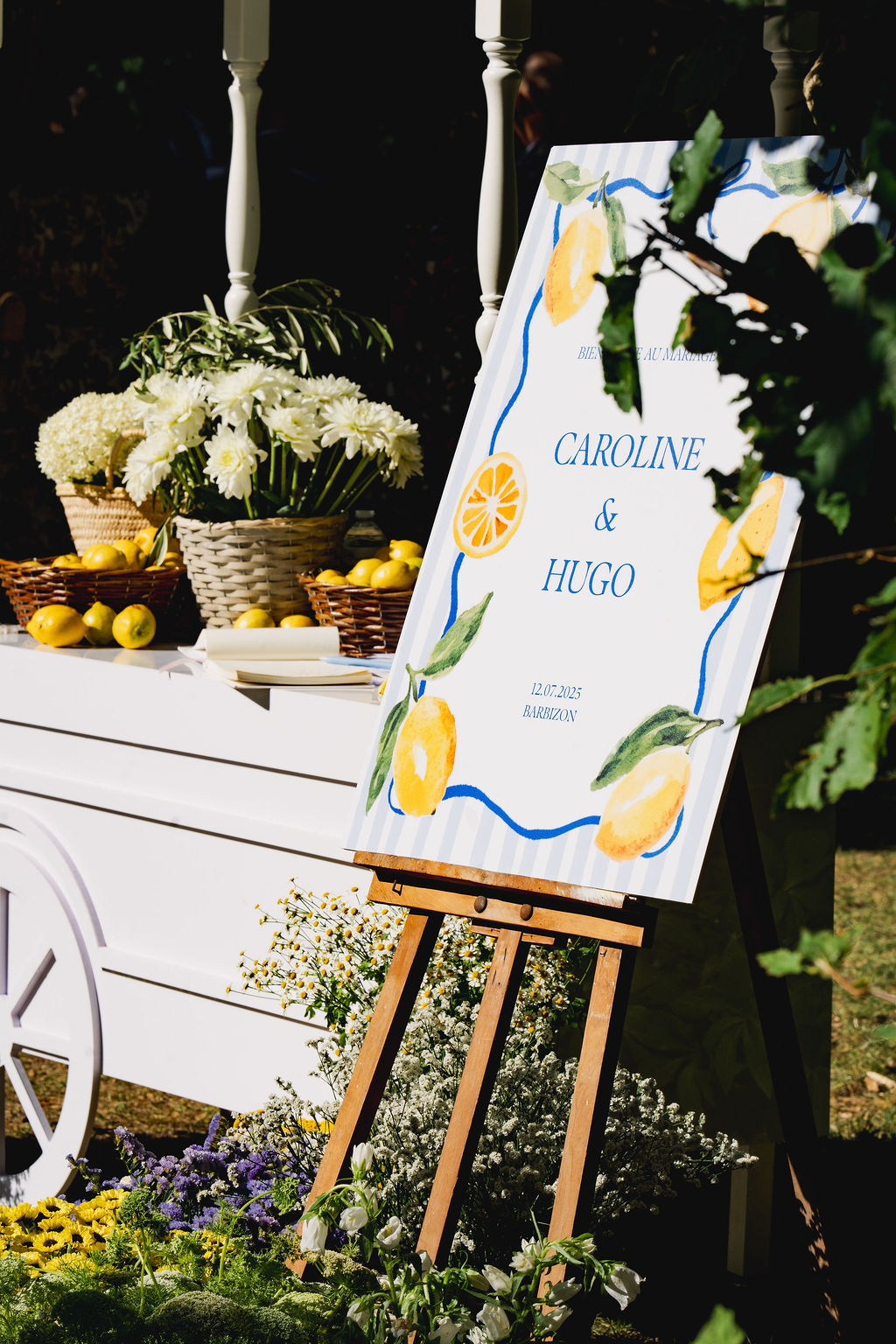 De leur rencontre inattendue à une demande en mariage digne d’un film italien, jusqu’à ce week-end d’exception entouré de leurs proches, tout ici respire la dolce vita. Une scénographie raffinée, des tonalités de bleu en harmonie avec le paysage, une ambiance vibrante portée par l’amour et la fête… Ce mariage est une ode au beau, au vrai, à l’intensité des instants partagés.
