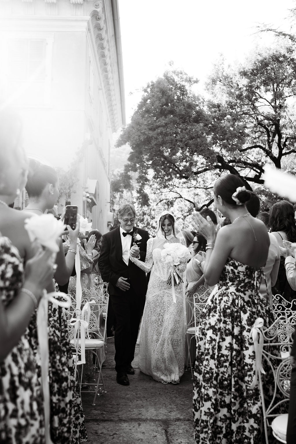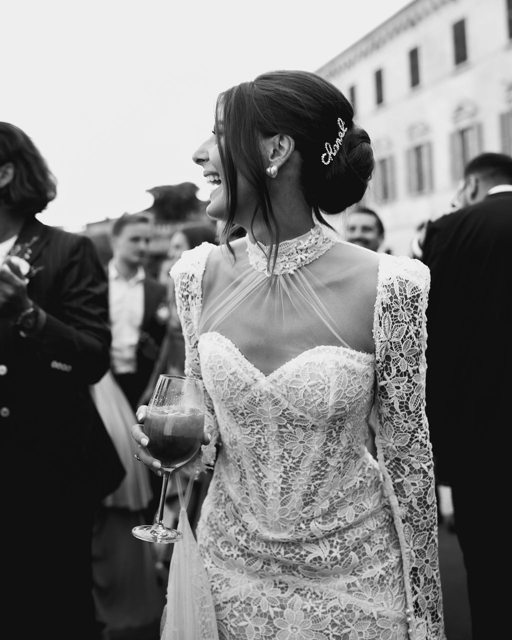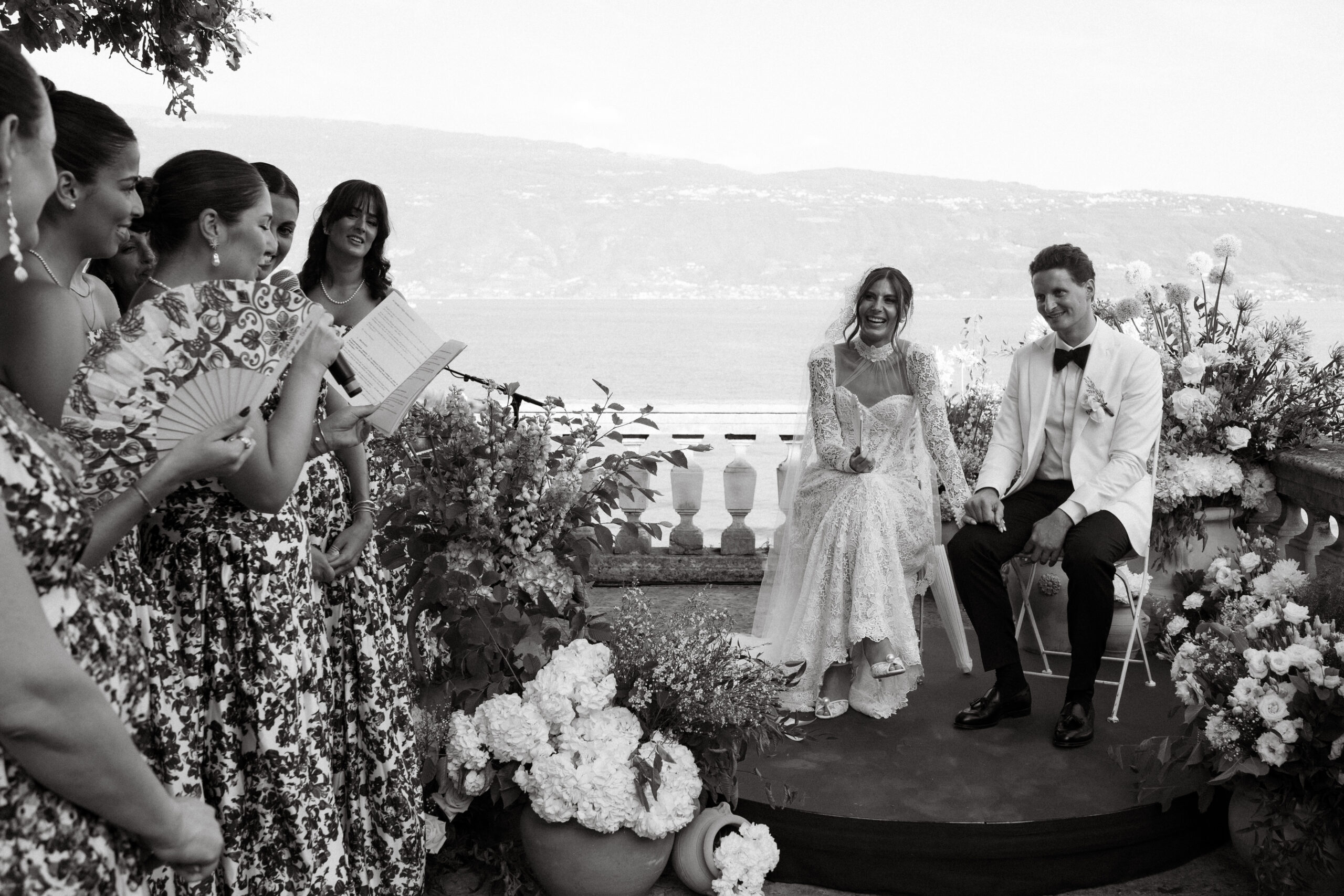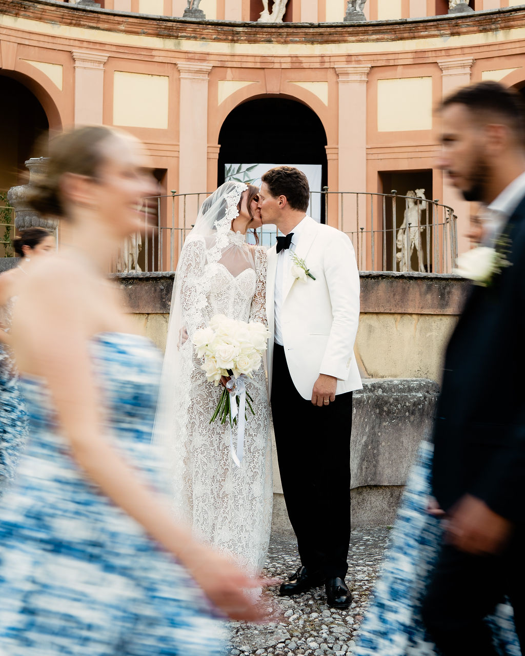 Nous rêvions depuis toujours d’un mariage en Italie, sur un lac — d’autant plus que la demande avait été faite sur le lac de Côme et que notre premier voyage en tant que couple s’était déroulé sur la côte amalfitaine. Nous voulions rester fidèles à cet amour pour l’Italie. Et les photos parlent d’elles-mêmes : c’était extraordinaire. Nous avions même du mal à réaliser que nous aurions la chance de nous marier là-bas.