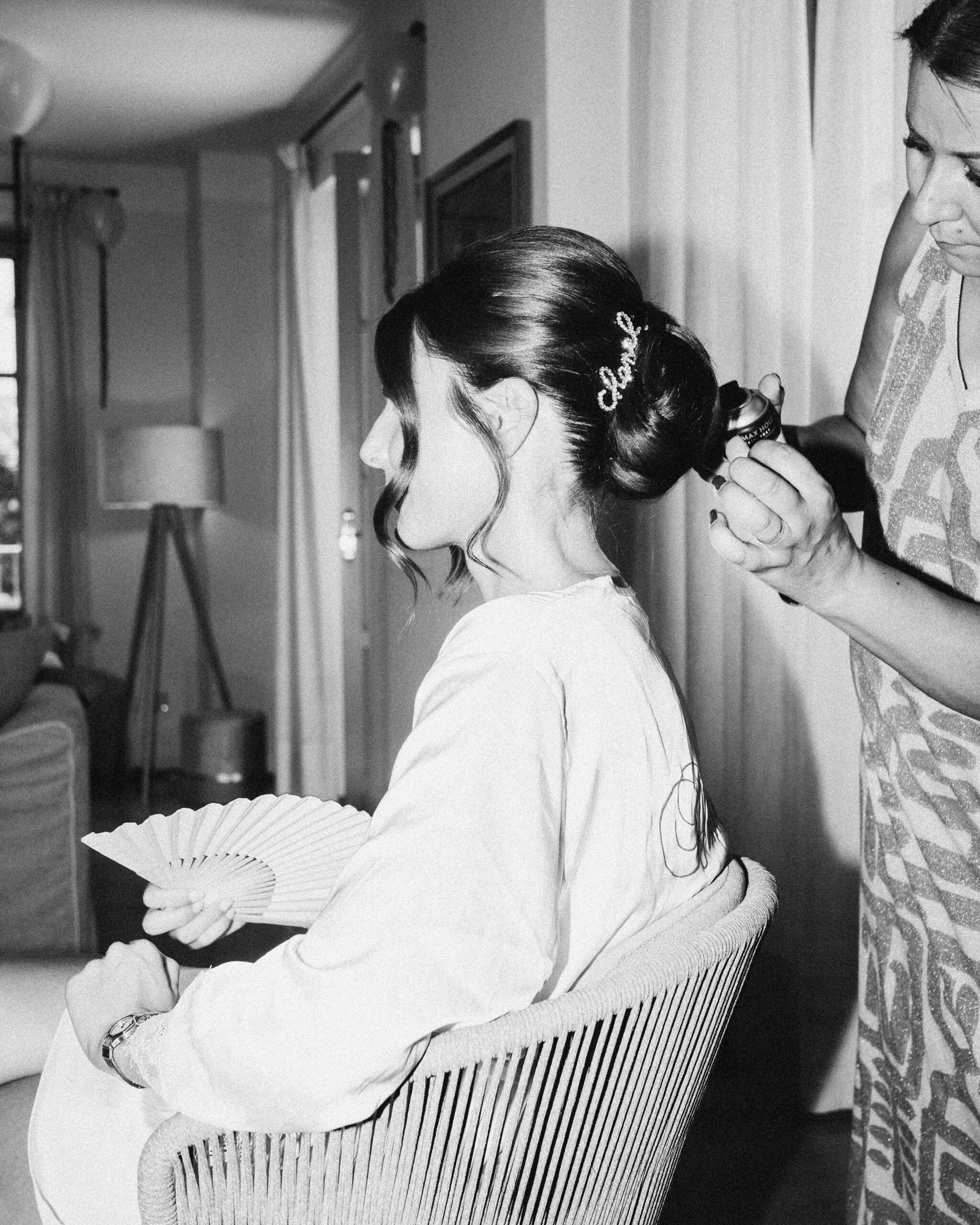Ma robe a été créée de A à Z, donc chaque essayage était une découverte. Ma maman et mes témoins étaient présents à chaque rendez-vous — un vrai moment de partage.
