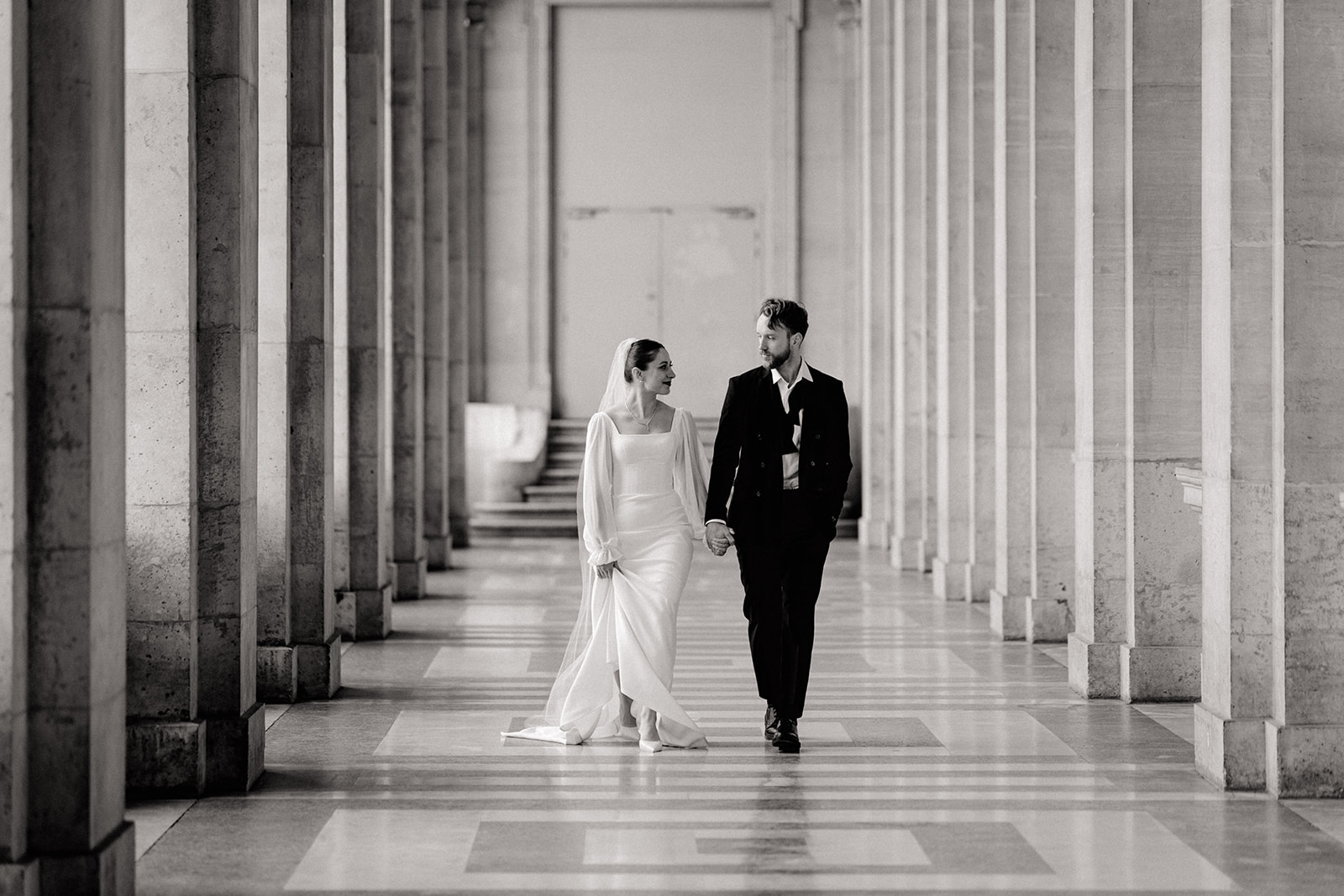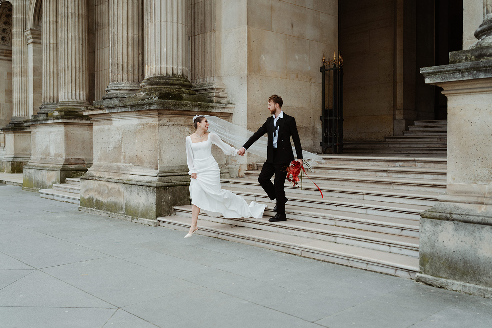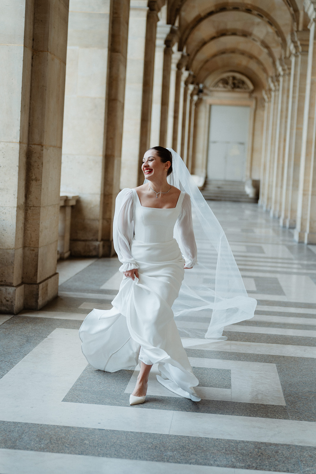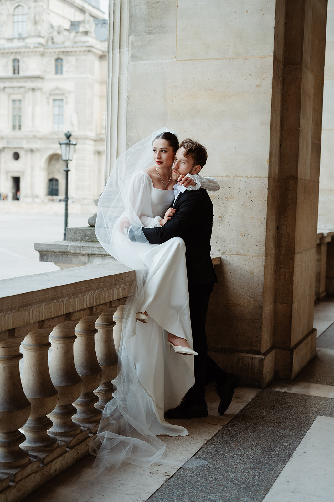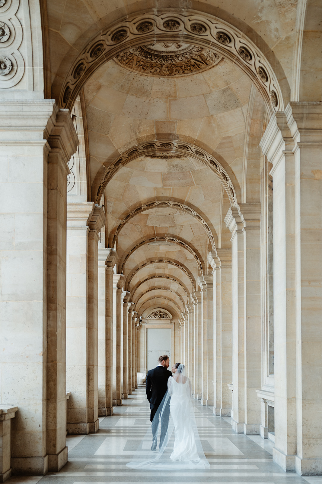 Arcades du Louvre • Pour un jeune couple étranger, il nous semblait essentiel d’avoir une touche de ce Paris dont tout le monde rêve, Paris capitale de l’amour. Nous avons donc choisi les arcades du Louvres pour y officier la cérémonie d’Iryna & Vasyl. Symbole parisien, architecture typique et centre de Paris. Ce lieu historique nous semblait évident.