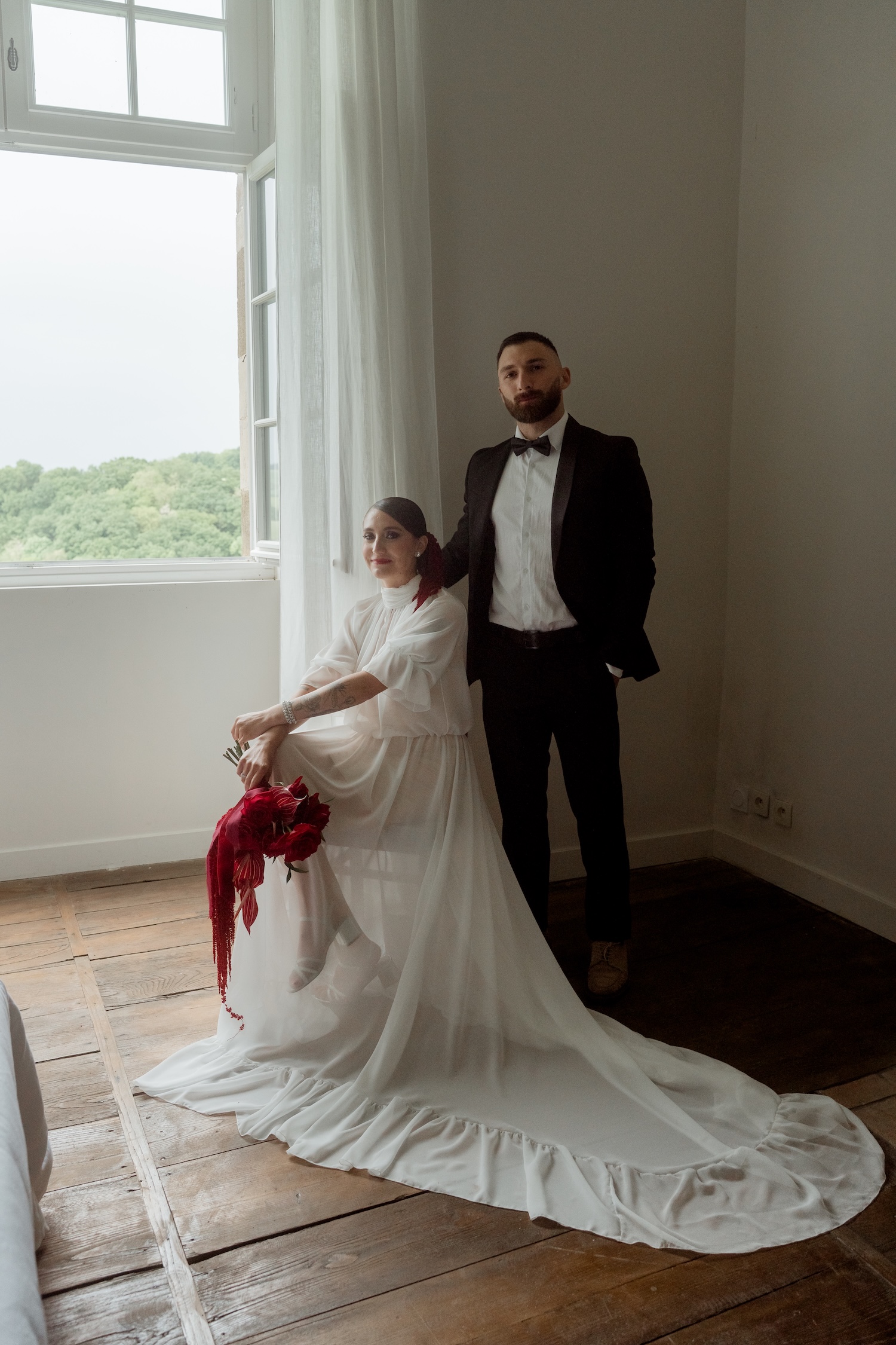 La particularité de MADE, c’est que ce n’est pas un shooting organisé autour d’une équipe prédéfinie, mais un concept de création de contenu immersif dédié aux prestataires du mariage. Les professionnels s’y inscrivent volontairement, en finançant leur participation pour créer des images fortes, éditoriales et cohérentes. C’est un véritable investissement stratégique dans leur visibilité.