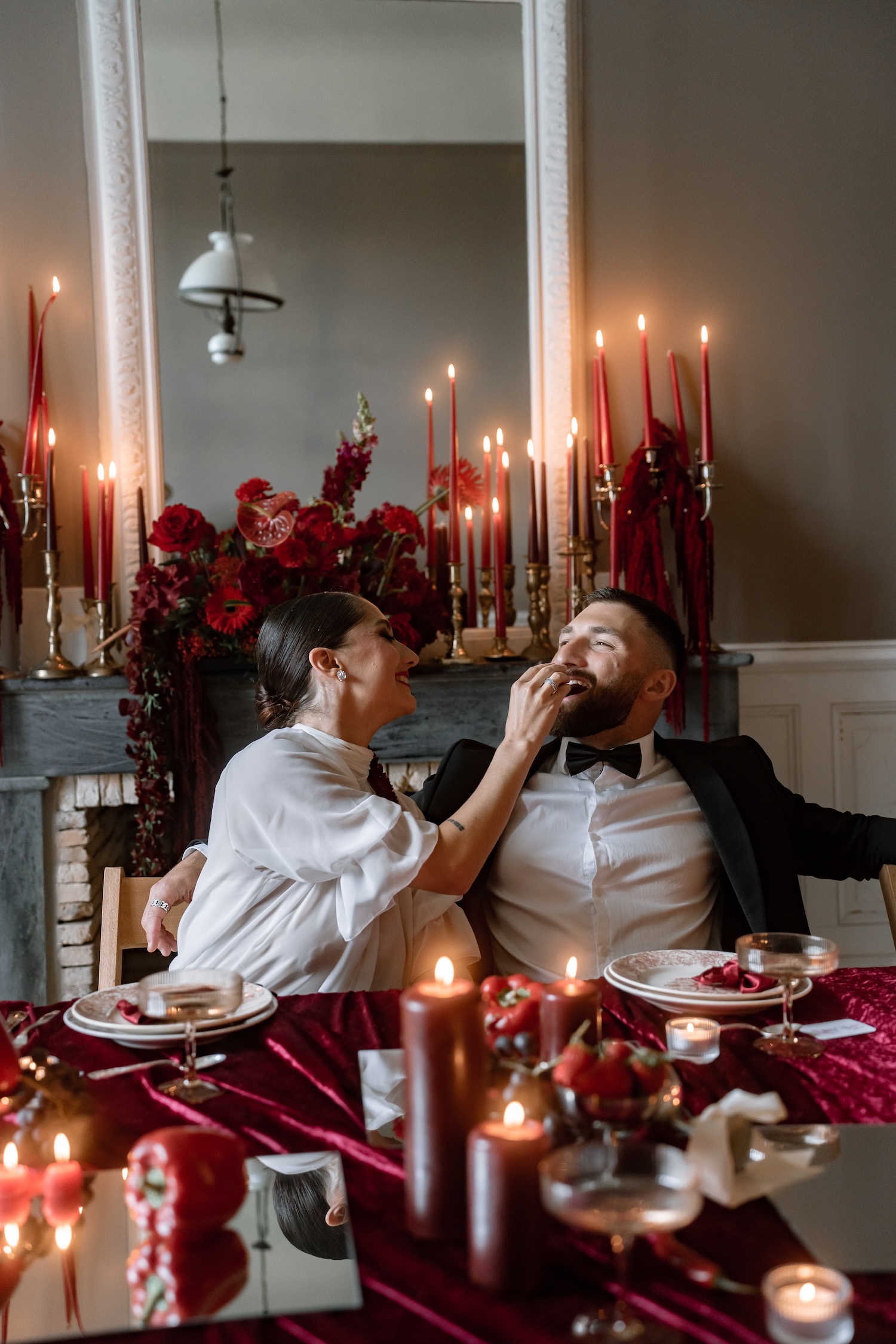 Porté par un rouge intense, entre inspirations italiennes et énergie espagnole, cet univers célèbre l’amour dans toute sa puissance : passionné, vibrant, incarné. Jeux de textures, scénographie théâtrale, détails maîtrisés… chaque élément compose une esthétique forte, où l’élégance rencontre l’audace sans jamais la compromettre.