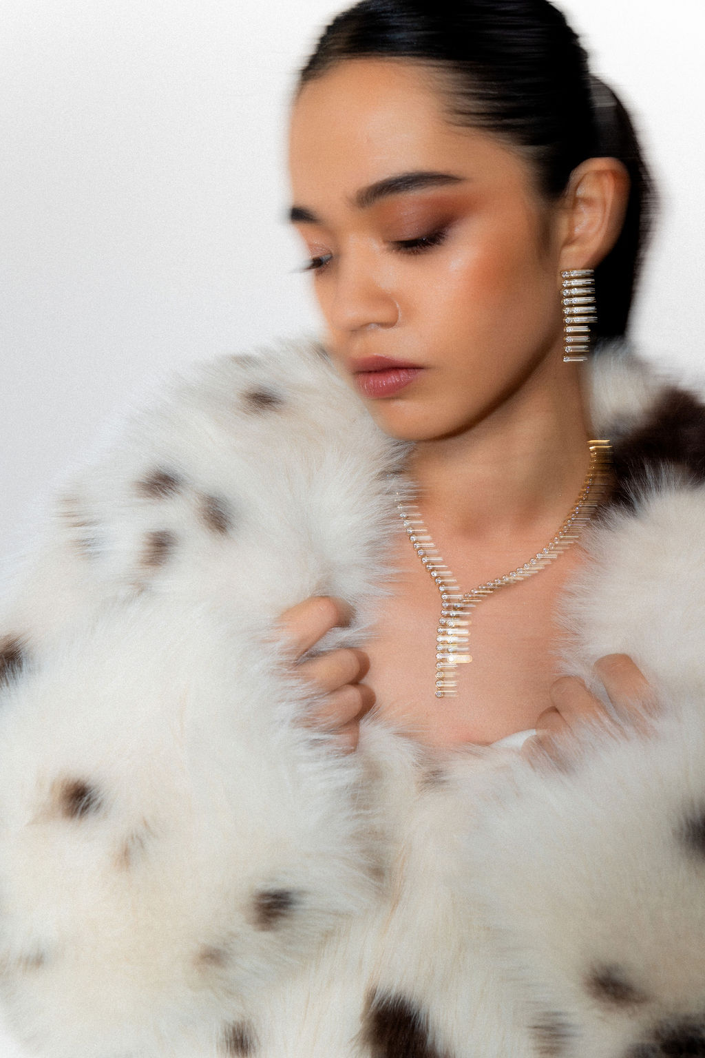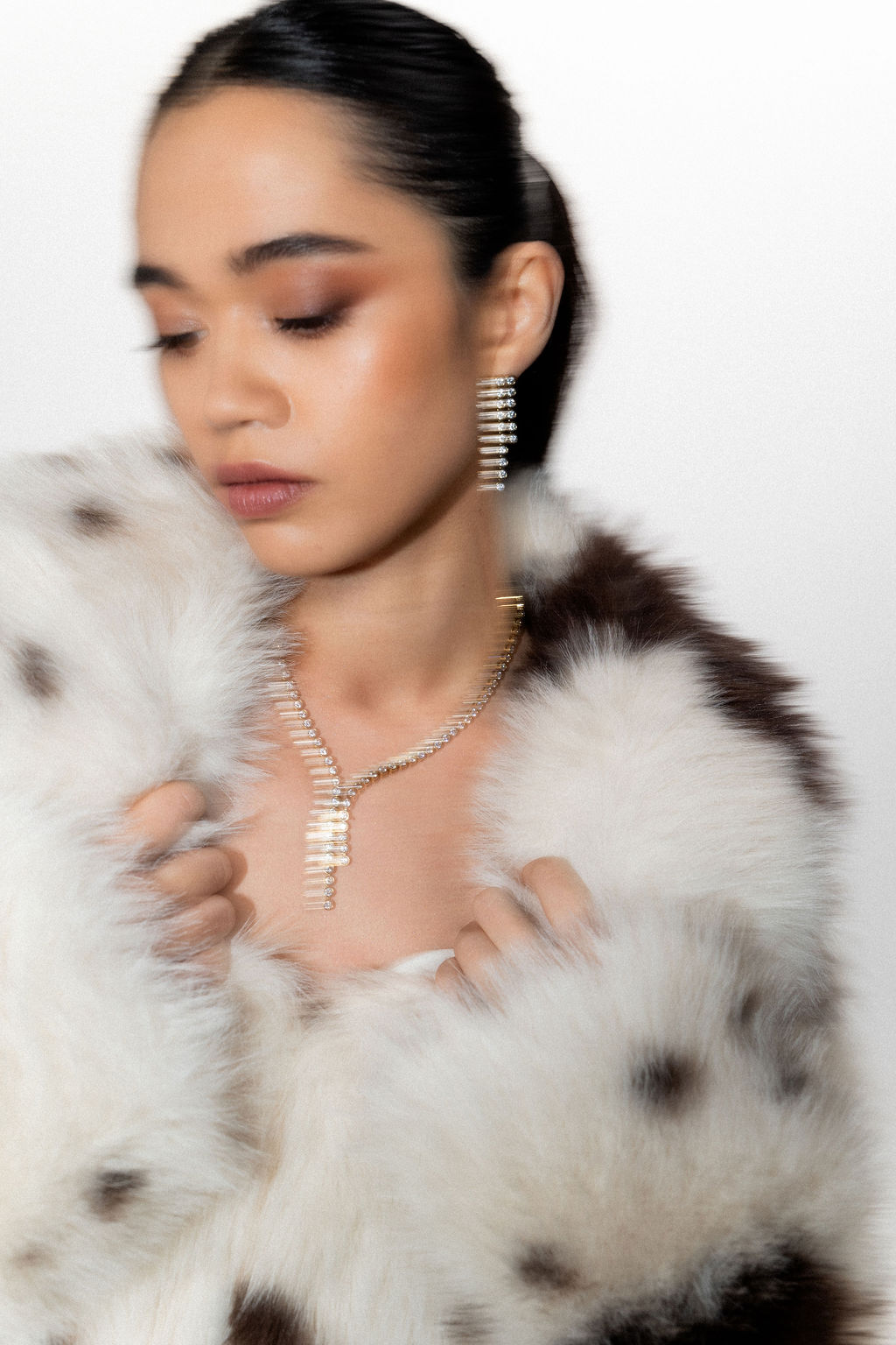 Inspirée par l’esthétique couture, les icônes de style et l’attitude des tapis rouges, la collection revisite les codes joailliers avec audace et précision. Perles d’eau douce, chaînes tennis, lignes structurées et jeux de lumière composent des bijoux pensés pour accompagner la silhouette, souligner un port de tête, capter le regard sans jamais l’imposer. Chaque pièce est un équilibre maîtrisé entre structure et légèreté, éclat et confort, allure et émotion.