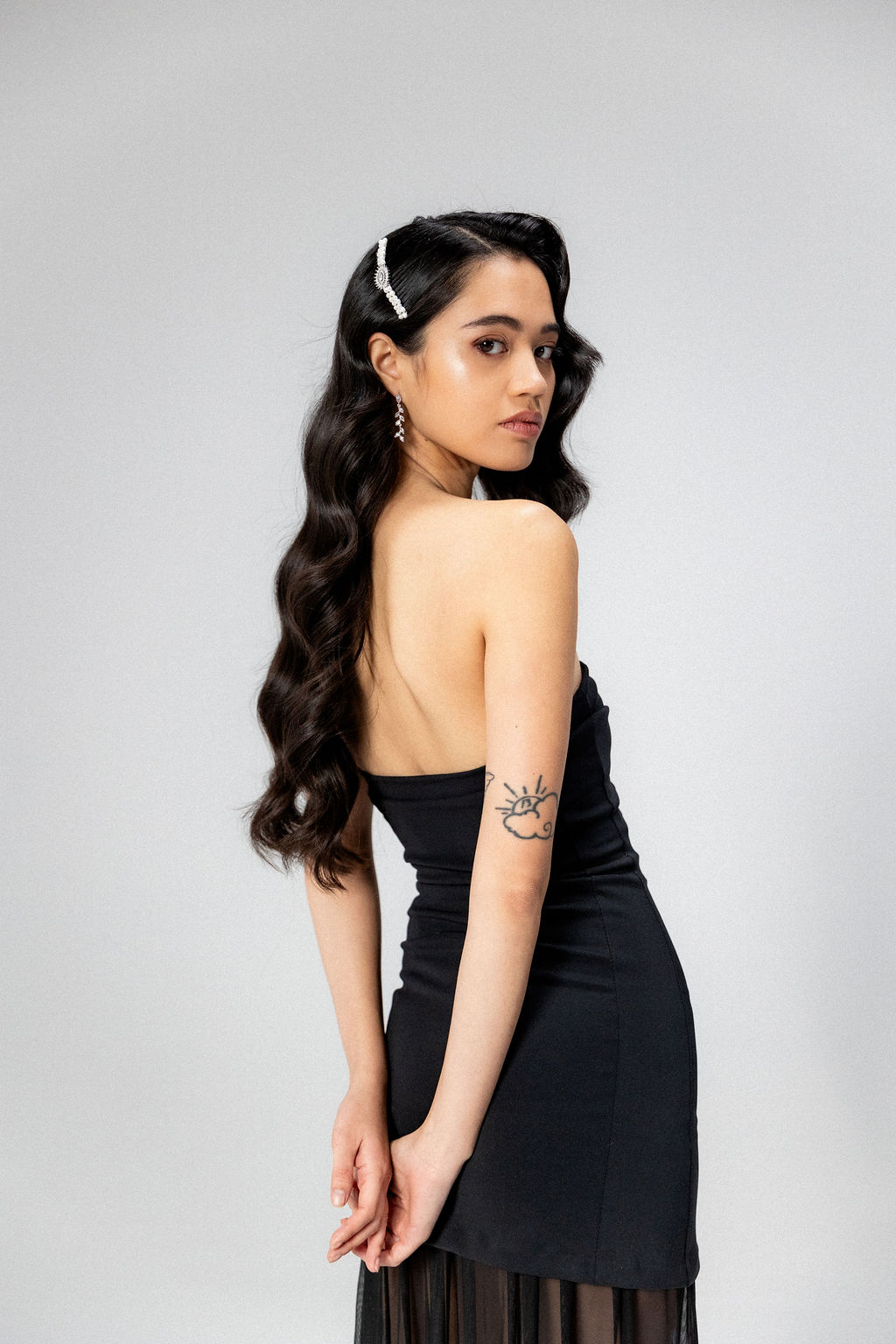 Je me suis inspirée des icônes de mode et de l’esthétique couture, des silhouettes structurées, de l’attitude des tapis rouges.