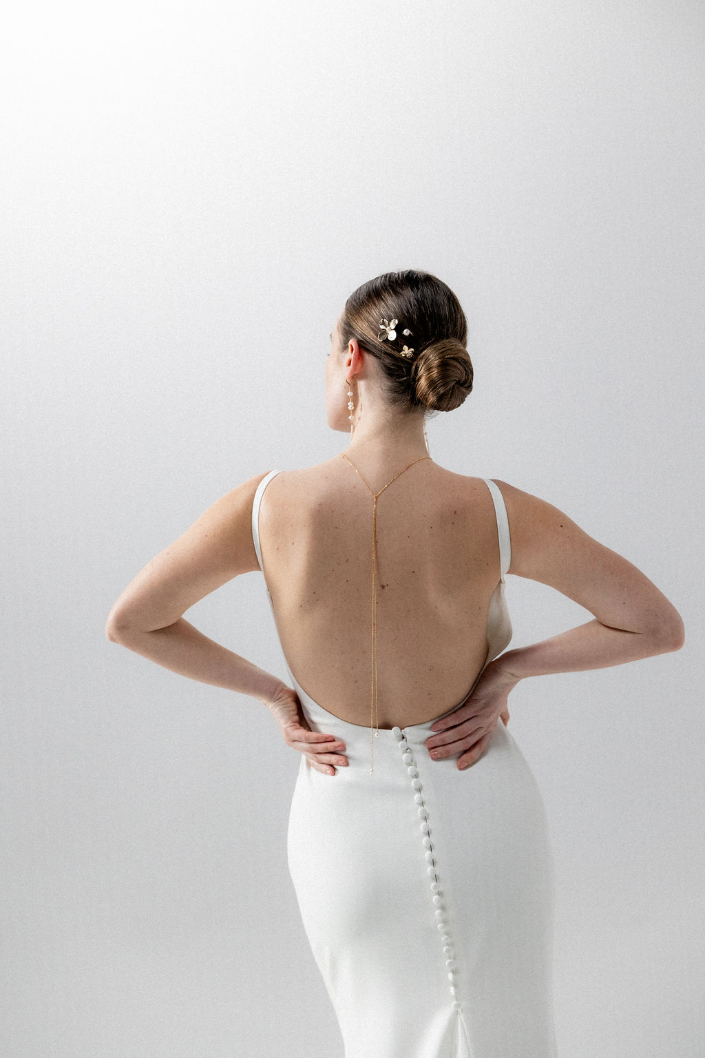 Chaque détail compte : proportions, poids, équilibre. Un bijou de mariée doit être confortable et accompagner la journée sans jamais contraindre.