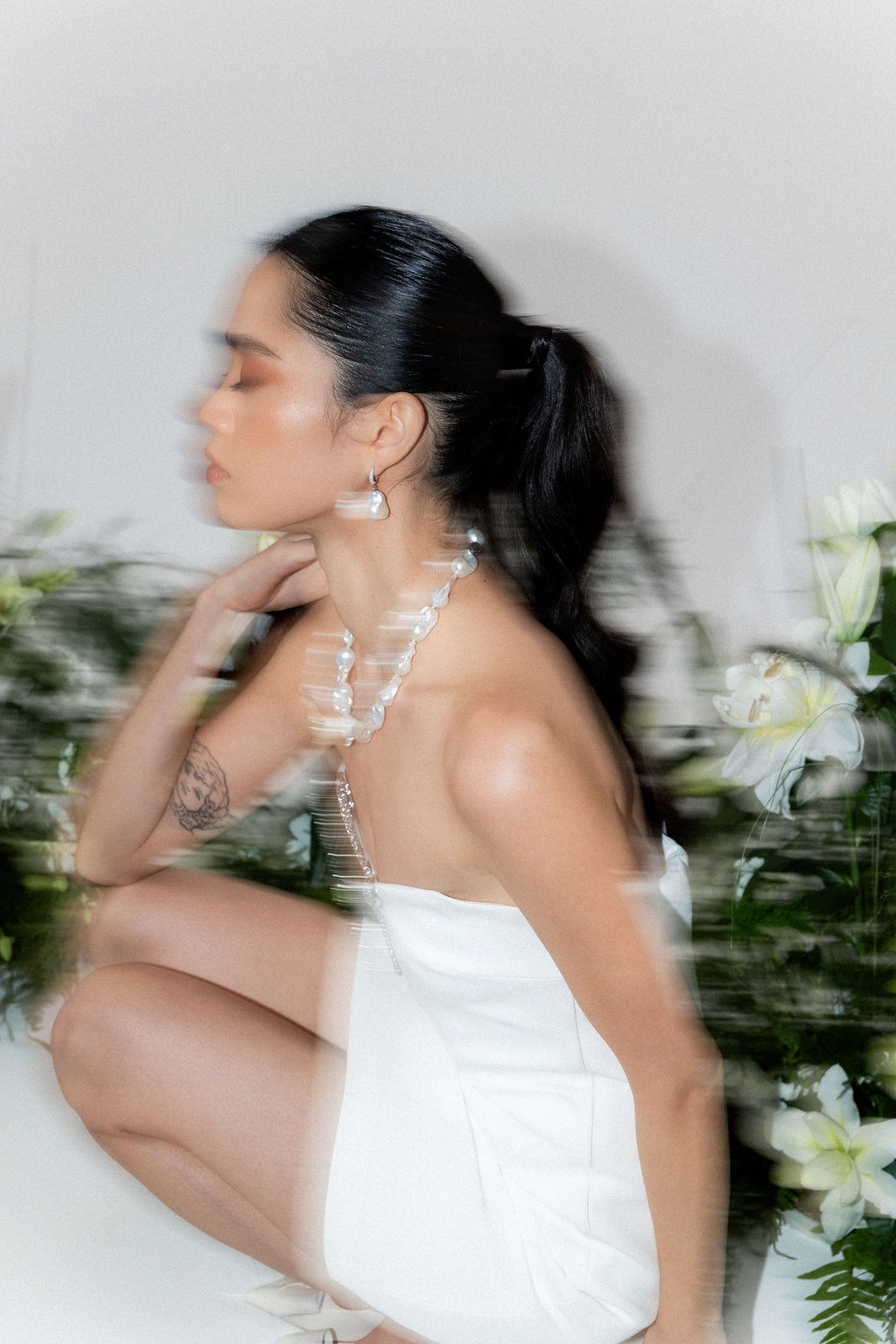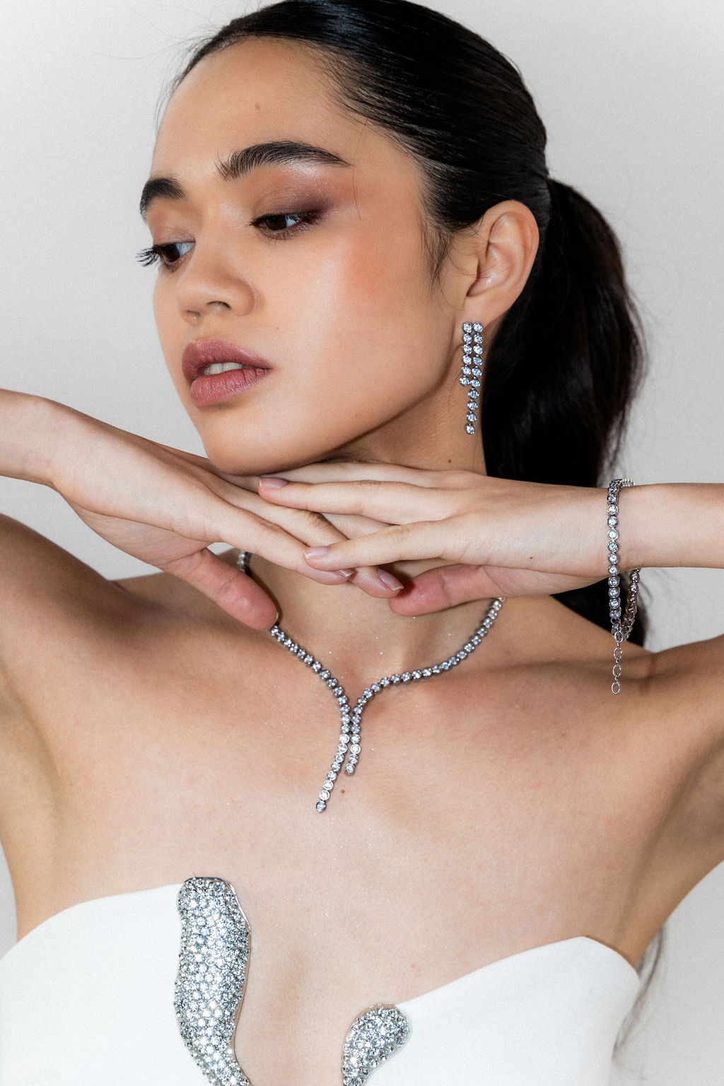 J’ai également puisé dans les codes de la joaillerie traditionnelle – la chaîne tennis, le travail de la perle, la précision des lignes – pour les transposer dans un univers bridal contemporain.