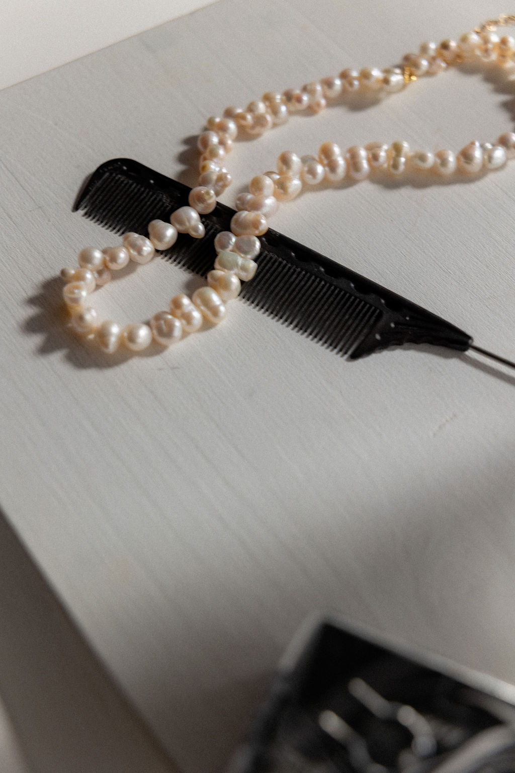 On retrouve la perle d’eau douce, notamment la perle baroque que j’ai travaillée sous différentes formes.