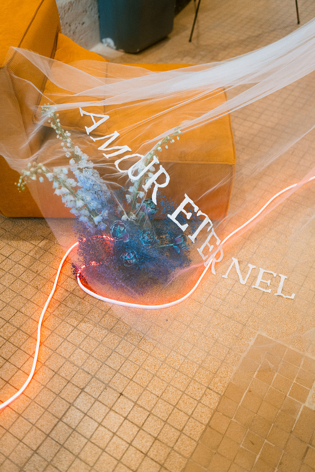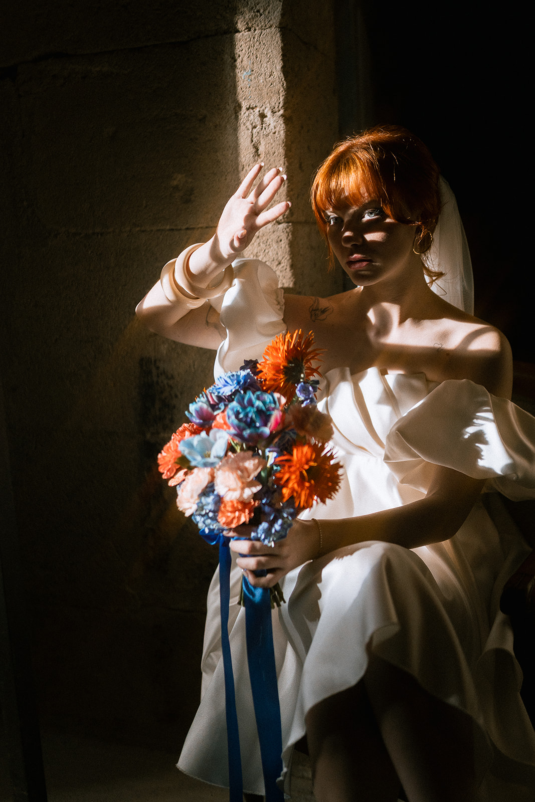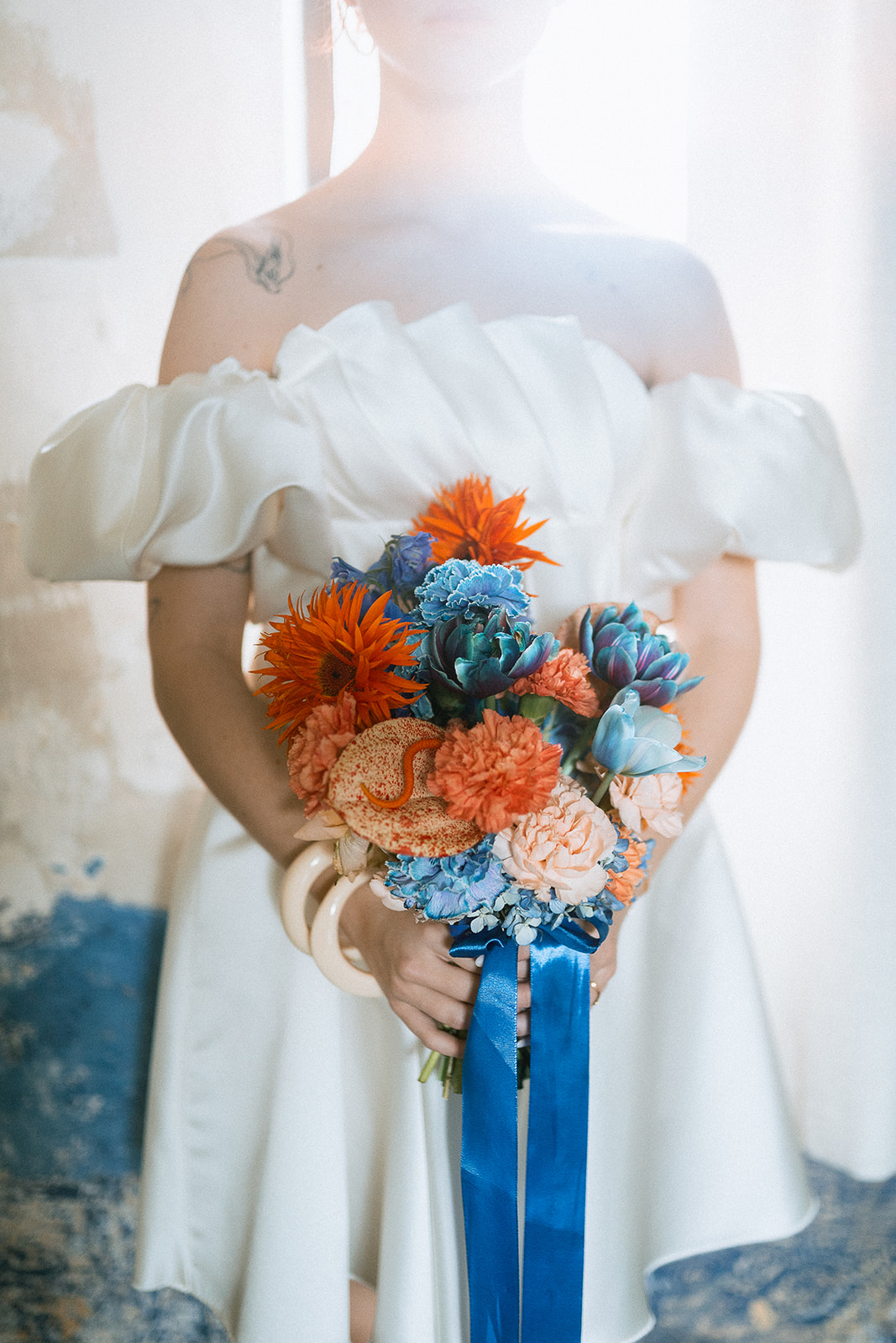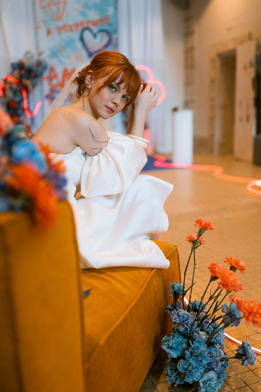 Mariage à Béziers dans un lieu atypique © Katell DesormeauxModerne et brut bleu et orange