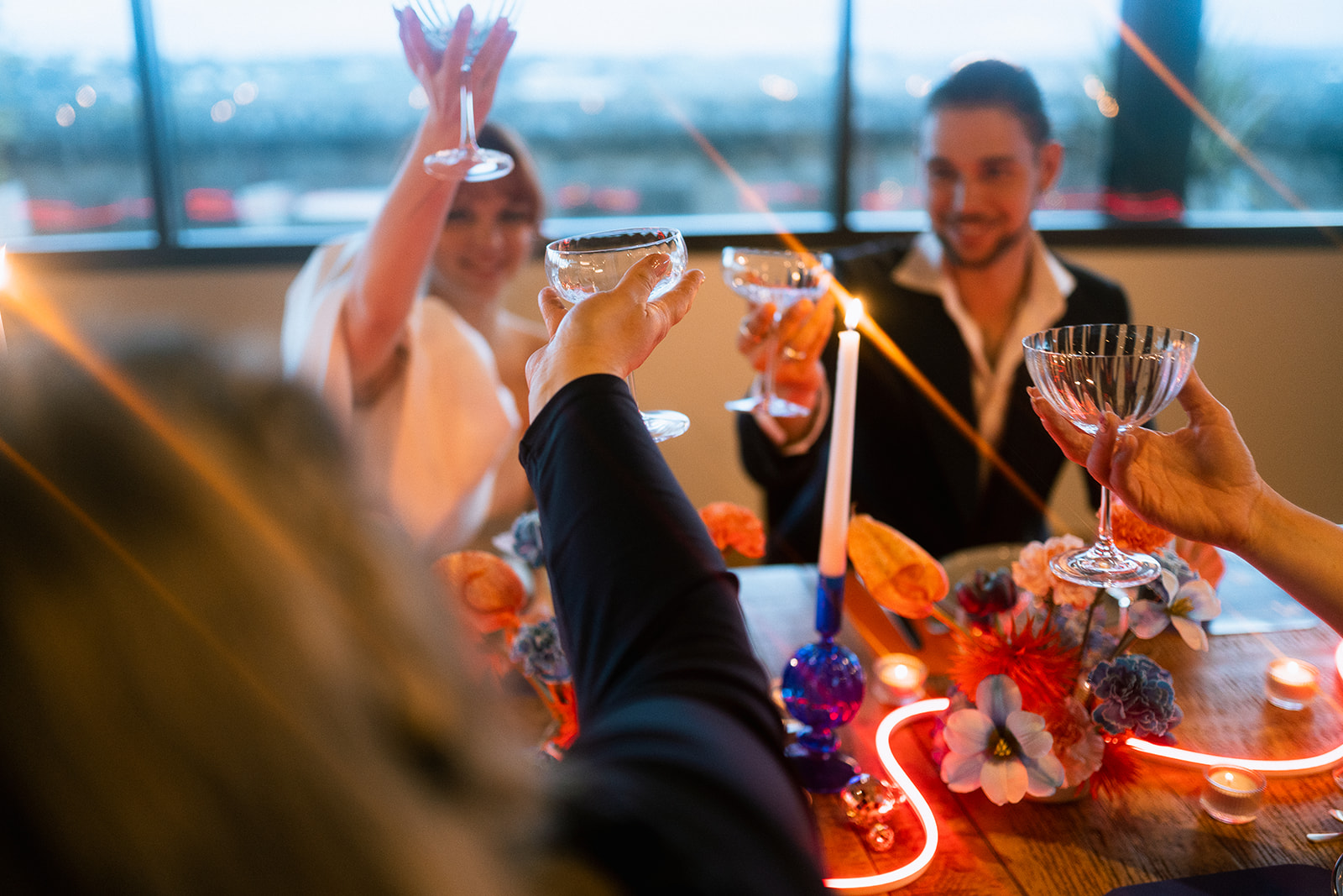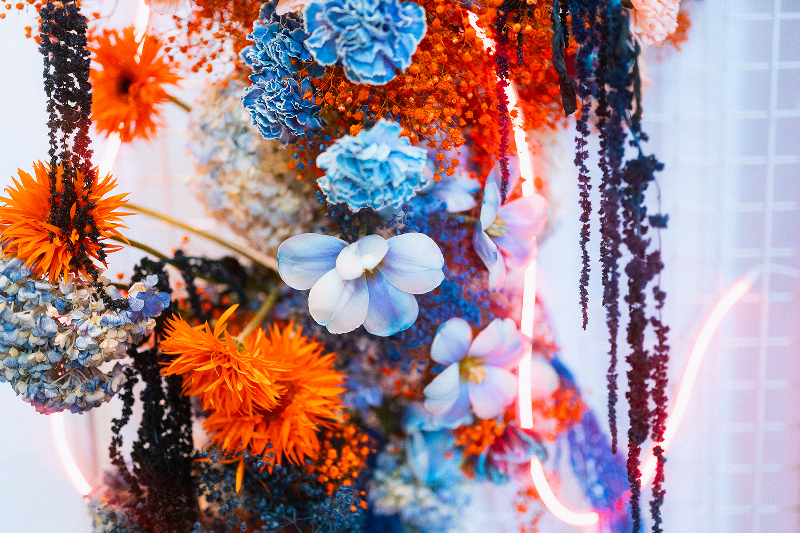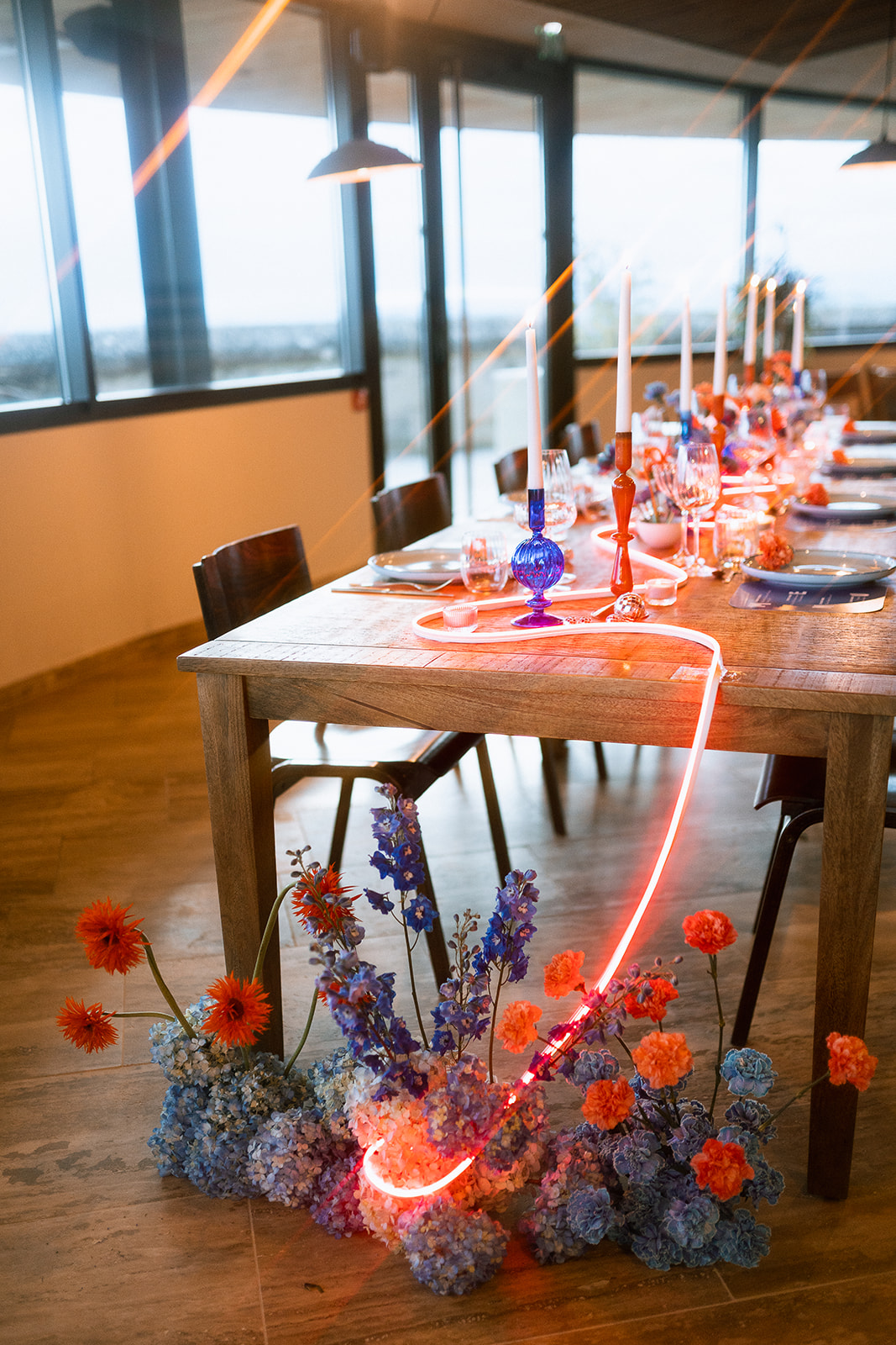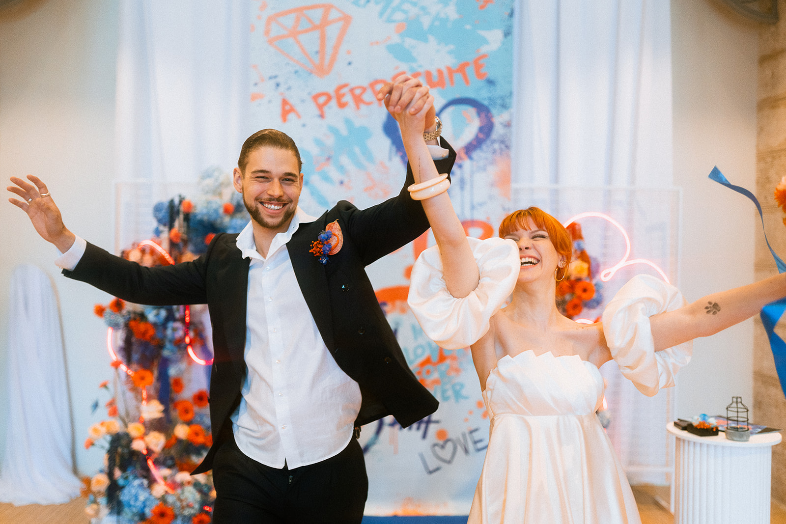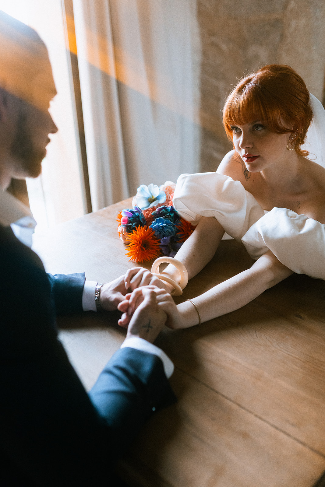 Mariage à Béziers dans un lieu atypique © Katell DesormeauxModerne et brut bleu et orange