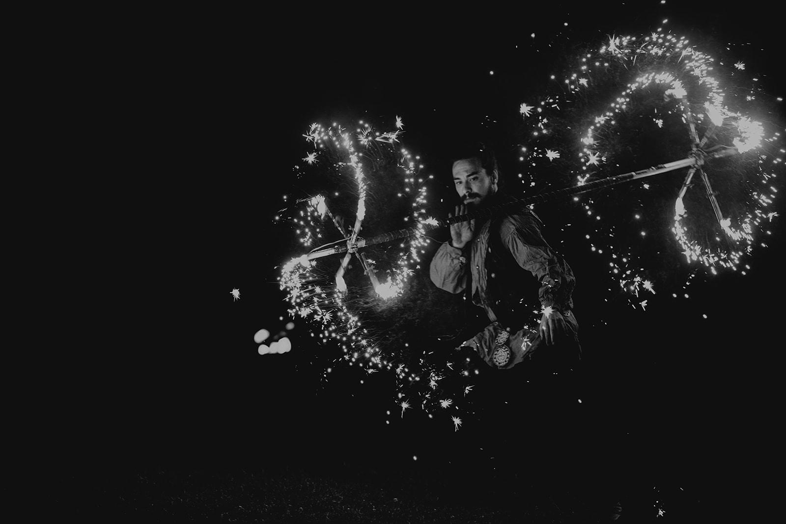 « La descente des escaliers à la lumière des feux de bingale, au son de Chakra (Fakir), une musique qui a du sens dans notre histoire .