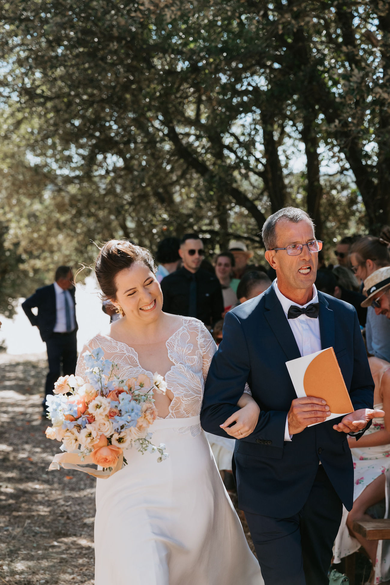 Le premier, remonter l’allée aux bras de nos parents respectifs. Ce moment où nous avons découvert tous les invités présents, pour nous, pour cet évènement, nous a coupé le souffle et nous a fait verser quelques larmes ;
