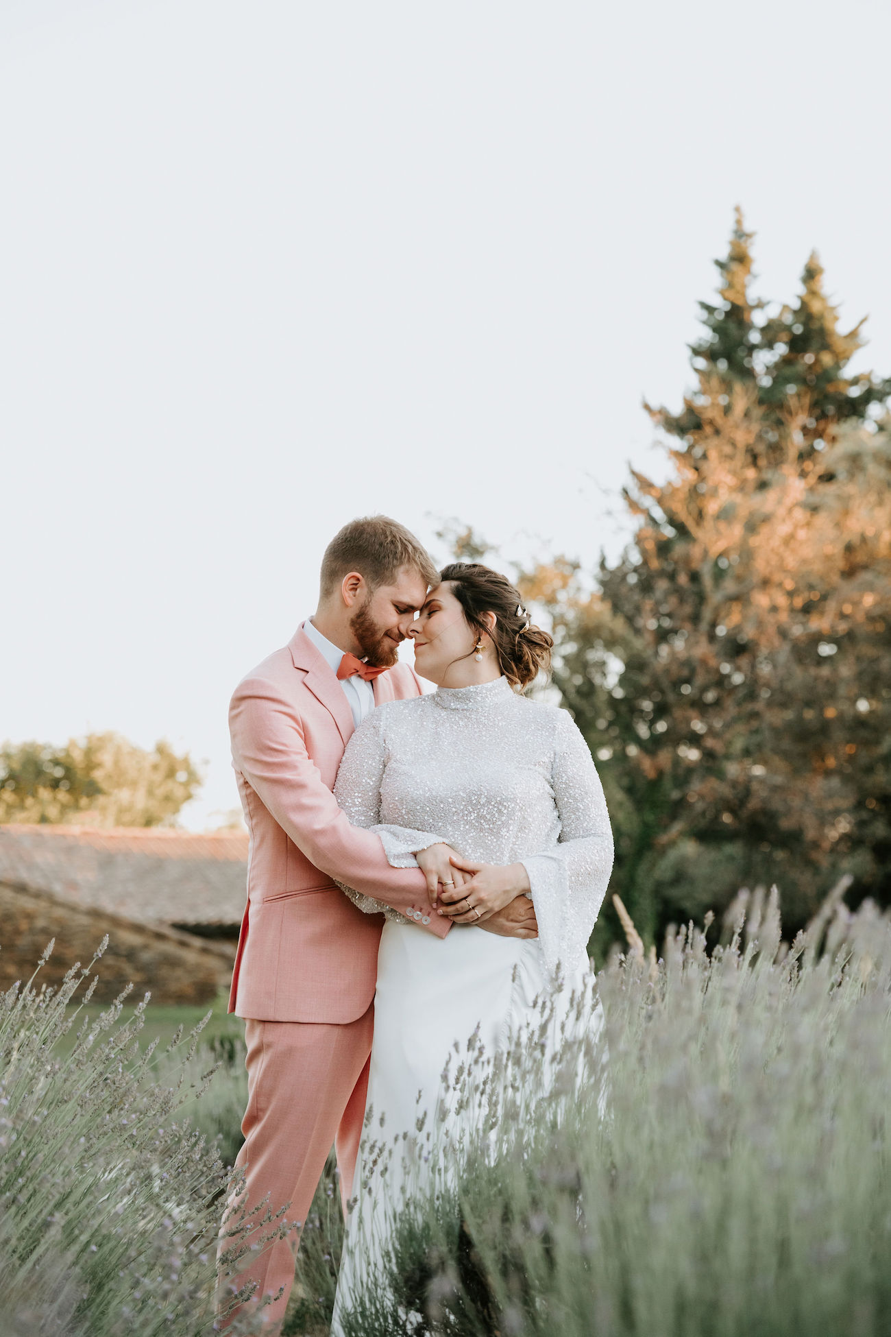 Puis, à la fin de cette séance, en prenant quelques photos dans les lavandes près de l’orangerie et juste avant d’entrer pour rejoindre nos invités pour le dîner et alors que la musique d’entrée ne résonnait pas encore, nous avons entendu nos invités chanter et frapper dans leur main pour nous acclamer. Nous avons alors été très émus par l’engouement de ces derniers et tout l’amour qu’ils nous ont porté. Nous voulions que cette journée ne soit pas seulement une journée pour célébrer notre amour mais l’amour en général et nous avons compris que le pari était réussi à cet instant précis.