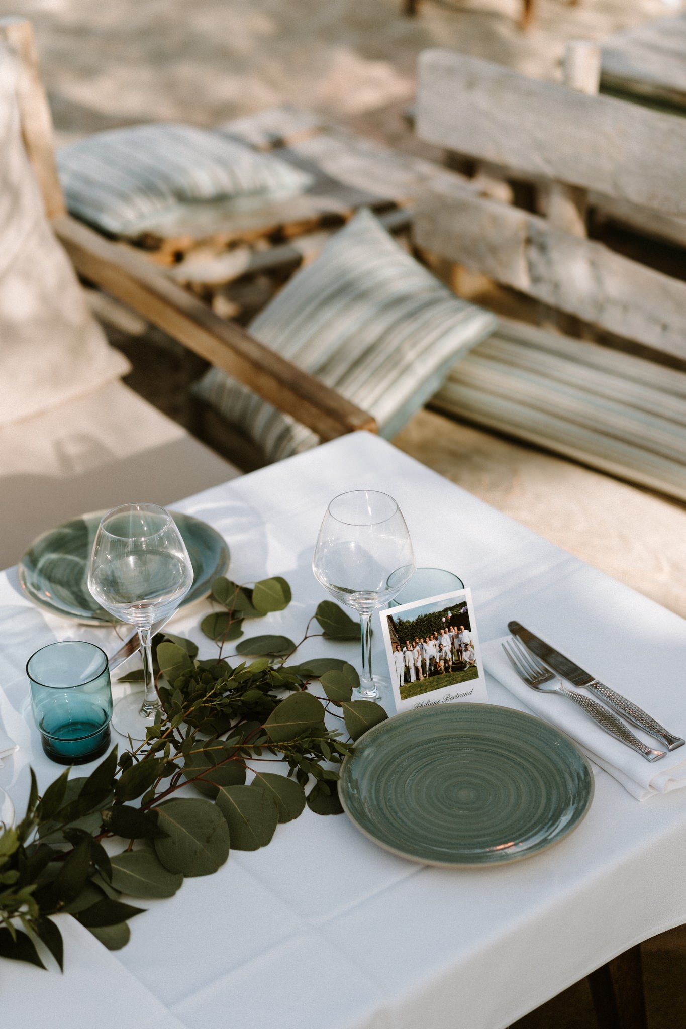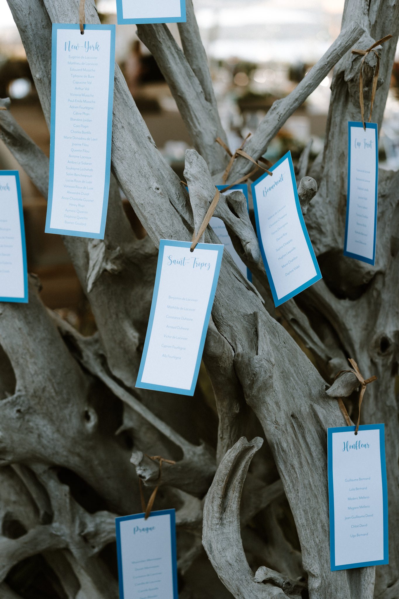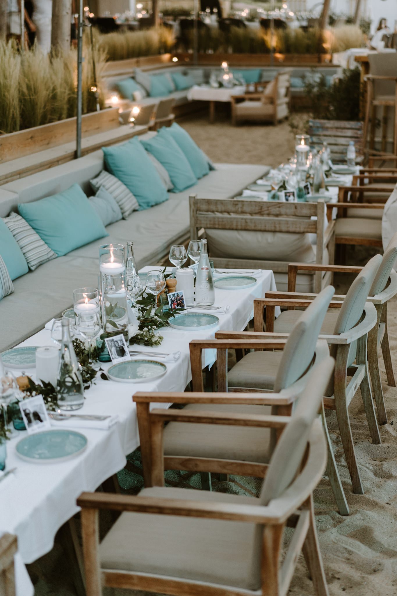 L’avantage de se marier sur une plage de Pampelonne, c’est que le lieu est tellement magique qu’une simple décoration florale sur les tables suffit. Le thème : nos voyages à travers le monde pendant nos 5 premières années ensemble et les lieux qui nous tiennent à cœur.