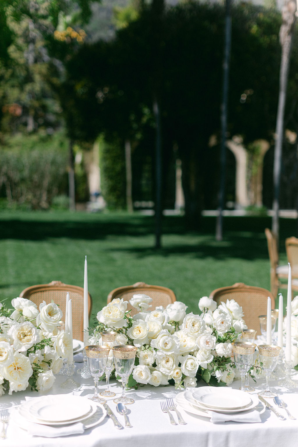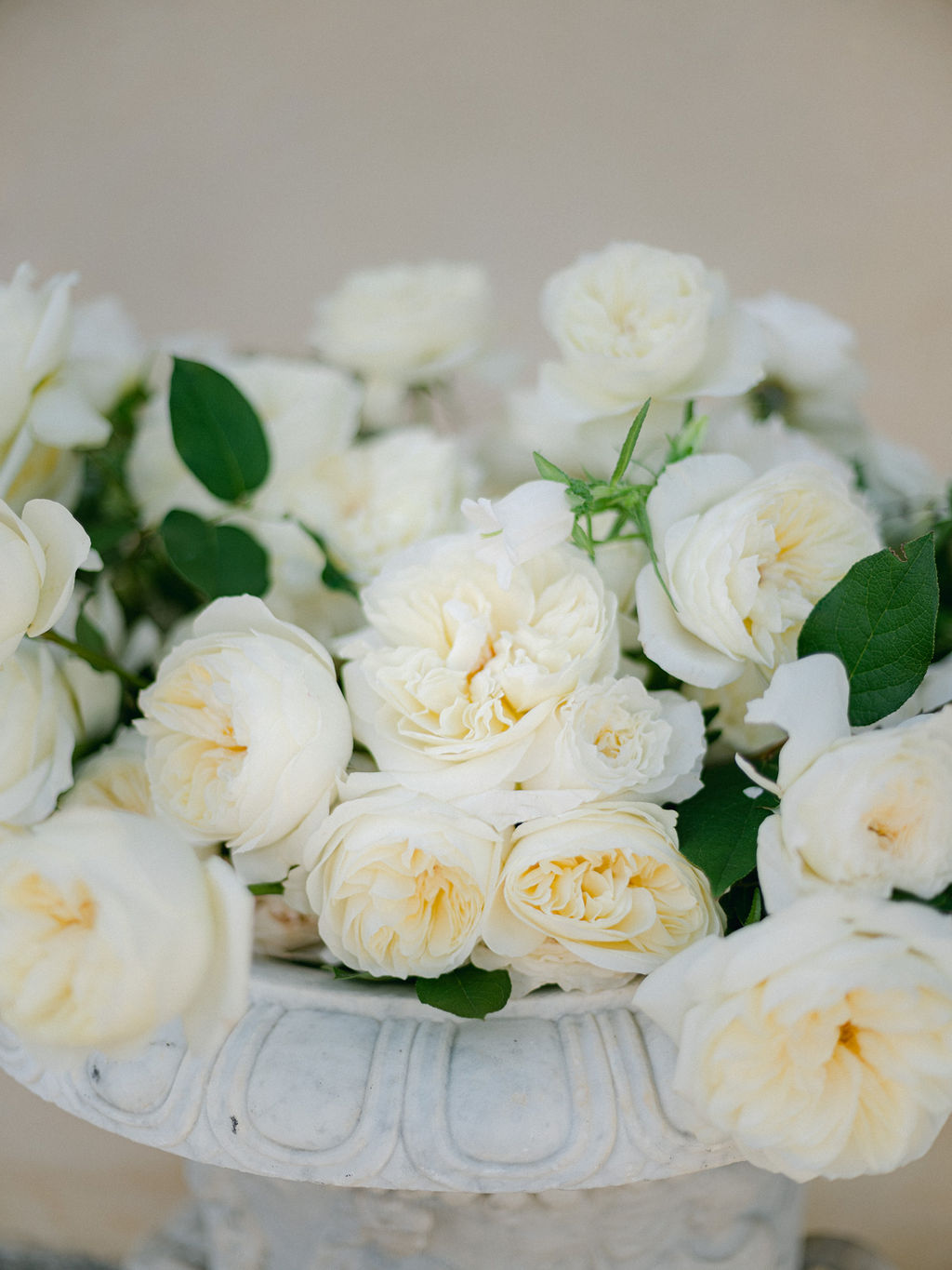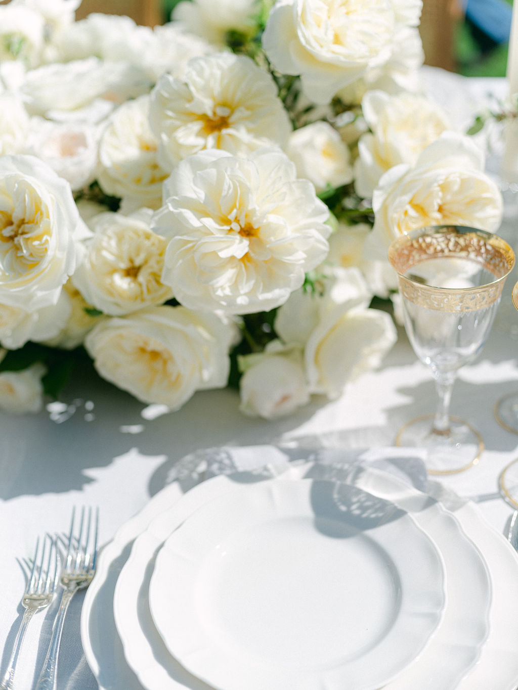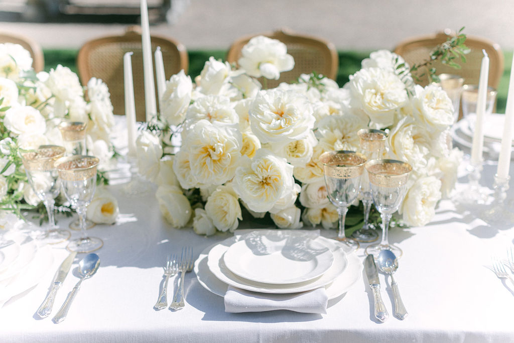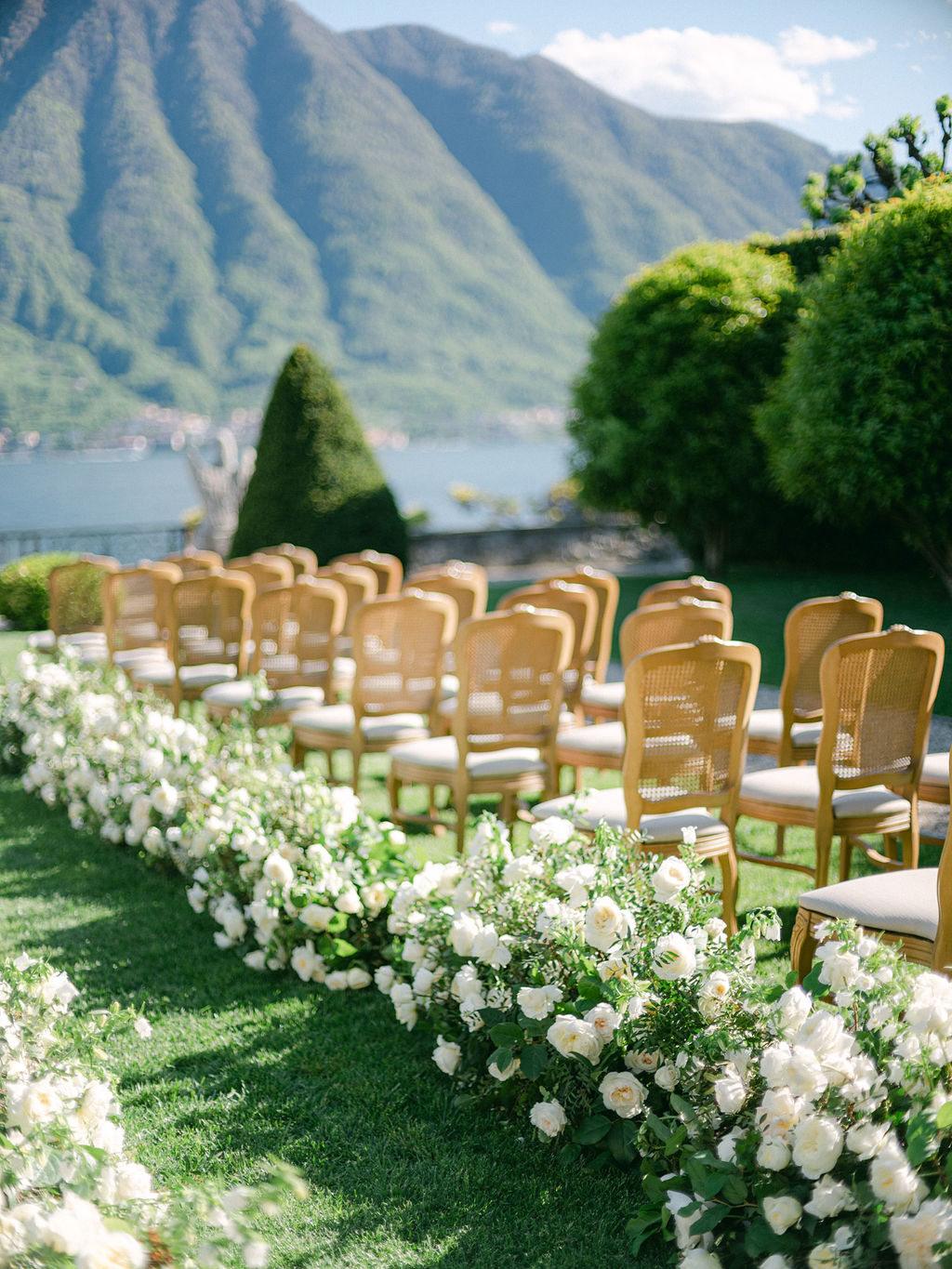 Les arrangements floraux de la Villa Balbiano mettaient en valeur les roses blanches David Austin, célèbres pour leur élégance intemporelle et leur parfum enivrant. Ces fleurs ont apporté une touche de grâce sophistiquée, renforçant harmonieusement l’atmosphère opulente du lieu.