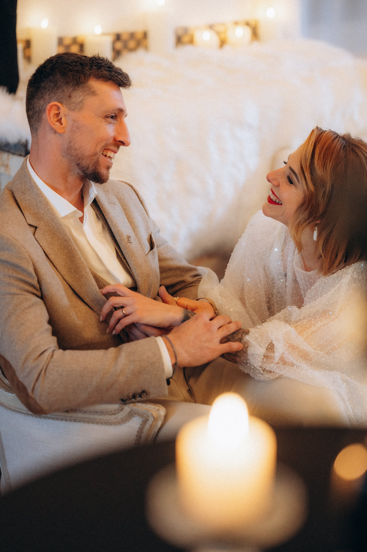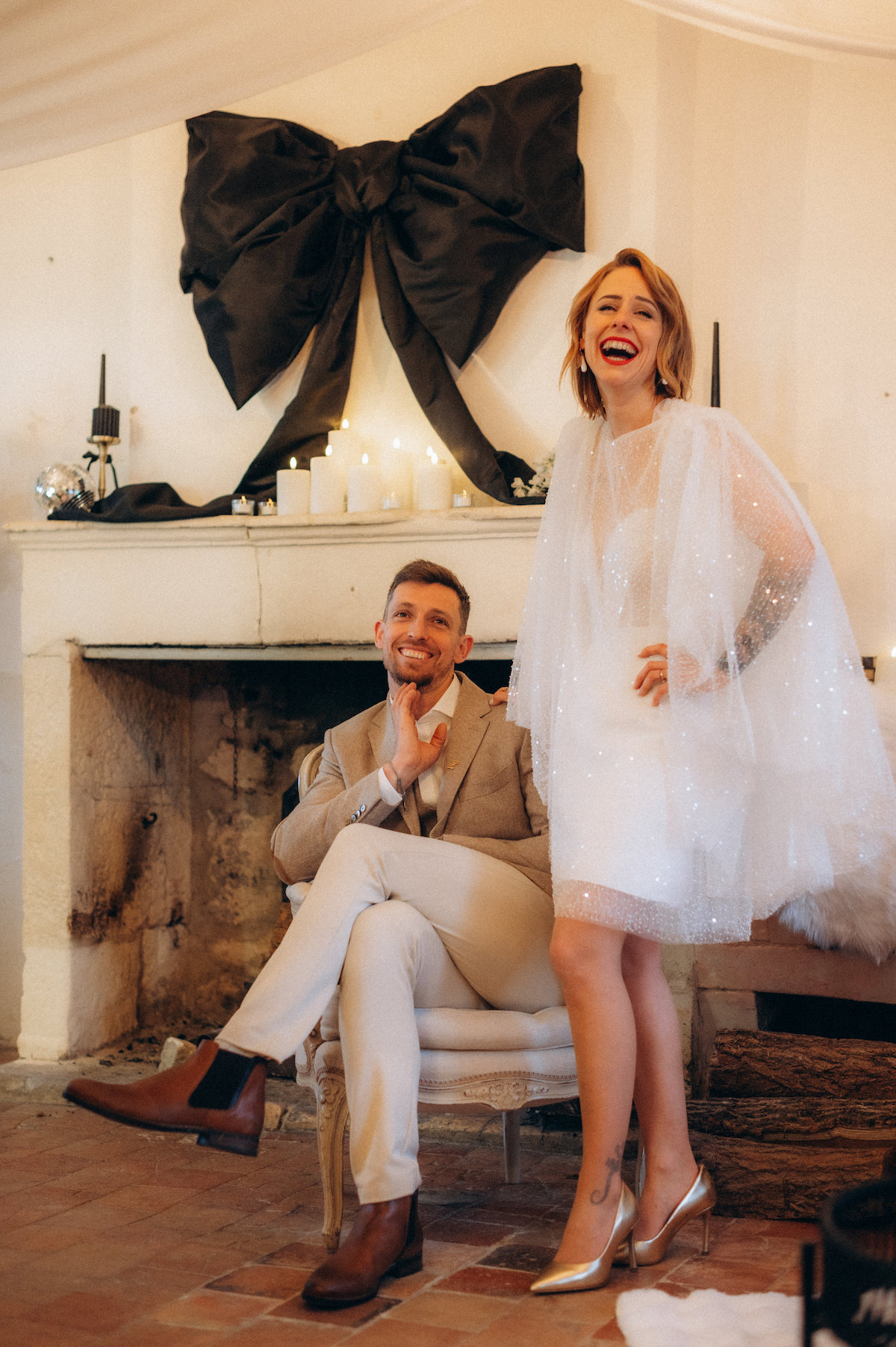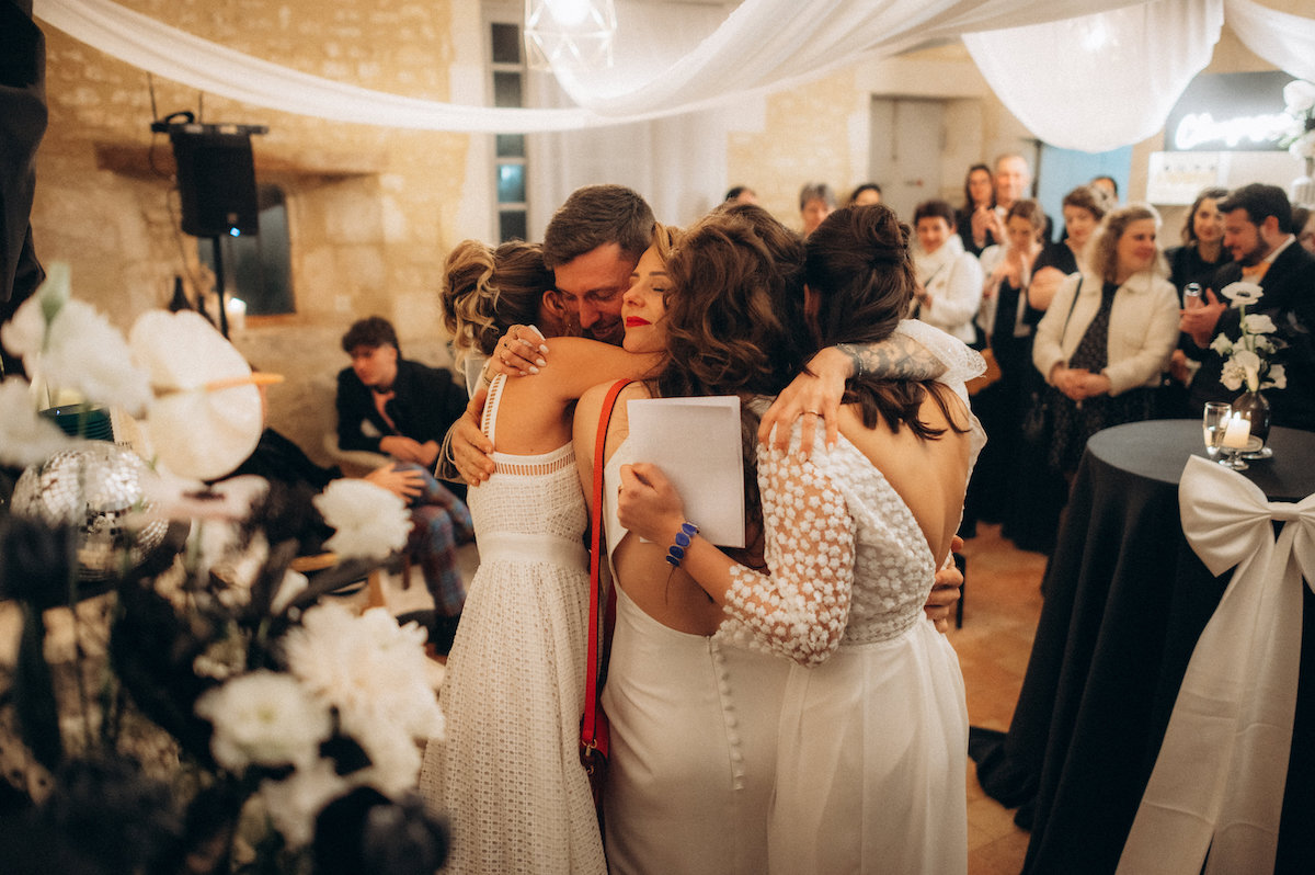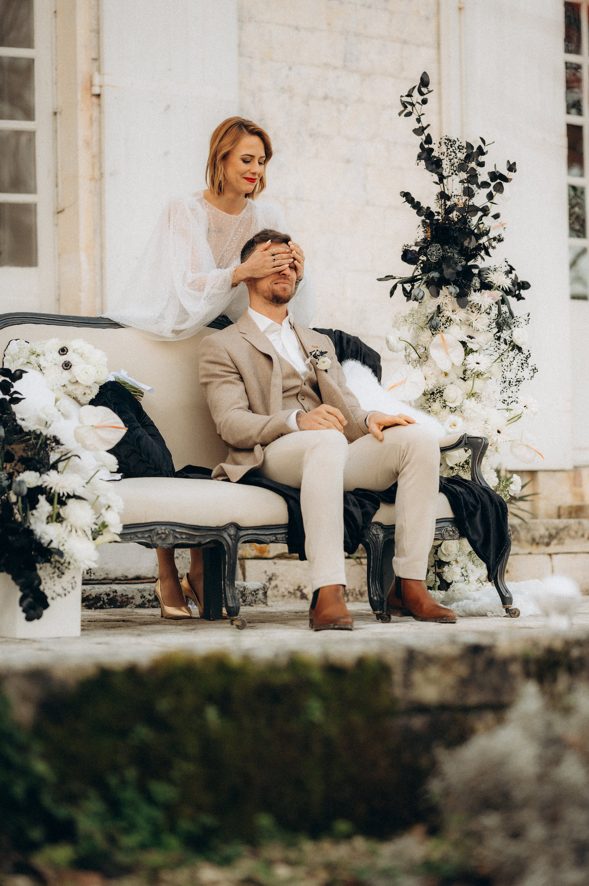 Propriétaires du Château de Mouillepied, amoureux de l’amour et habitués à raconter celui des autres, ils ont décidé qu’il était temps d’inscrire leur propre histoire dans les pierres, le noir et blanc, l’ombre et la lumière. Un mariage civil, moderne, symbolique, pensé comme un cadeau fait à leurs proches, et vécu comme le premier chapitre du reste de leurs vies.