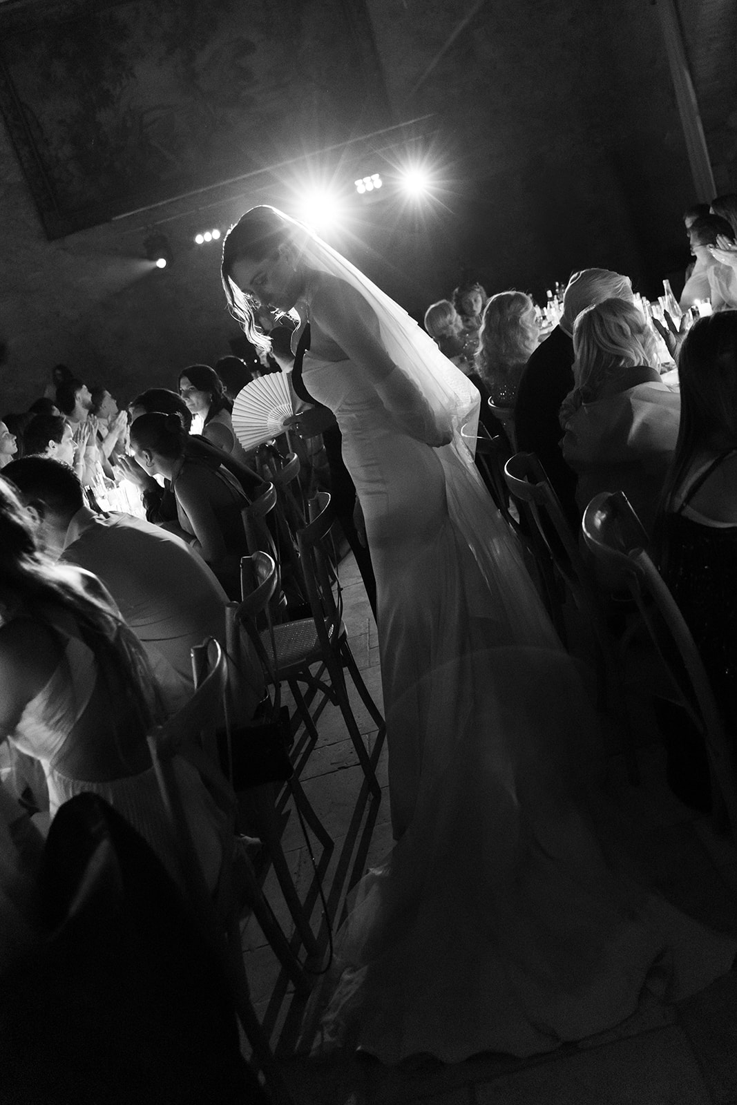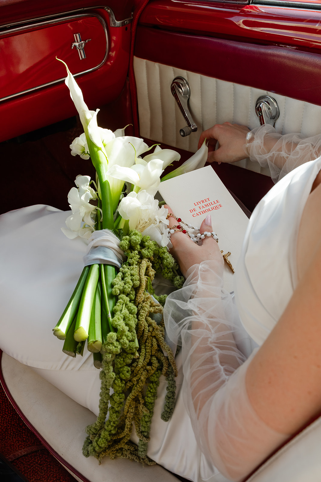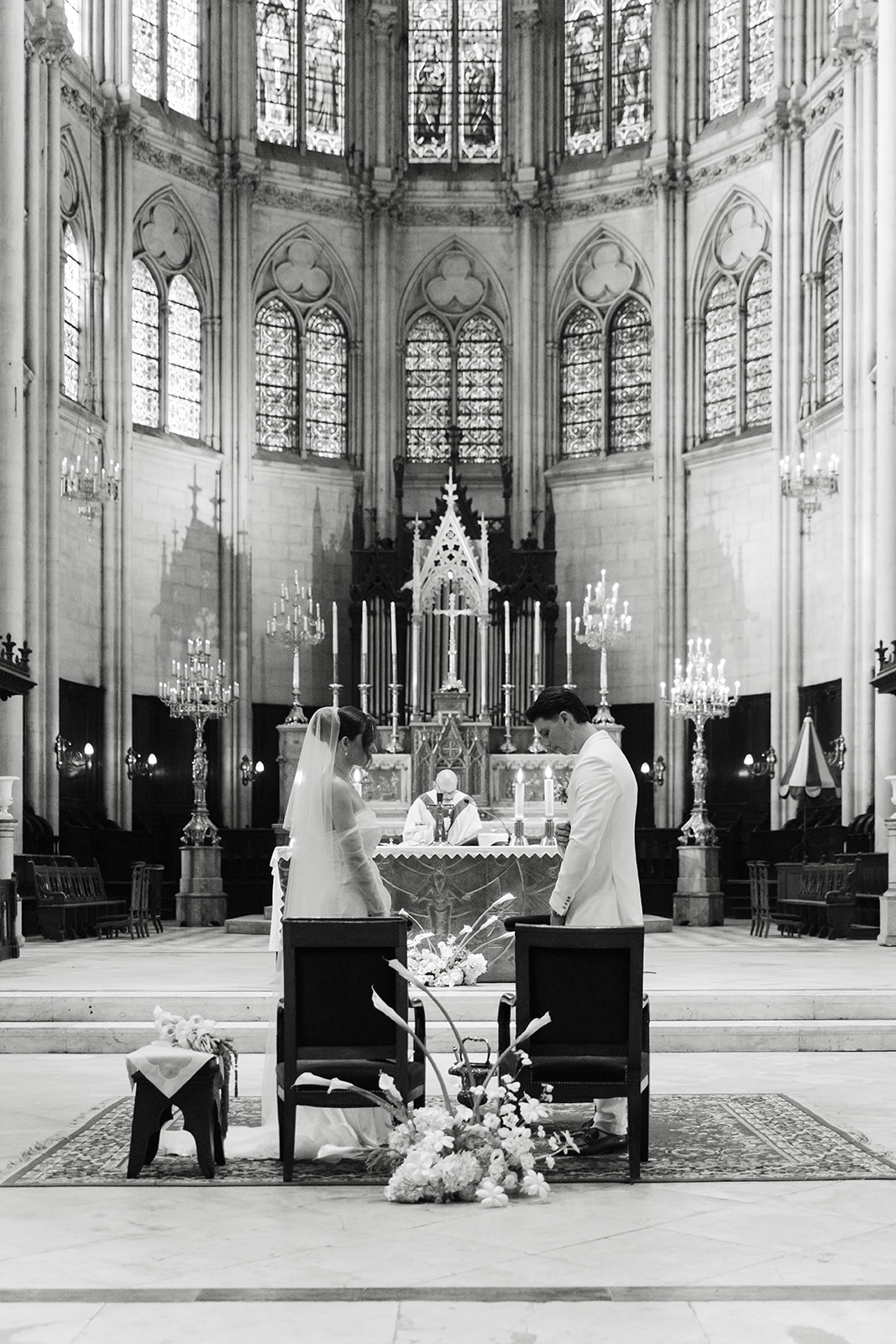 De mon côté, j’avais imaginé et dessiné ma robe de mariée couture, épurée et élégante, avec une longue traîne et un voile chapelle parfaitement aligné. Un second voile, intégré à la robe et partant juste en dessous des fesses, créait cet effet de cascade fluide qui apportait une touche très mode.