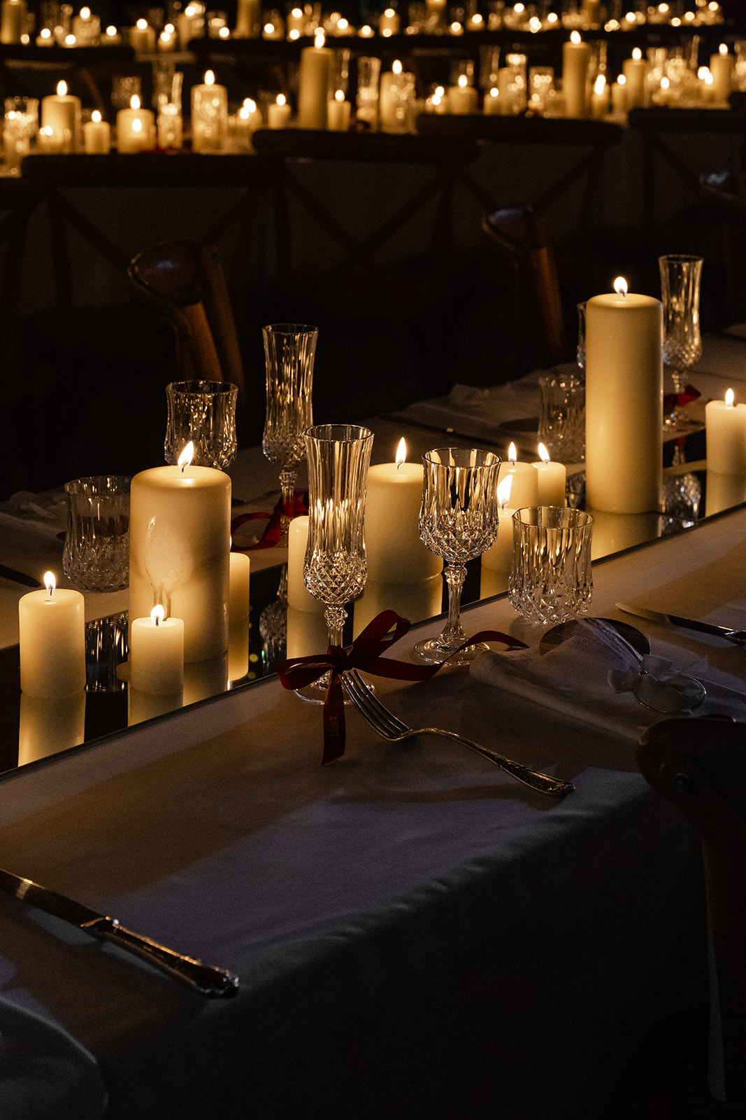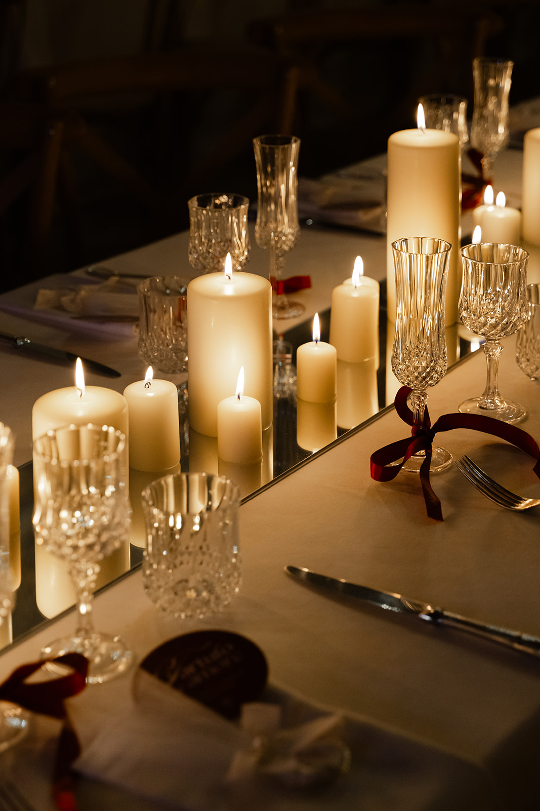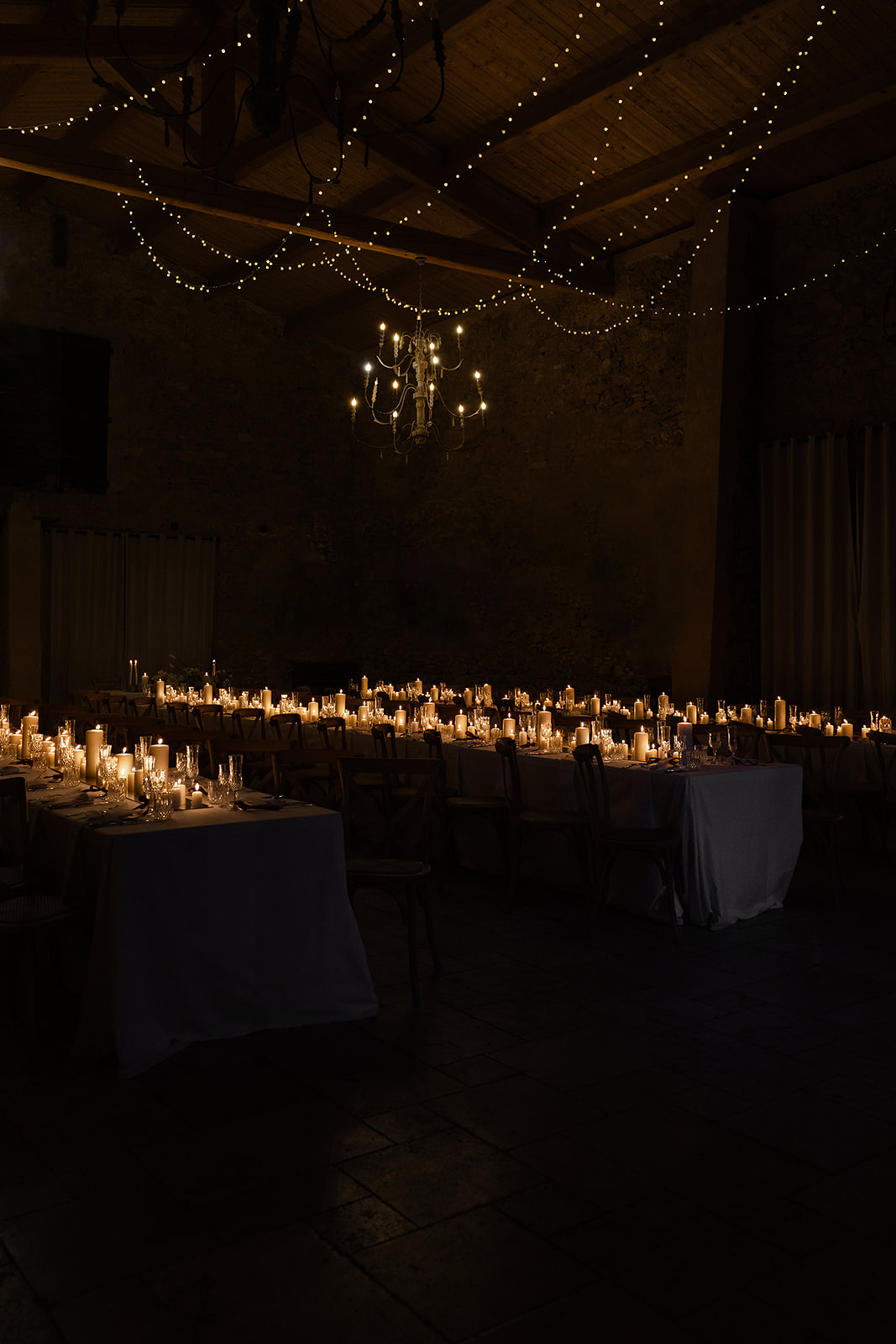 Les bougies ont joué un rôle essentiel : disposées en abondance, elles ont enveloppé tout l’espace d’une lueur dorée, créant cette atmosphère candlelight douce, intime et profondément chaleureuse.