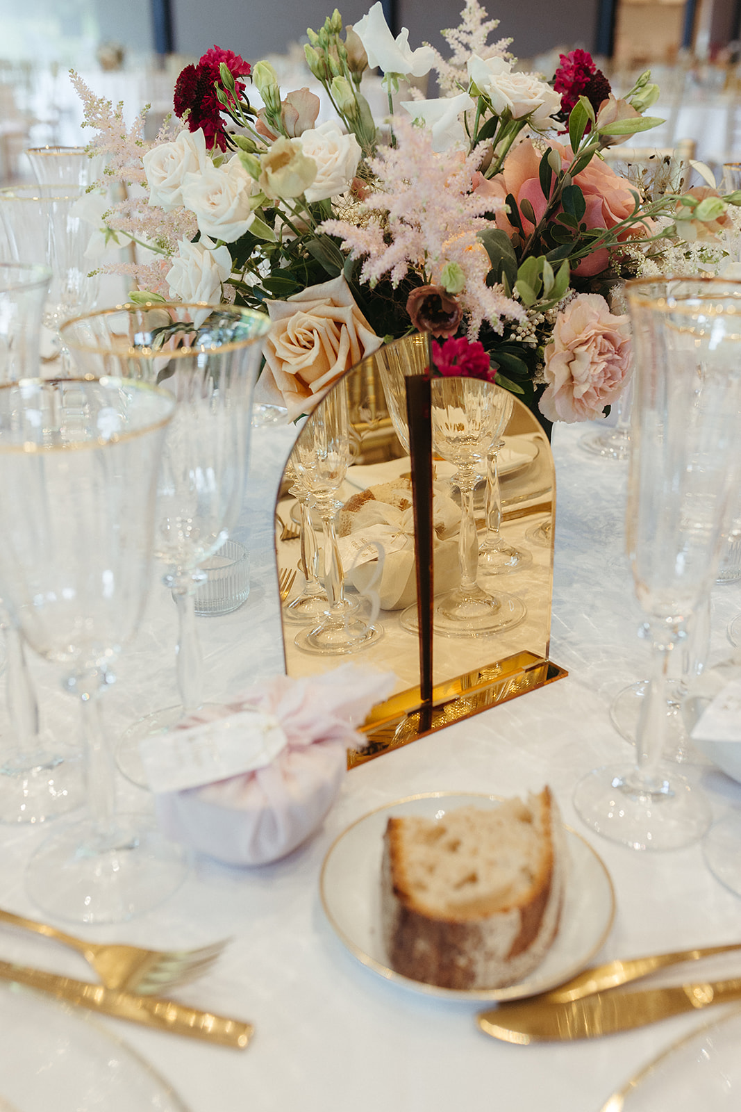 Pour le jour J, nous souhaitions une ambiance chic et élégante. Nous avons choisis des couleurs pastels en harmonie avec le blanc et le doré des éléments de décoration. Nous adorons les fleurs, du coup nous en avions mis un peu partout, dont de magnifiques colonnes de fleurs pour l’entrée de l’Eglise dans les tons pastels pour un rendu sobre et élégant, mais aussi une splendide arche en fleurs colorées pour un rendu plus dynamique.