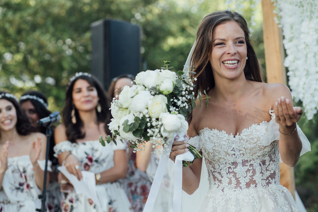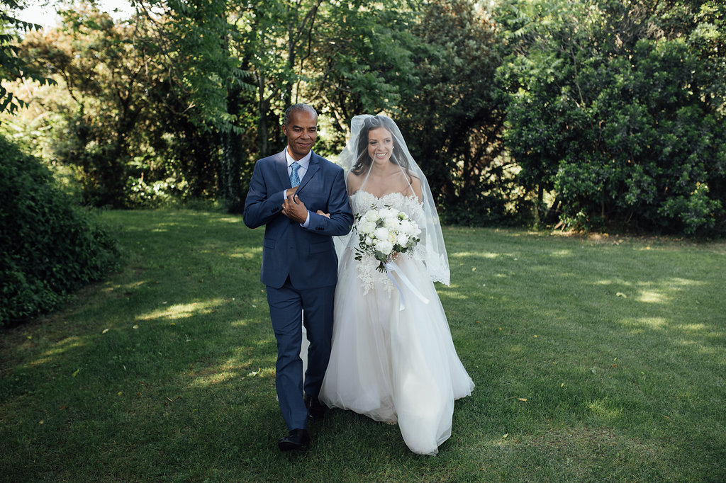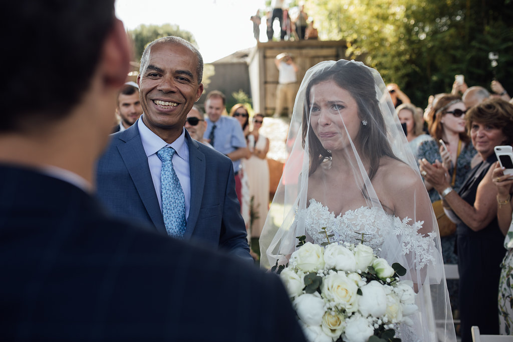 « Des moments de fête merveilleux, même le premier soir dans une ambiance de feu malgré une pluie battante ! Mais surtout, un moment de grâce lors de notre cérémonie oecuménique. Sous le soleil, à l’ombre des pins, un petit souffle de paradis. Nos larmes, ou plutôt nos sanglots lorsque nos yeux se croisent enfin à l’arrivée sous la houppa. Nos proches qui nous ont surpris de mille façons avec des discours intenses passants du rire au larmes. Nos amis Ariel et Arthur à qui nous avions demandé de jouer les maîtres de cérémonie, ont su transcender les valeurs communes à nos deux traditions Juive et Chrétienne pour n’en sortir que le meilleur. Cette cérémonie symbolisait pour nous l’union de deux êtres, mais aussi celle de nos diversités culturelles.Je crois que c’est bien notre meilleur souvenir, celui de me dire que notre rêve de bonheur fut partagé avec tous nos proches, car l’amour est universel lorsqu’il est sincère. Ni couleur, ni religion, juste le bonheur d’être ensemble. »