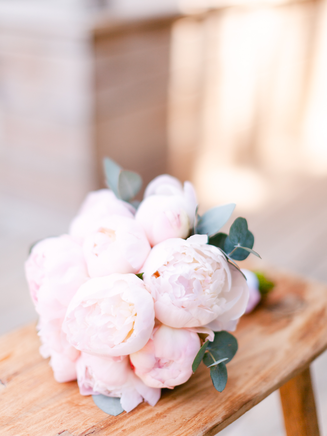 Les couleurs de la journée étaient plutôt naturels et romantiques, des compositions florales légèrement rosées avec des pivoines, de l’eucalyptus et du gypsophile pour une note plus fraîche.