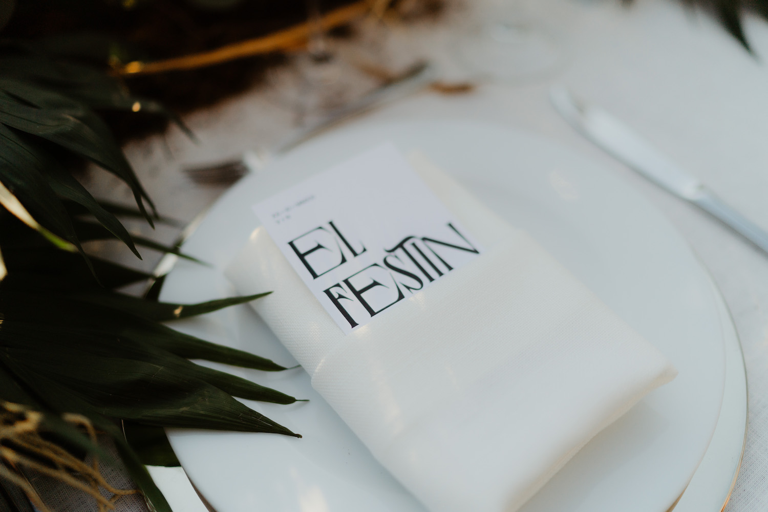 Nous avons commencé à planifier le mariage 8 mois avant la date. J’ai fait un croquis et un moodboard où j’ai inclus ma vision et toutes les références spécifiques à chaque instant, depuis le lieu, la décoration, la nourriture, l’éclairage, les fleurs… tout.
