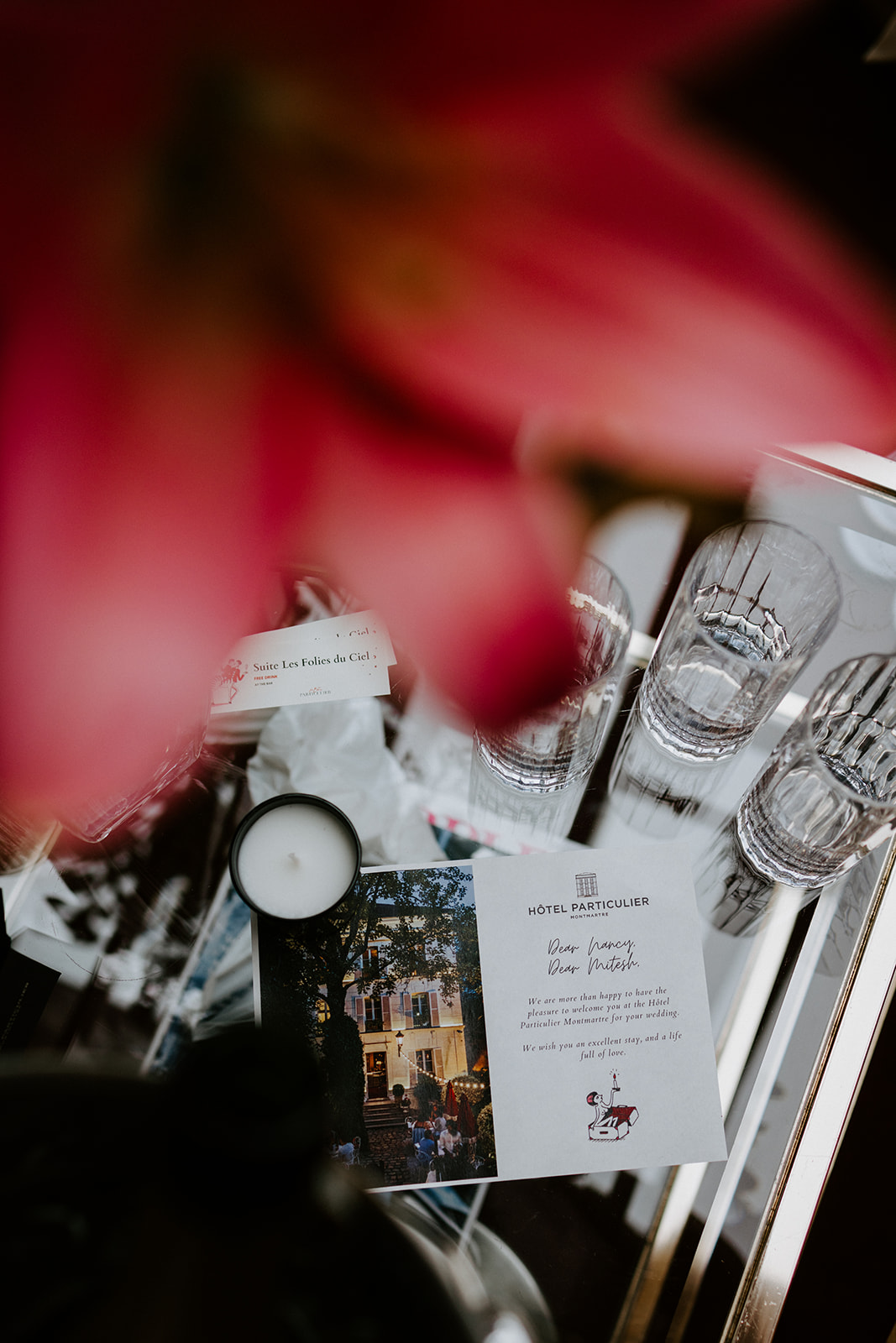 Paris était un lieu privilégié pour nous, car c’était notre premier voyage ensemble. L’Hôtel Particulier Montmartre était idéal pour le petit mariage que nous avions imaginé. Niché à Montmartre, au cœur d’un parc, on en oublierait presque qu’on est dans une grande ville.