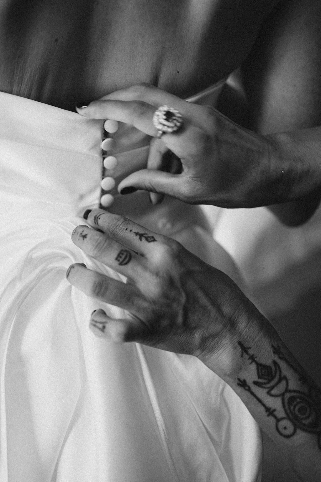 J’avais une image très claire de l’apparence que je voulais donner à ma robe et j’ai commencé ma recherche en ligne pour la trouver. Je me suis inspirée de la robe de mariée de ma grand-mère de la fin des années 1950. Elle l’a confectionné elle-même entièrement en soie. J’étais touchée par la beauté dans sa simplicité et sa structure.