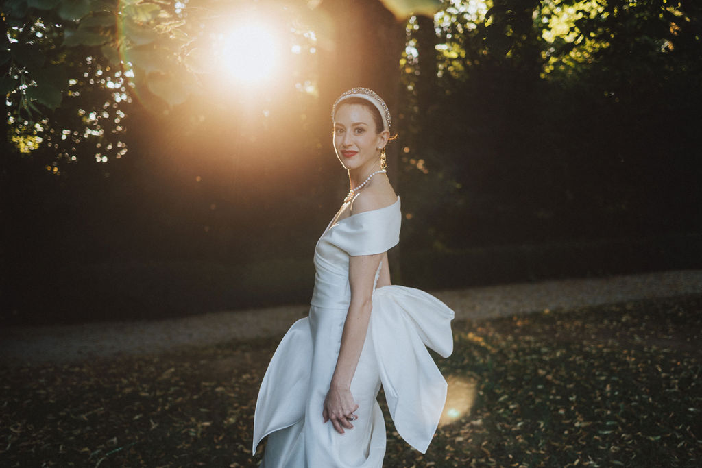Lors du choix de mes accessoires, j’ai également tenu compte de cette époque. Après avoir étudié les photos, les perles classiques étaient un choix évident. Mes chaussures ont été choisies parce que la fin des années 40 et 50 sont synonymes de Christian Dior. Et enfin Grace Kelly m’a inspirée le bandeau orné et le voile blush.