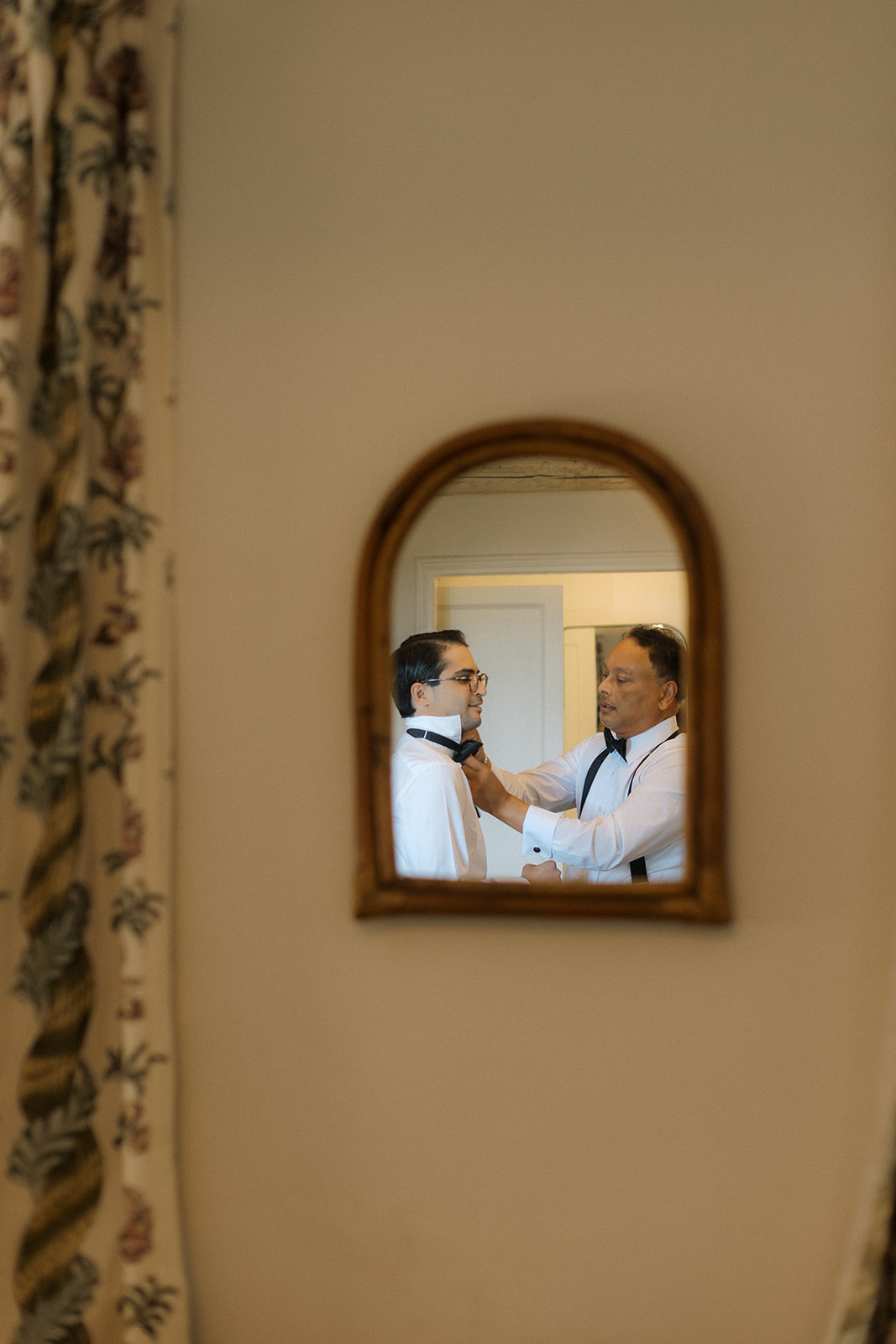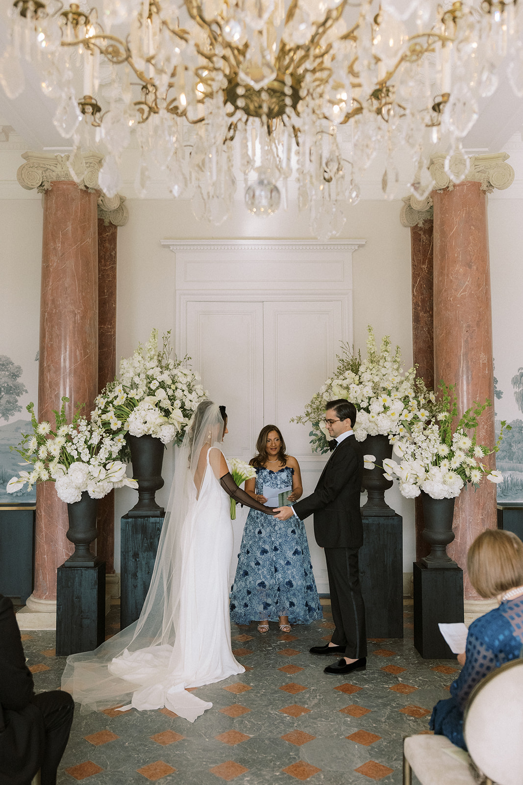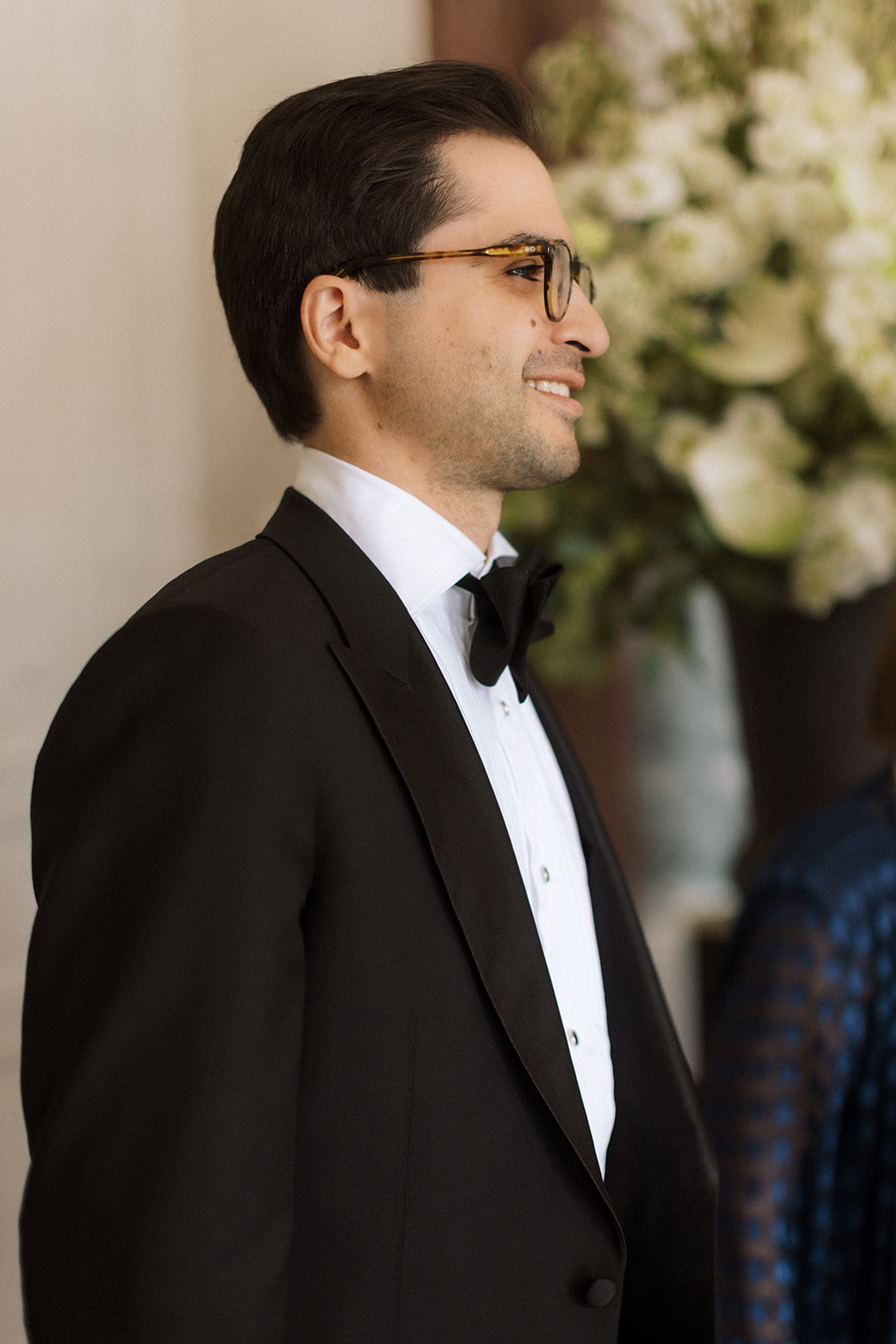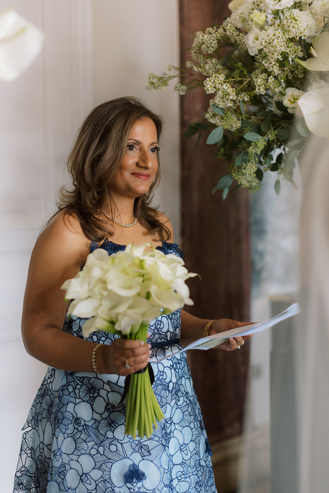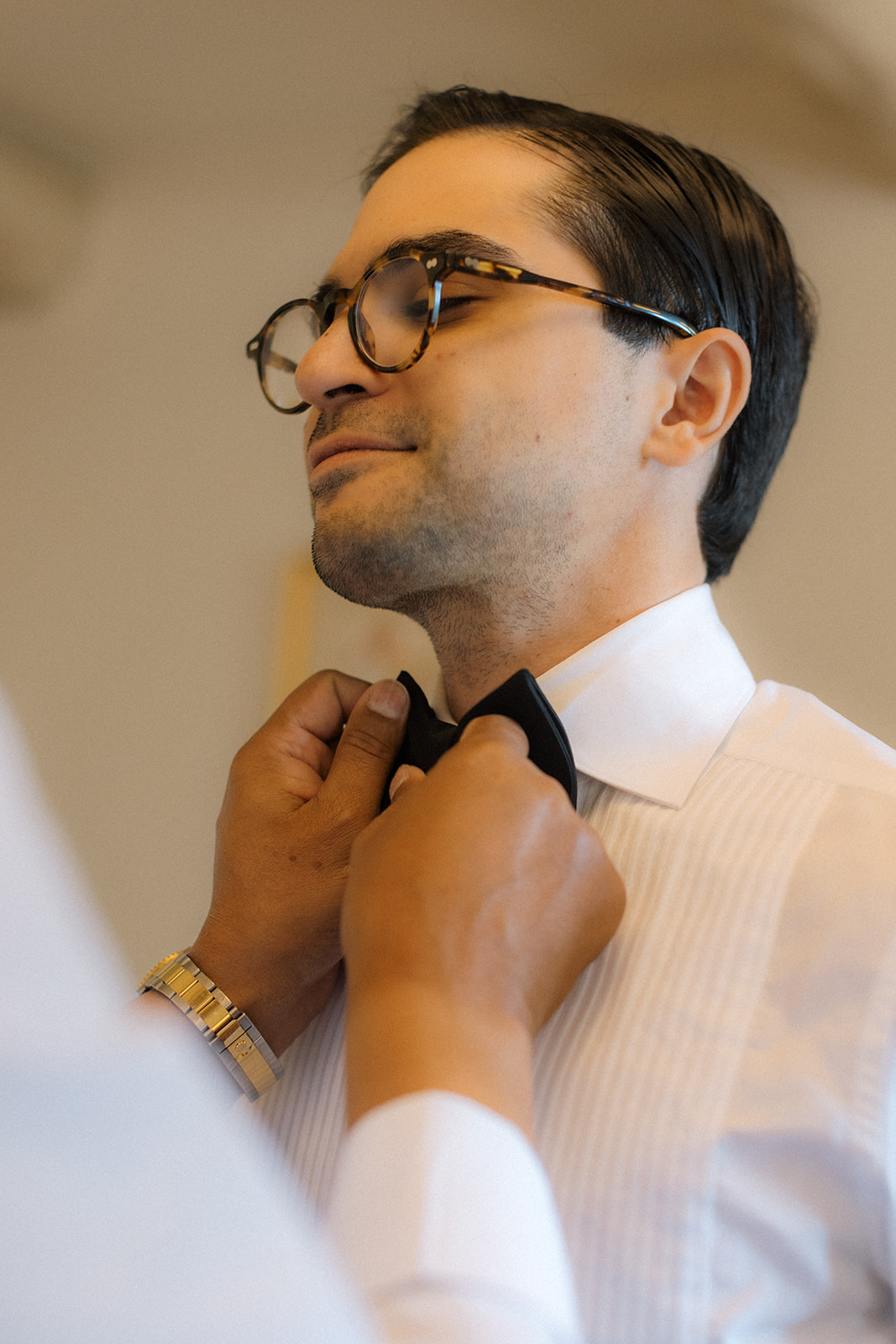 Grâce à elle, nous avons pu choisir le Château Martinay pour notre cérémonie intime. Bien que nous avions initialement prévu de nous marier près des cyprès, le temps en a décidé autrement et nous avons déplacé la cérémonie à l’intérieur du château. Celui-ci était, bien sûr, décoré avec un goût impeccable, si bien que cela s’est avéré être la solution parfaite. Nous savions que nous voulions faire nos photos de mariage dans le domaine du château, tant il était magnifique. Stéphanie nous a présenté notre photographe, Nina Wernicke, qui a su capturer la beauté de ce week-end – du dîner de répétition, aux préparatifs, jusqu’à la cérémonie et à notre petit cocktail et dîner festif qui a suivi. Nina et Stéphanie ont été toutes deux essentielles pour faire de ce week-end un moment aussi spécial pour nous.