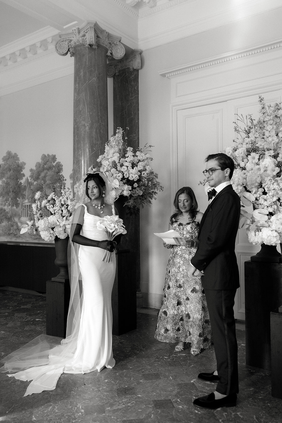 Pour les invitations, nous avons choisi un ensemble papeterie de mariage conçu par Minted en collaboration avec le Metropolitan Museum of Art. Une partie du motif présent sur l’invitation s’inspirait d’une estampe de l’artiste Jean Pillement (Chinoiserie, issue de la Nouvelle Suite de Cahiers arabesques chinois à l’usage des dessinateurs et des peintres).