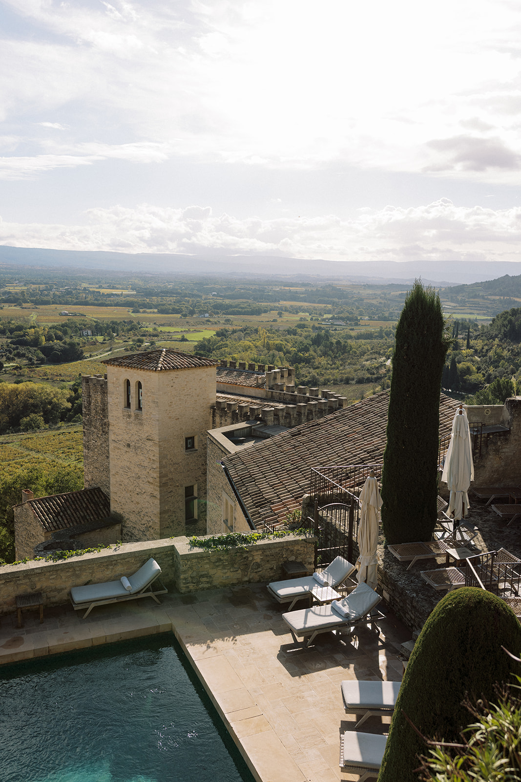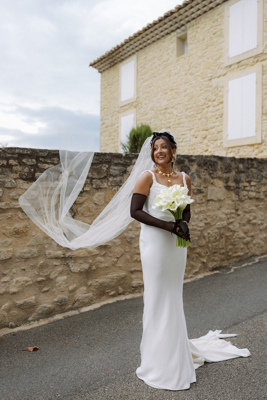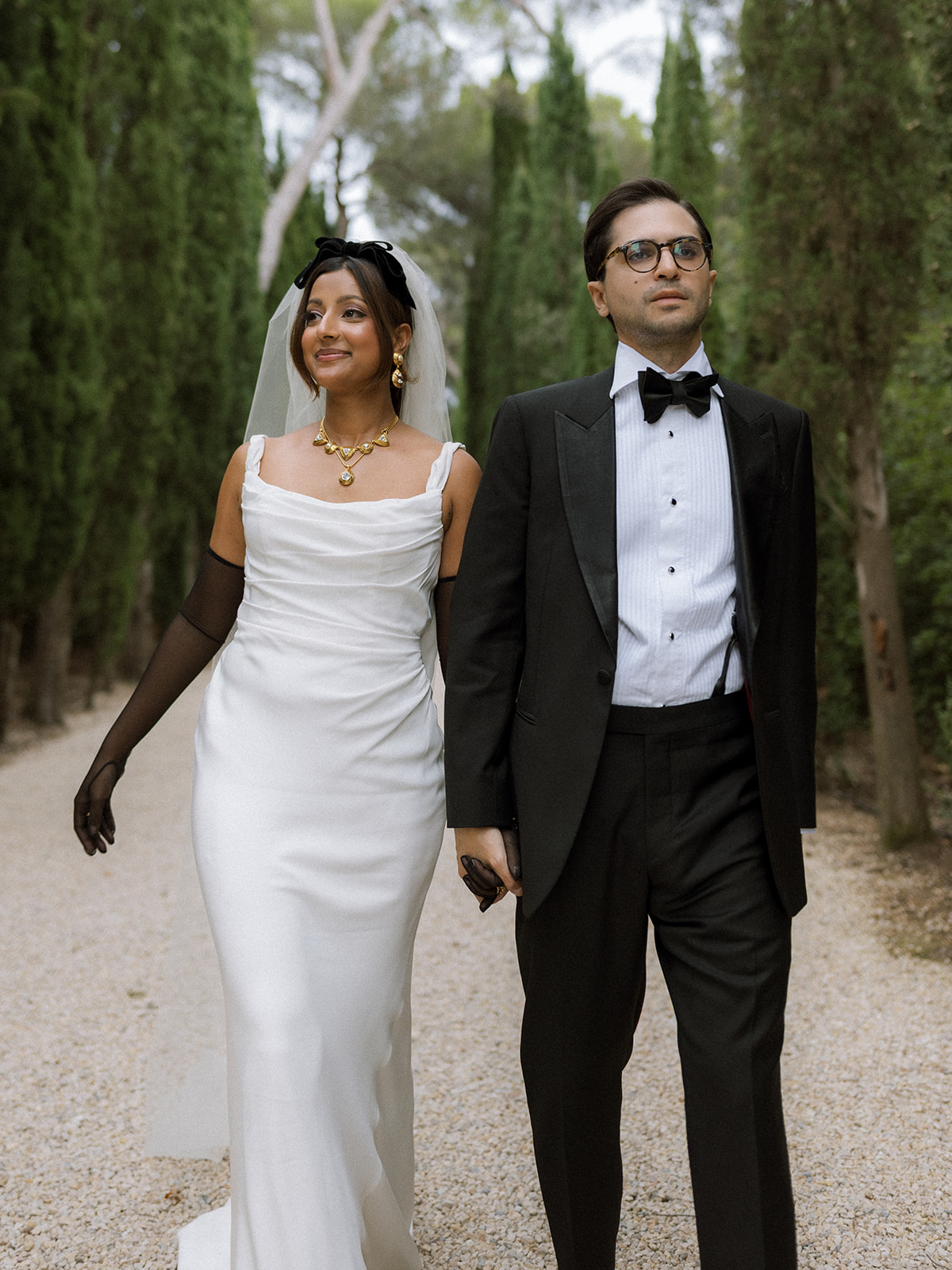 Kamron et moi savions dès le départ que nous voulions un mariage intime, uniquement avec notre famille proche. Nous avons d’ailleurs surnommé notre mariage un “elopement-plus”. Avec cette idée en tête, nous savions qu’un mariage à l’étranger était tout à fait envisageable. En fait, nos deux familles avaient déjà visité la France à plusieurs reprises, ce qui nous a paru parfait. Nous cherchions un endroit calme, mais dont les paysages se suffiraient à eux-mêmes. Notre choix s’est porté sur l’Hôtel Crillon-le-Brave, qui offrait une expérience de luxe intimiste. C’était encore mieux que ce que nous avions imaginé. Kamron et moi n’oublierons jamais notre réveil face aux magnifiques paysages d’automne de la Provence.