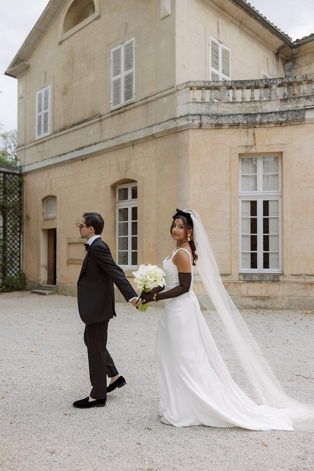 C’est dans ce décor de rêve que Rachel et Kamron ont choisi de sceller leur union, loin du tumulte, dans l’intimité chaleureuse de leurs proches. Leur vision : un mariage simple, sincère, empreint de raffinement et d’authenticité — ce qu’ils ont joliment appelé un « elopement-plus ». Entre le charme discret de l’Hôtel Crillon-le-Brave, la majesté du Château Martinay, et l’atmosphère feutrée d’un automne provençal, chaque instant de ce week-end a été pensé avec soin.
