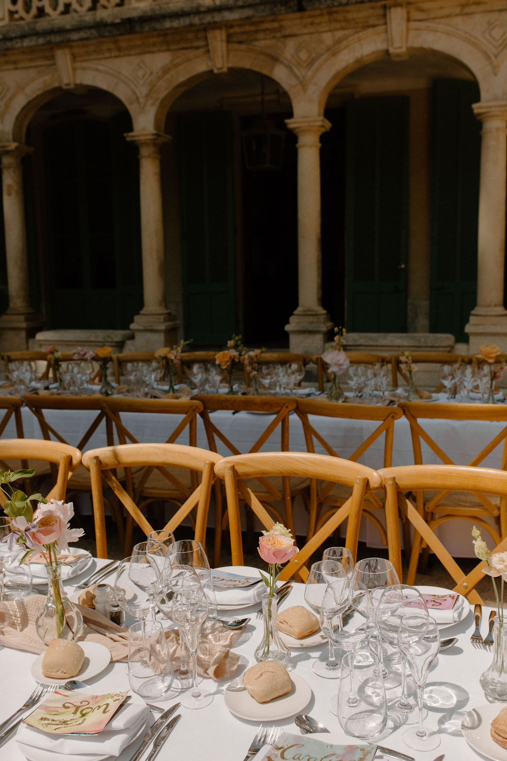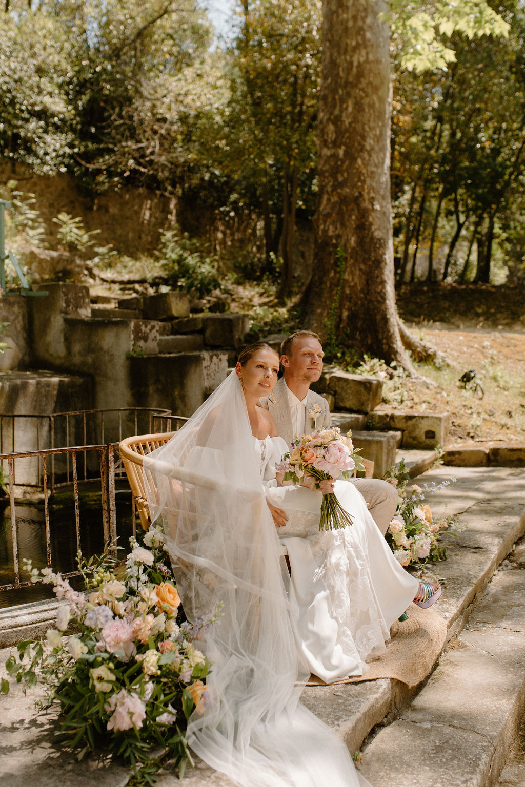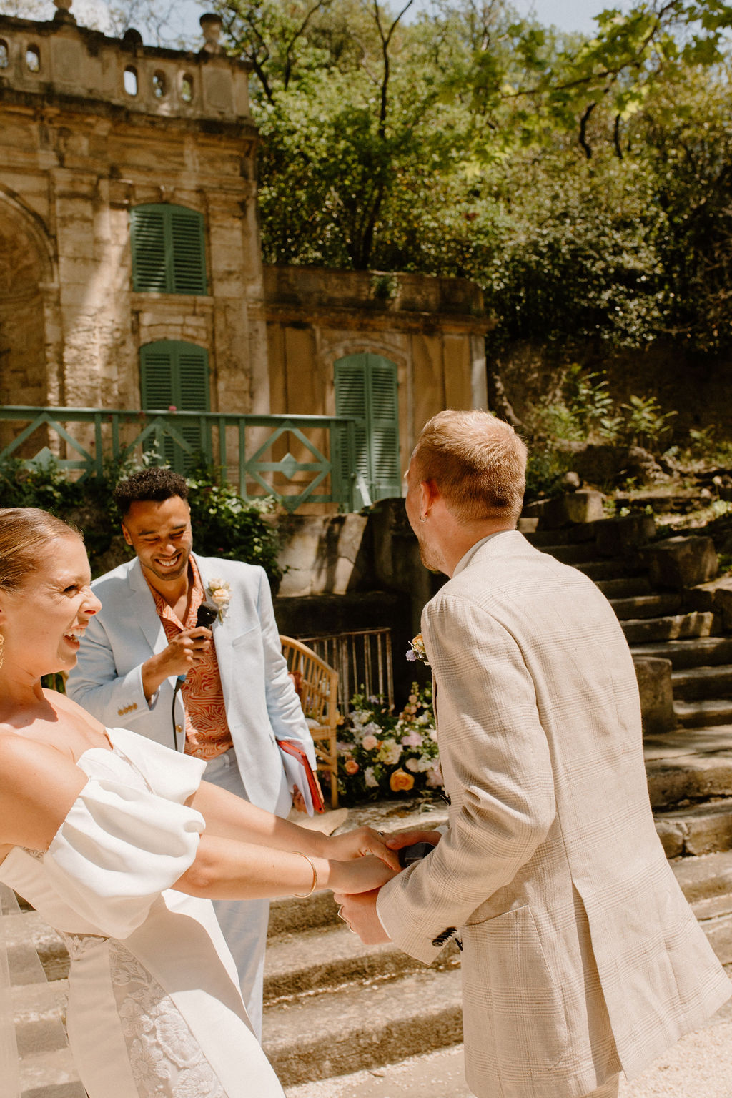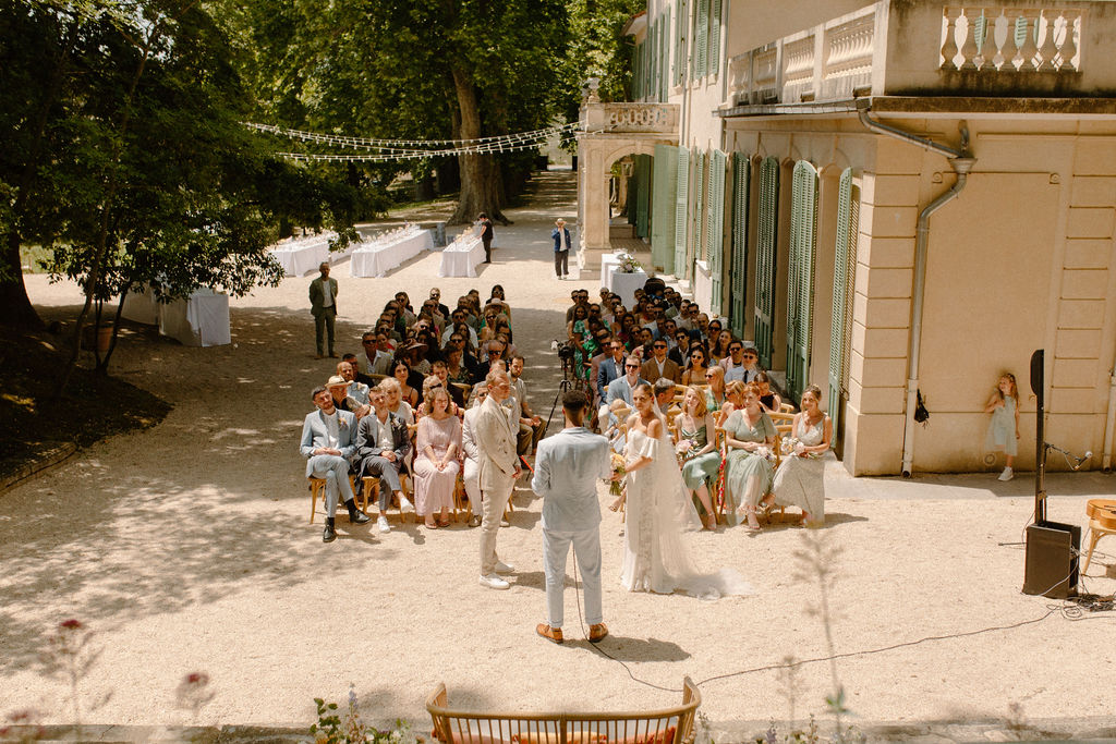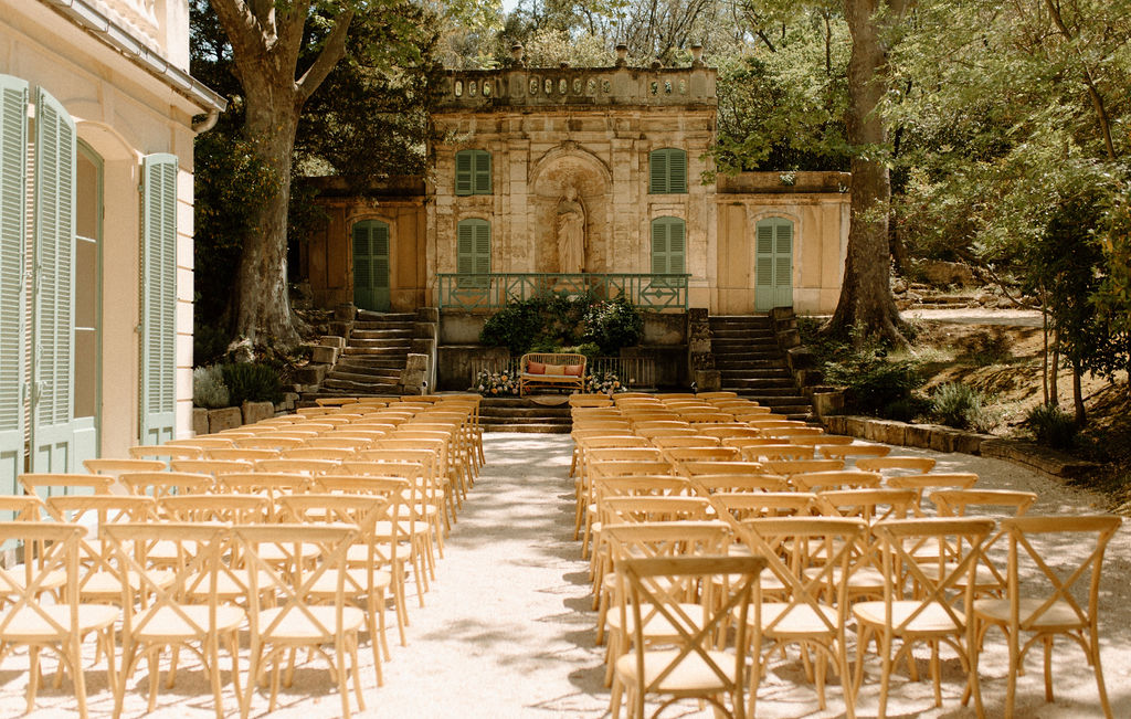 Nous avions à coeur de nous marier à Marseille et nous souhaitions rester proches de la ville. Au départ, nous avions essayé de trouver un lieu en bord de mer mais lorsque nous sommes entrés dans La Bastide de Toursainte, nous avons été impressionnés. Je n’avais jamais vu un lieu de mariage aussi beau où chaque détail était pris en compte : des ruines du jardin aux chambres. J’ai aussi adoré l’intimité du terrain, nous pouvions organiser une cérémonie, prendre un verre, dîner et danser dans différentes parties de l’espace sans jamais avoir l’impression d’être séparés.
