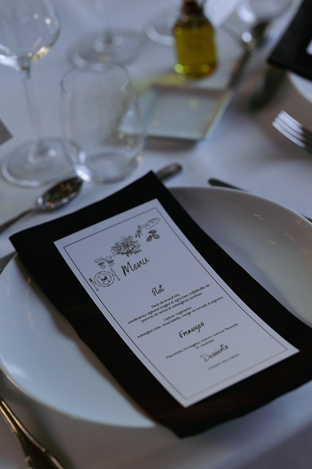 Le gros défi a été de trouver un traiteur correspondant à nos attentes « gourmets », incluant un menu végétarien. Nous voulions également que la nourriture reste locale, mais représente également notre parcours de vie (à l’étranger).