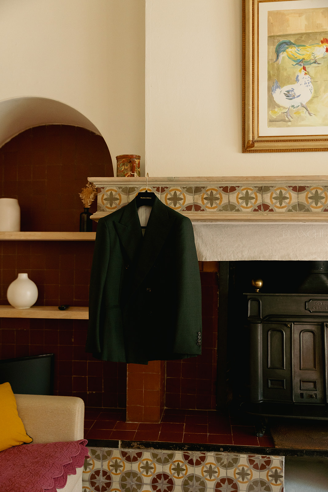 Pour le costume, il a d’abord fallu choisir le bon tissu avec la bonne couleur (vert forêt), et enfin la coupe.