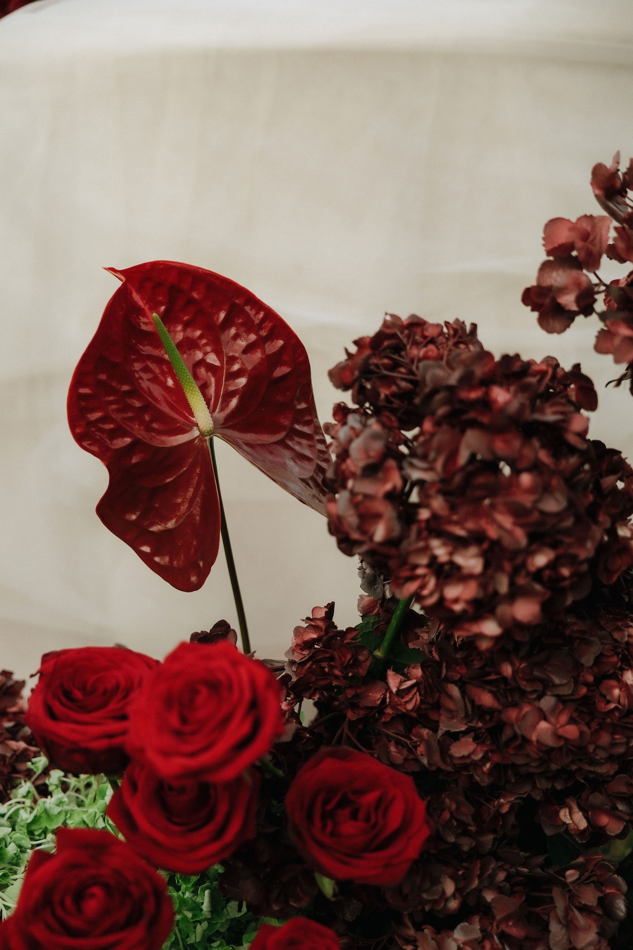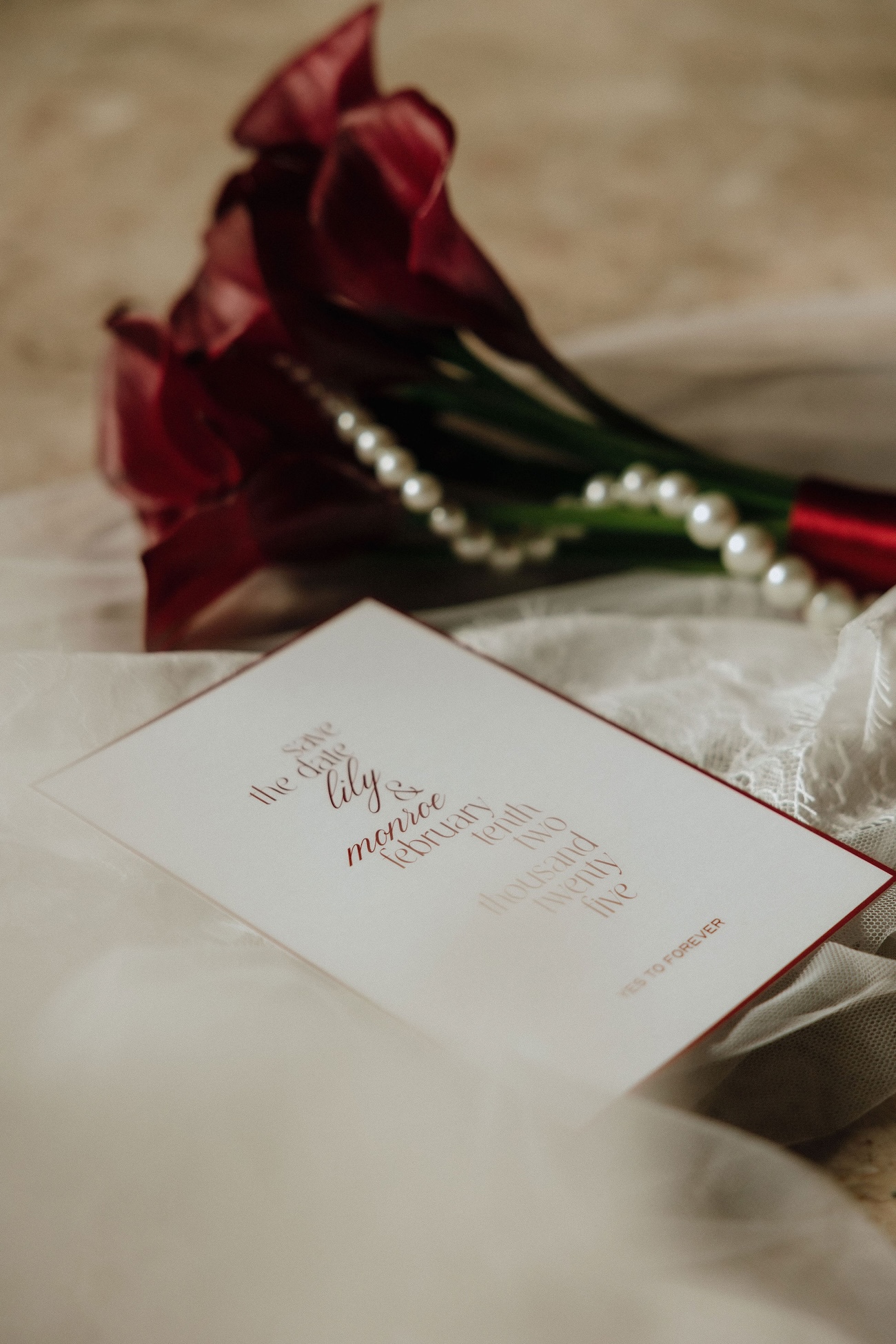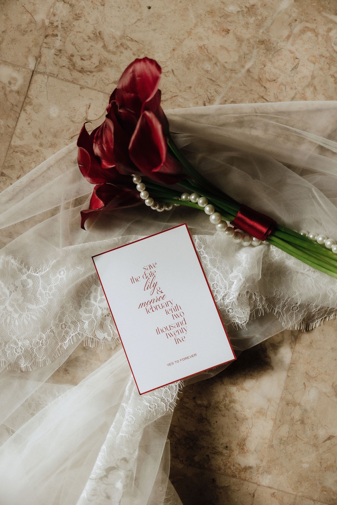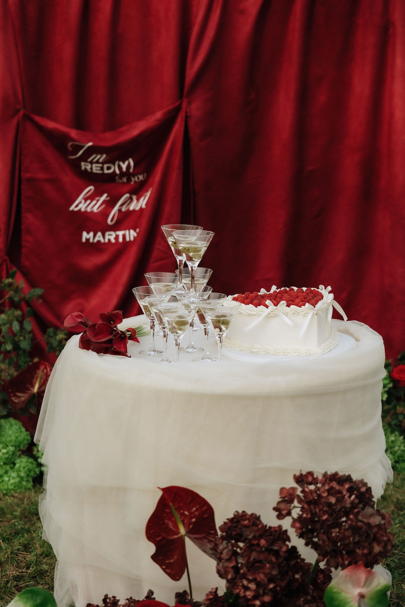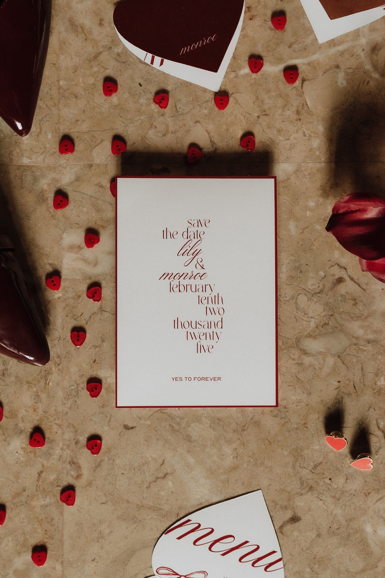 L’inspiration de ce shooting est née autour d’une couleur forte et tendance dans l’univers du mariage : le rouge bordeaux profond. Nous voulions l’exploiter de manière élégante et moderne, en l’associant à un symbole puissant et romantique : l’As de Cœur. Ce fil conducteur nous a guidés dans chaque détail, de la scénographie aux choix floraux, en passant par les textures et les éléments graphiques.