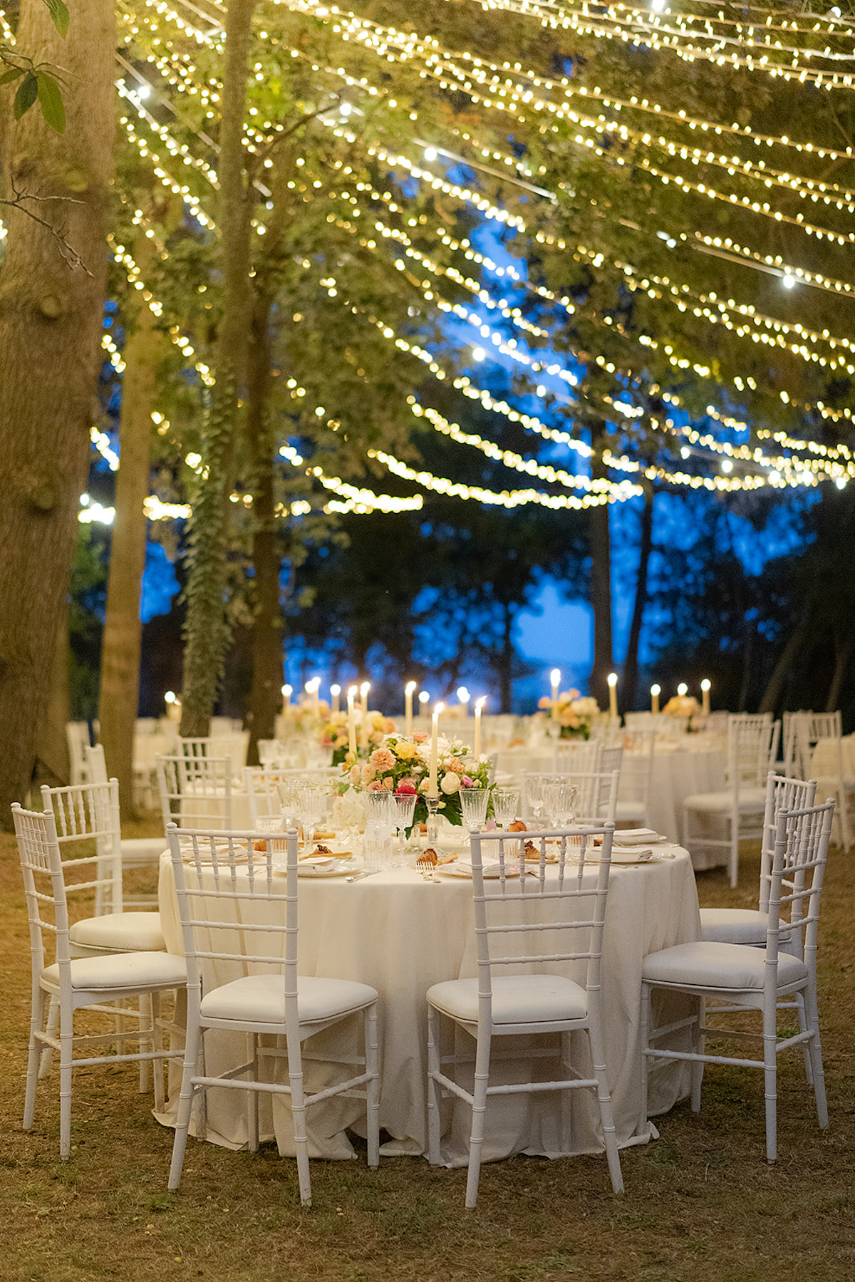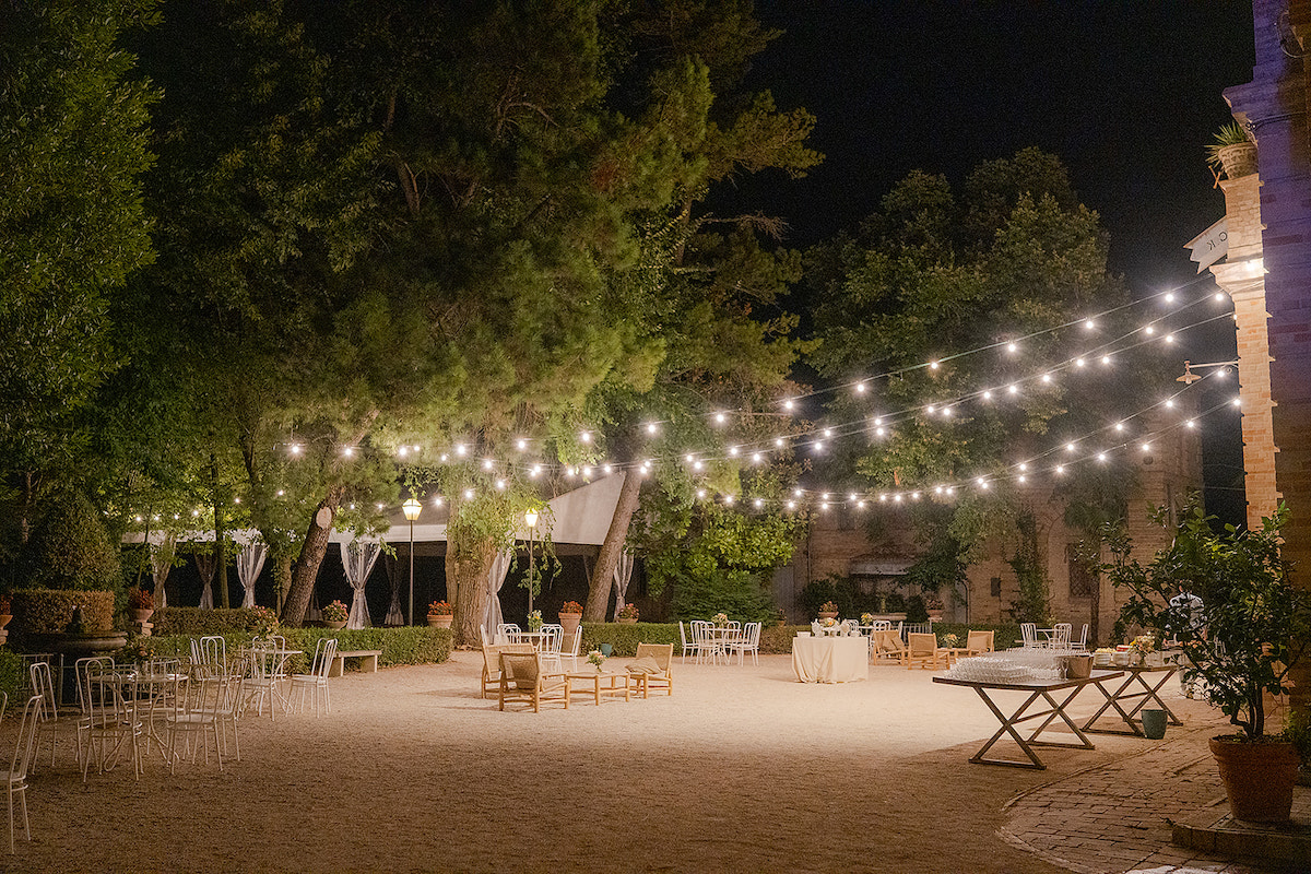 Le décor enchanteur de la Villa Koch a offert un écrin hors du temps à cette journée d’été, sublimée par une scénographie raffinée pensée avec Loving Marche. Sous les arbres centenaires, à la lueur des bougies et des guirlandes, l’amour s’est exprimé en nuances élégantes et colorées, capturé avec poésie par Paolo Manzi.