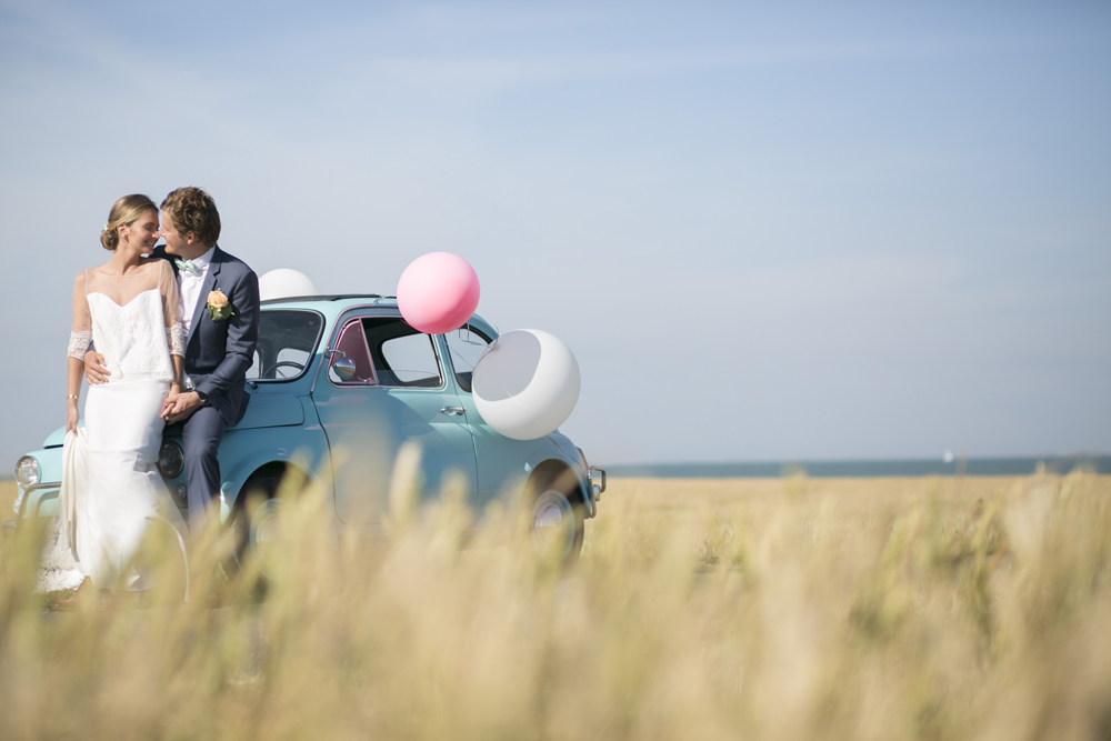 Se marier sur l’île de Ré a toujours été une évidence pour nous. Très attachés à cette île, Olivier a grandit là bas et moi j’y ai passé toutes mes vacances depuis toujours. C’est aussi là que notre histoire a commencé. Nous avions repéré depuis plusieurs années le Fort de la Prée, un lieu magique avec une vue incroyable sur la mer.