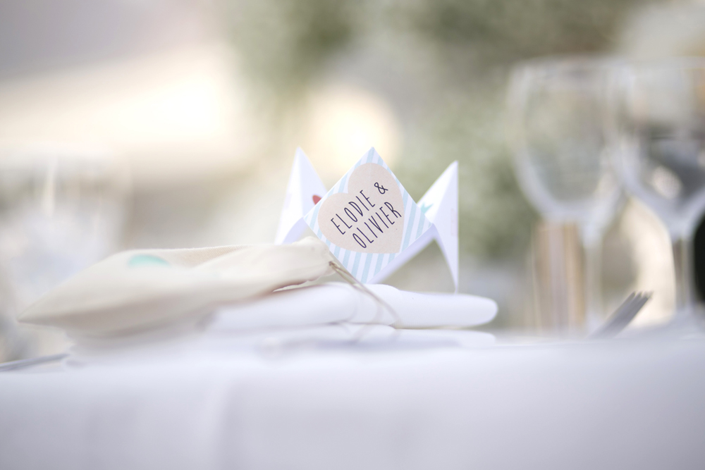 Pour la déco, j’ai passé des heures sur Pinterest et sur les blogs. J’ai adoré parcourir le site etsy.fr pendant des heures le soir … L’objectif était de fabriquer le plus de choses par nous-mêmes et nous avons pu compter sur l’aide précieuse de nos témoins qui ont passé des heures à plier, découper…