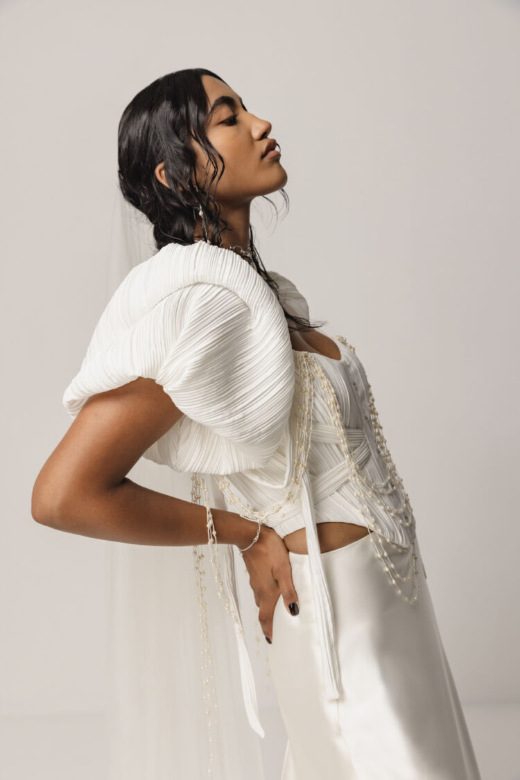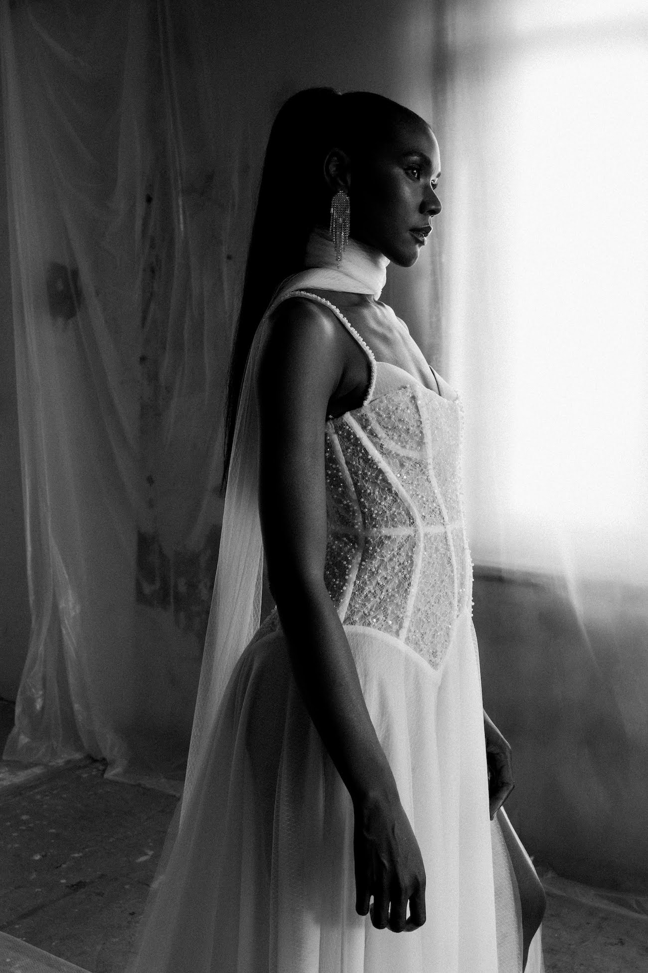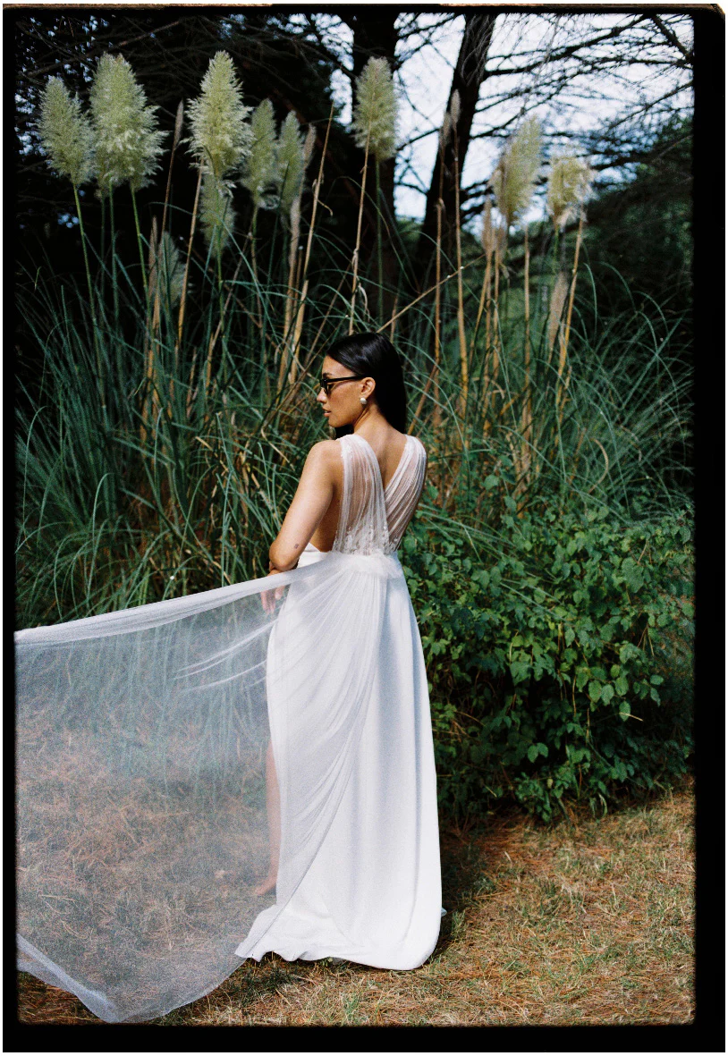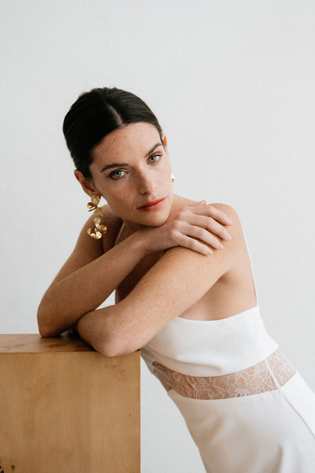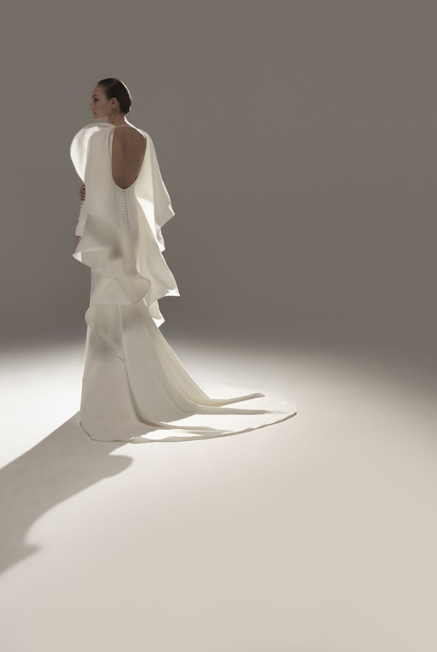 GREJ Modern Bride s’adresse à des mariées qui cherchent à s’éloigner des modèles classiques pour adopter une robe à la fois chic et minimaliste, tout en mettant en avant la féminité et l’audace.