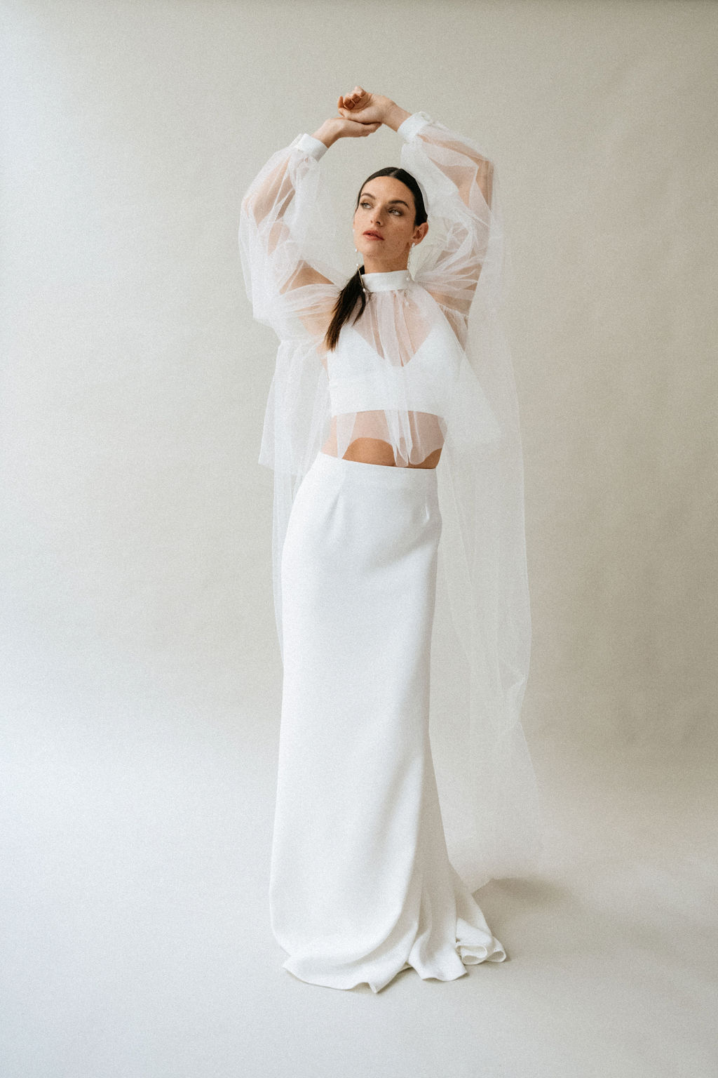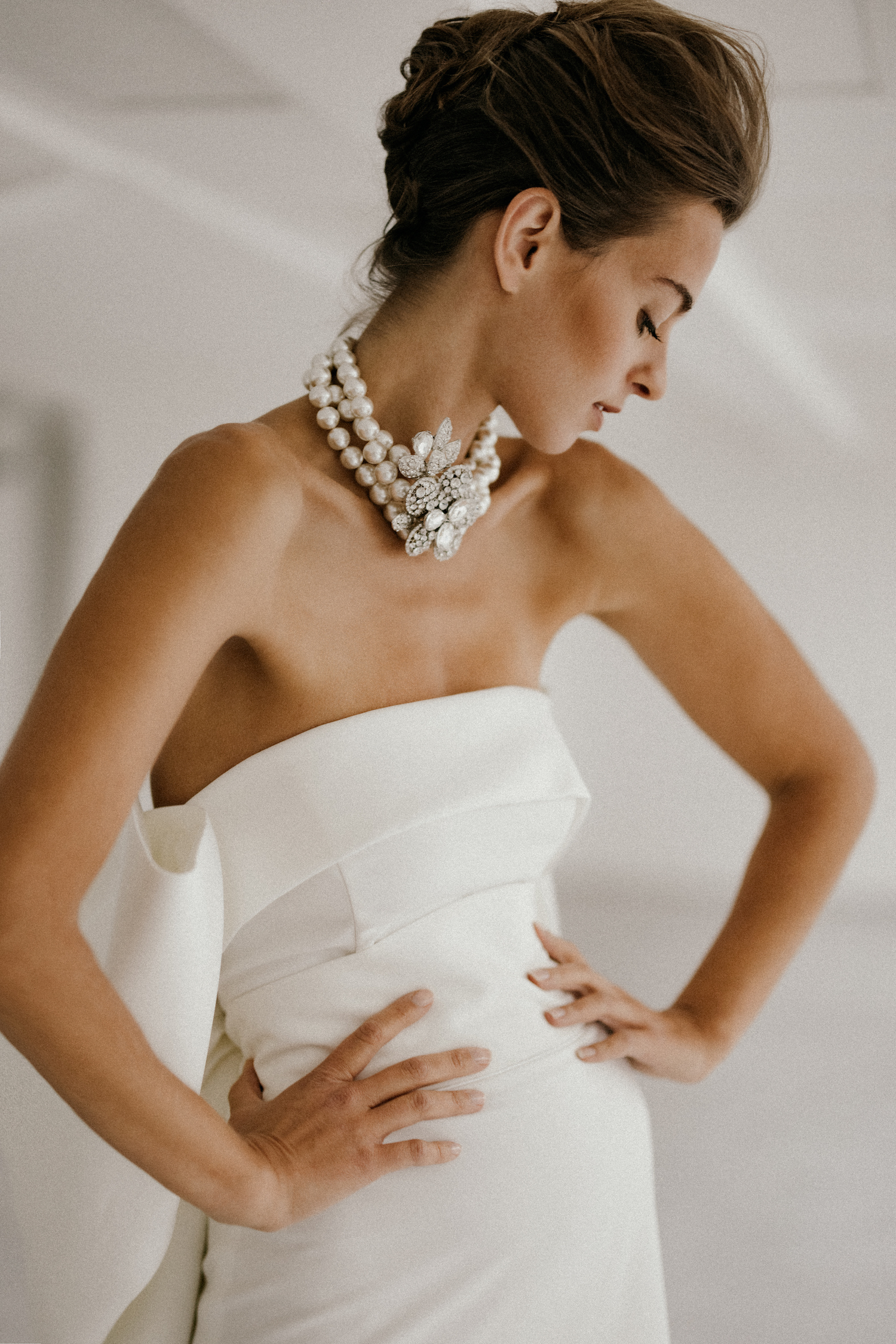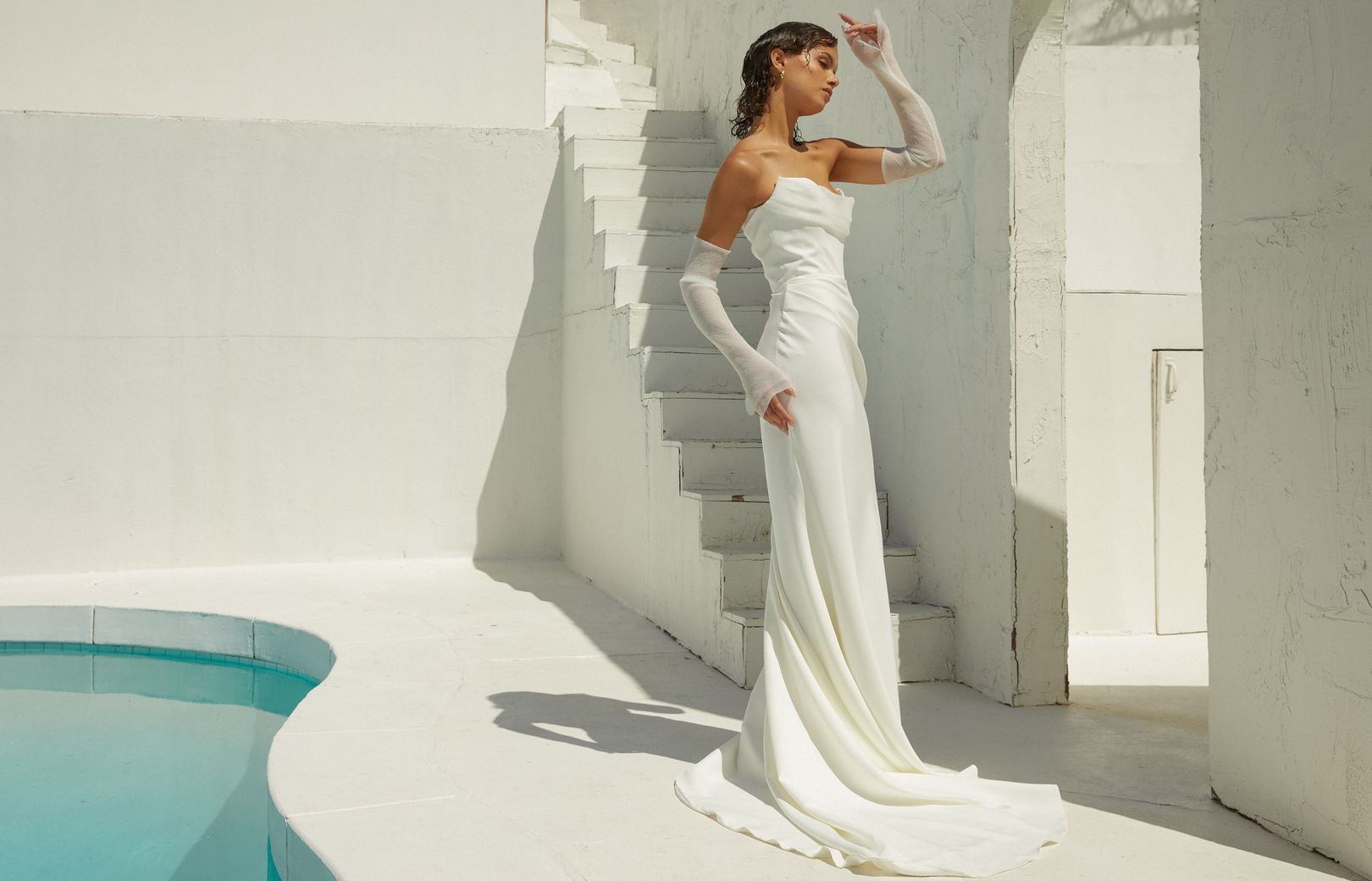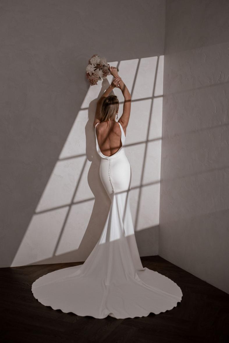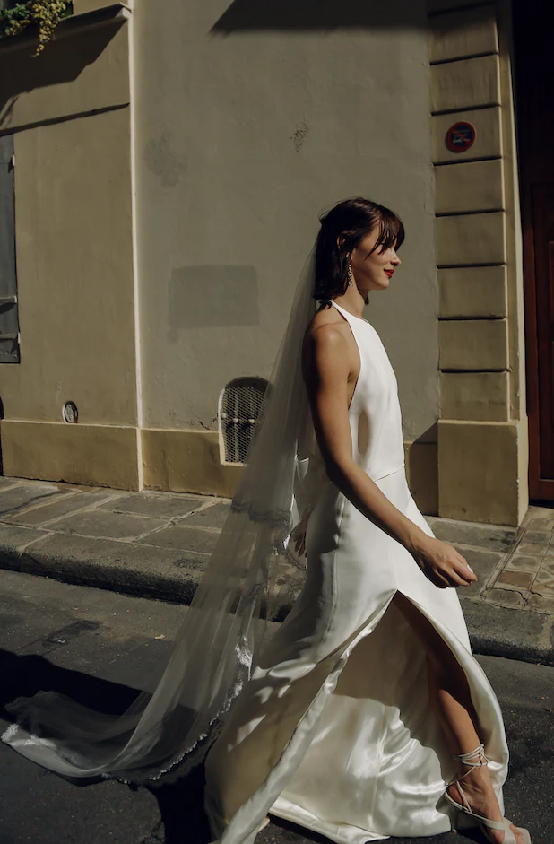 GREJ Modern Bride s’adresse à des mariées qui cherchent à s’éloigner des modèles classiques pour adopter une robe à la fois chic et minimaliste, tout en mettant en avant la féminité et l’audace.