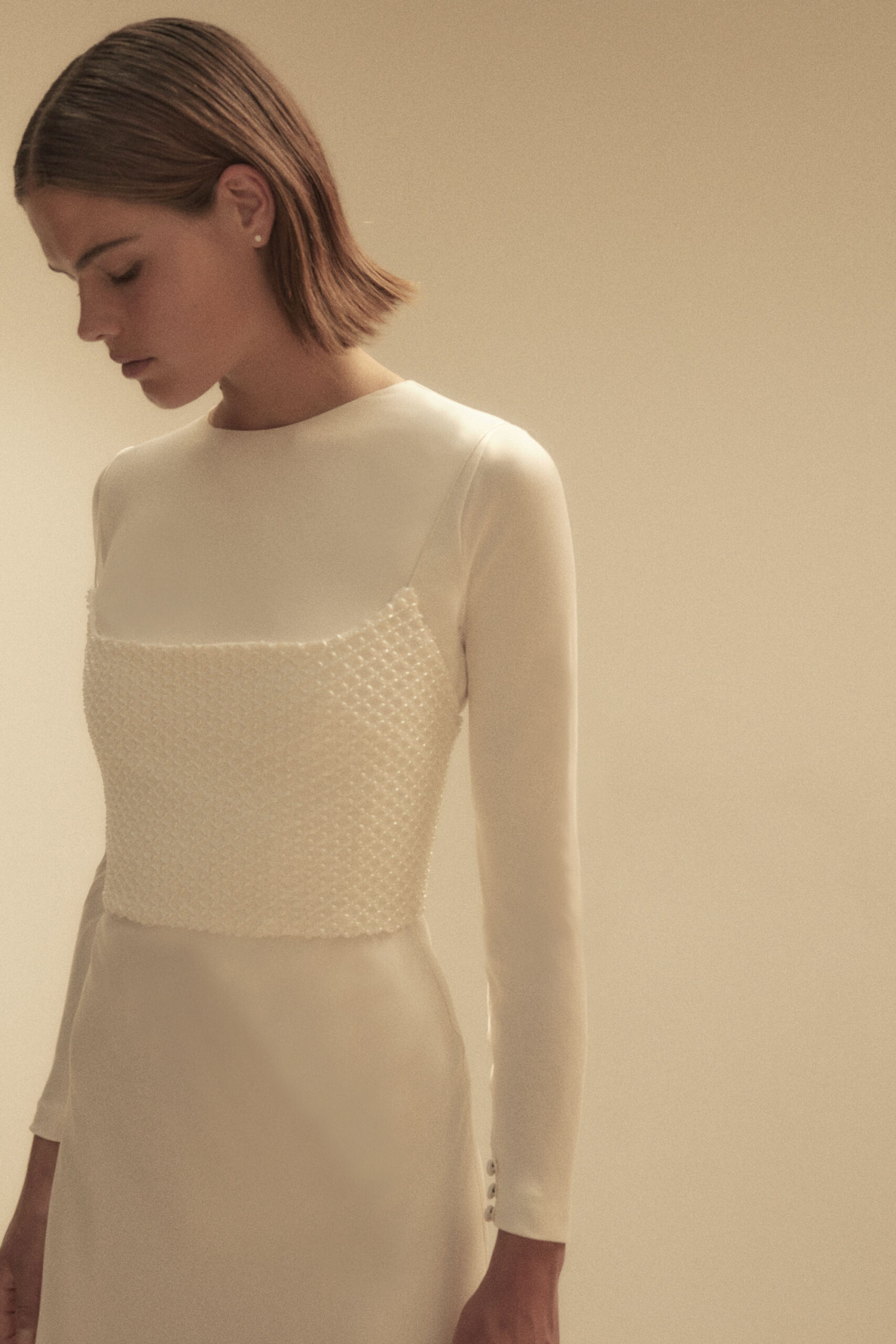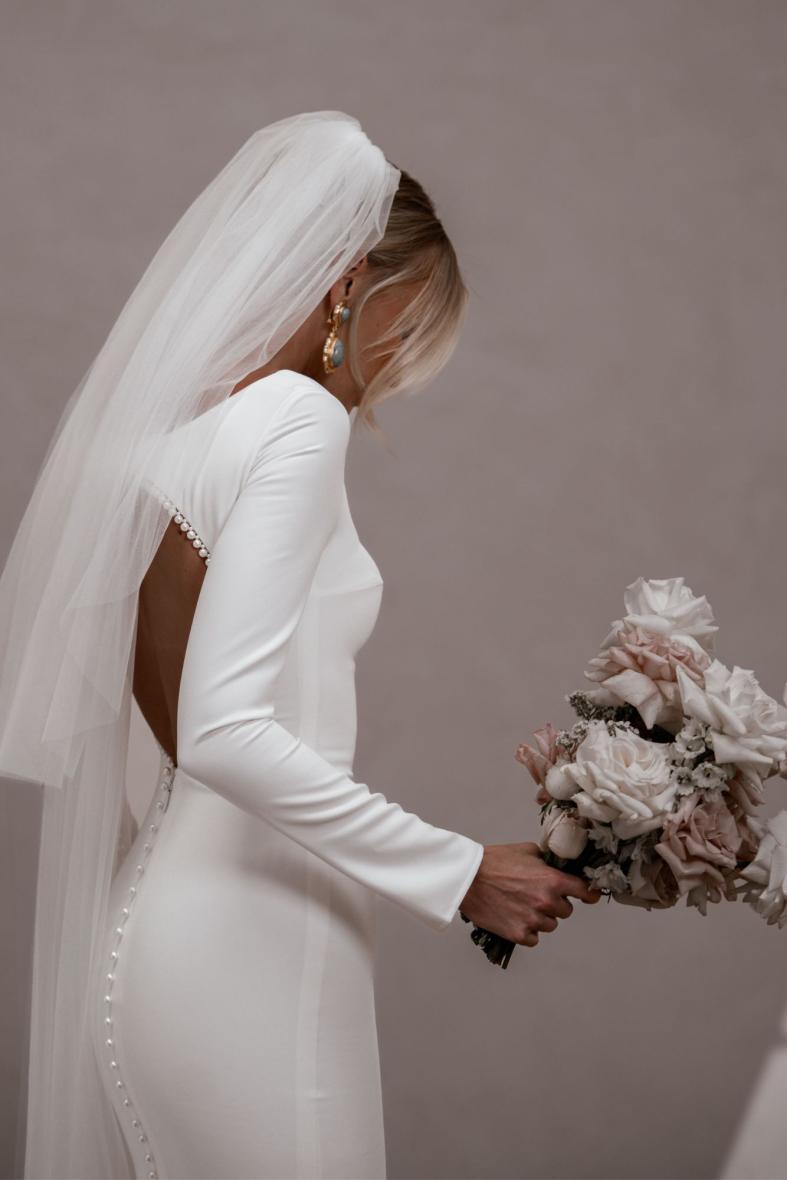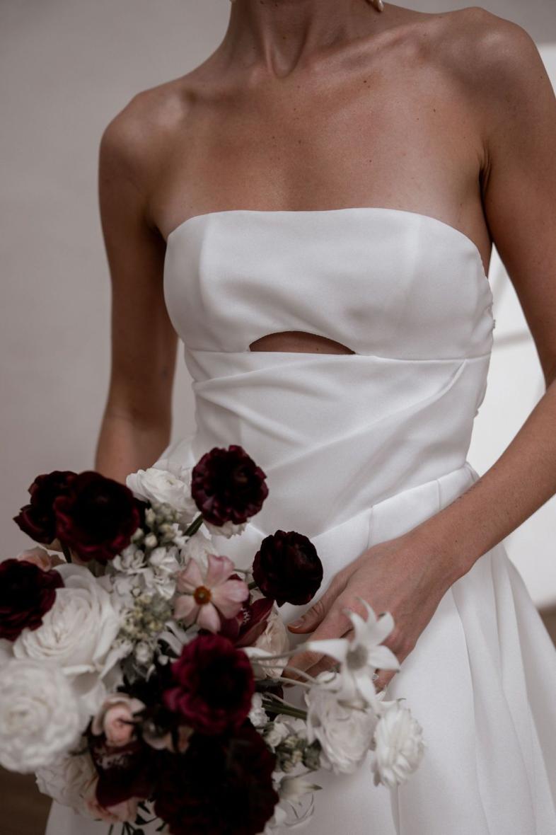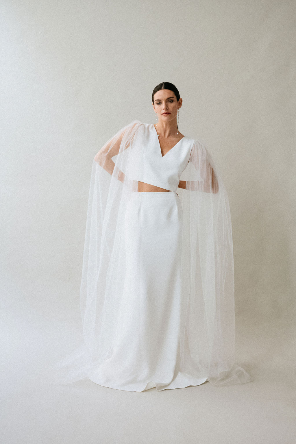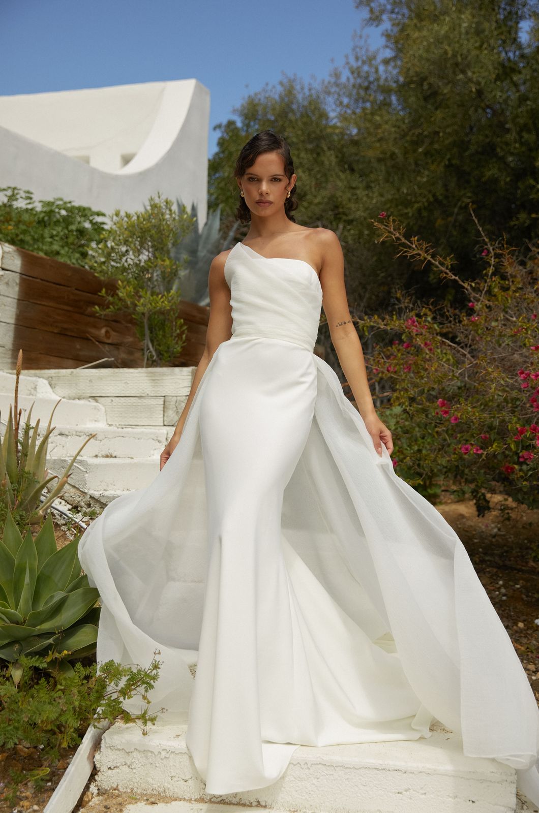 GREJ Modern Bride s’adresse à des mariées qui cherchent à s’éloigner des modèles classiques pour adopter une robe à la fois chic et minimaliste, tout en mettant en avant la féminité et l’audace.