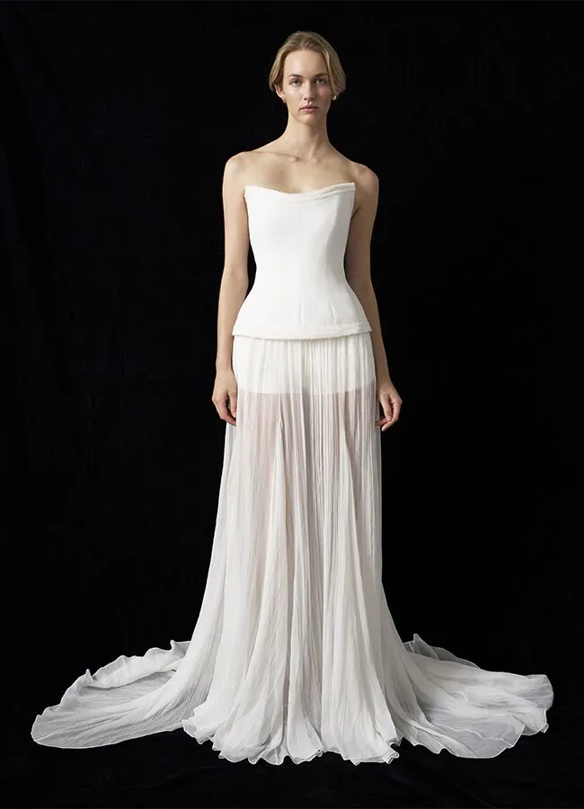 Lancée en 2017, la marque Danielle Frankel se distingue par des créations raffinées, audacieuses et minimalistes, pensées pour une mariée moderne en quête de sophistication et d’originalité. Son style fusionne des éléments de la mode prêt-à-porter avec les exigences de la haute couture, tout en mettant l’accent sur l’élégance, le confort et la fluidité.