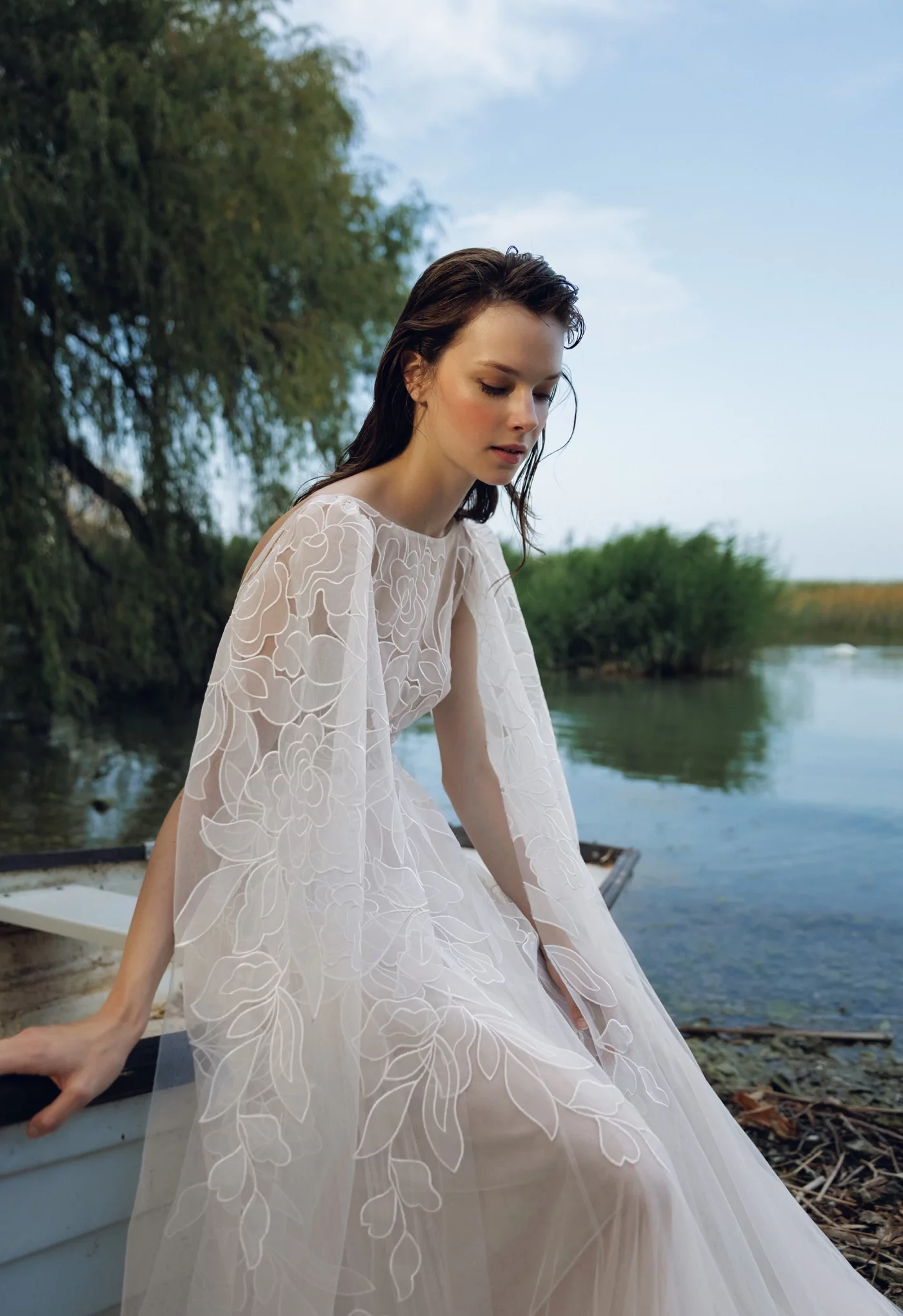 Les créations allient sophistication et simplicité, mettant en avant des lignes épurées, des matières naturelles comme la soie et la dentelle, et des détails délicats, créant des robes à la fois modernes et intemporelles. La créatrice privilégie également un aspect de confort pour que chaque mariée se sente aussi bien dans sa robe que belle.