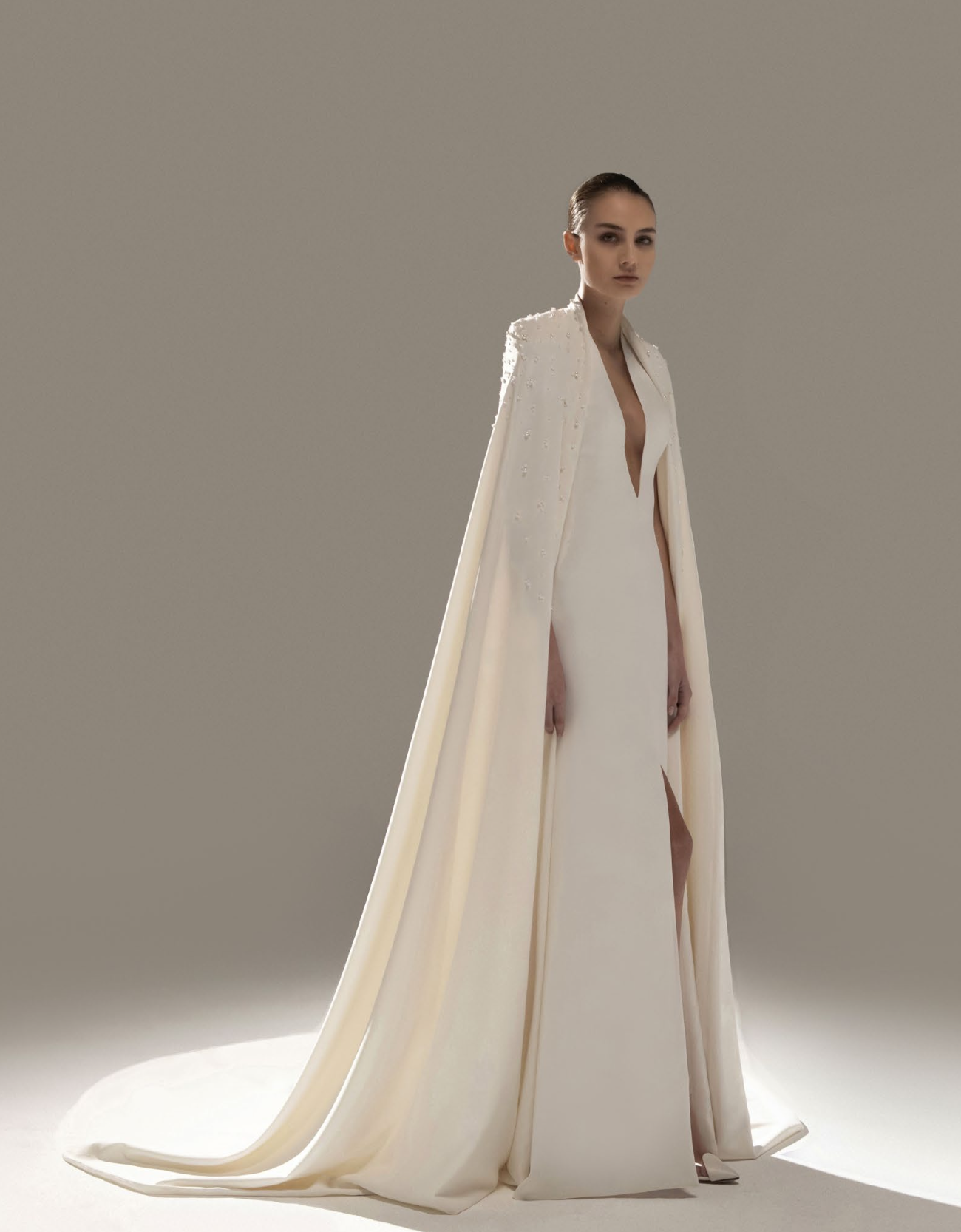 La Maison Rabih Kayrouz met en avant une vision avant-gardiste du mariage, en créant des robes de mariée qui s’éloignent des codes traditionnels tout en restant intemporelles.