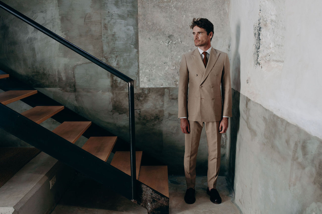 Chaque année, la maison imagine une nouvelle collection de tissus uniques, introuvables ailleurs, puis conçoit pour chaque marié un costume sur mesure guidé par sa direction artistique : silhouettes épurées, couleurs assumées, finesse des volumes et exigence du détail.